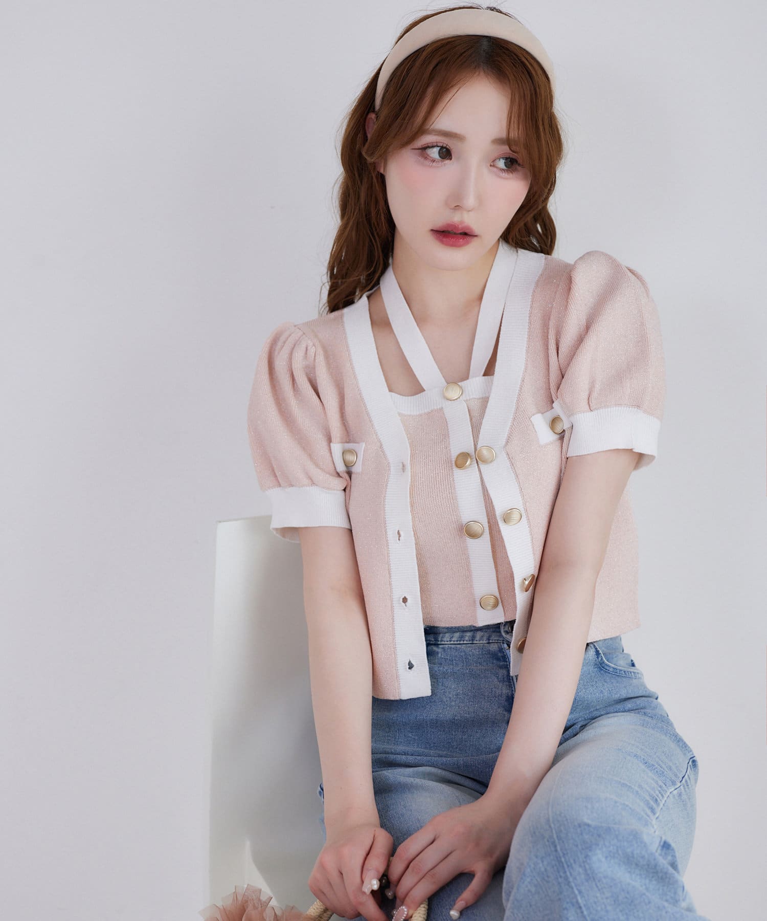 ラメ糸を使用したキラキラ輝くビスチェ。