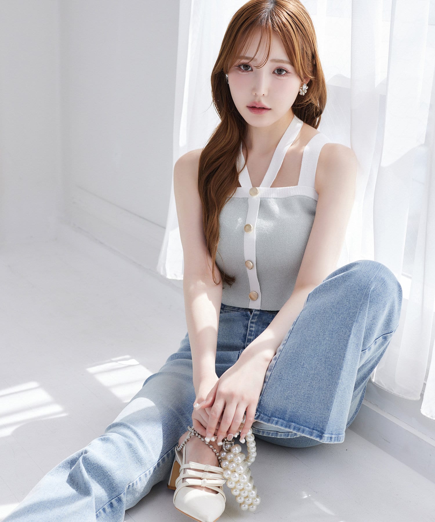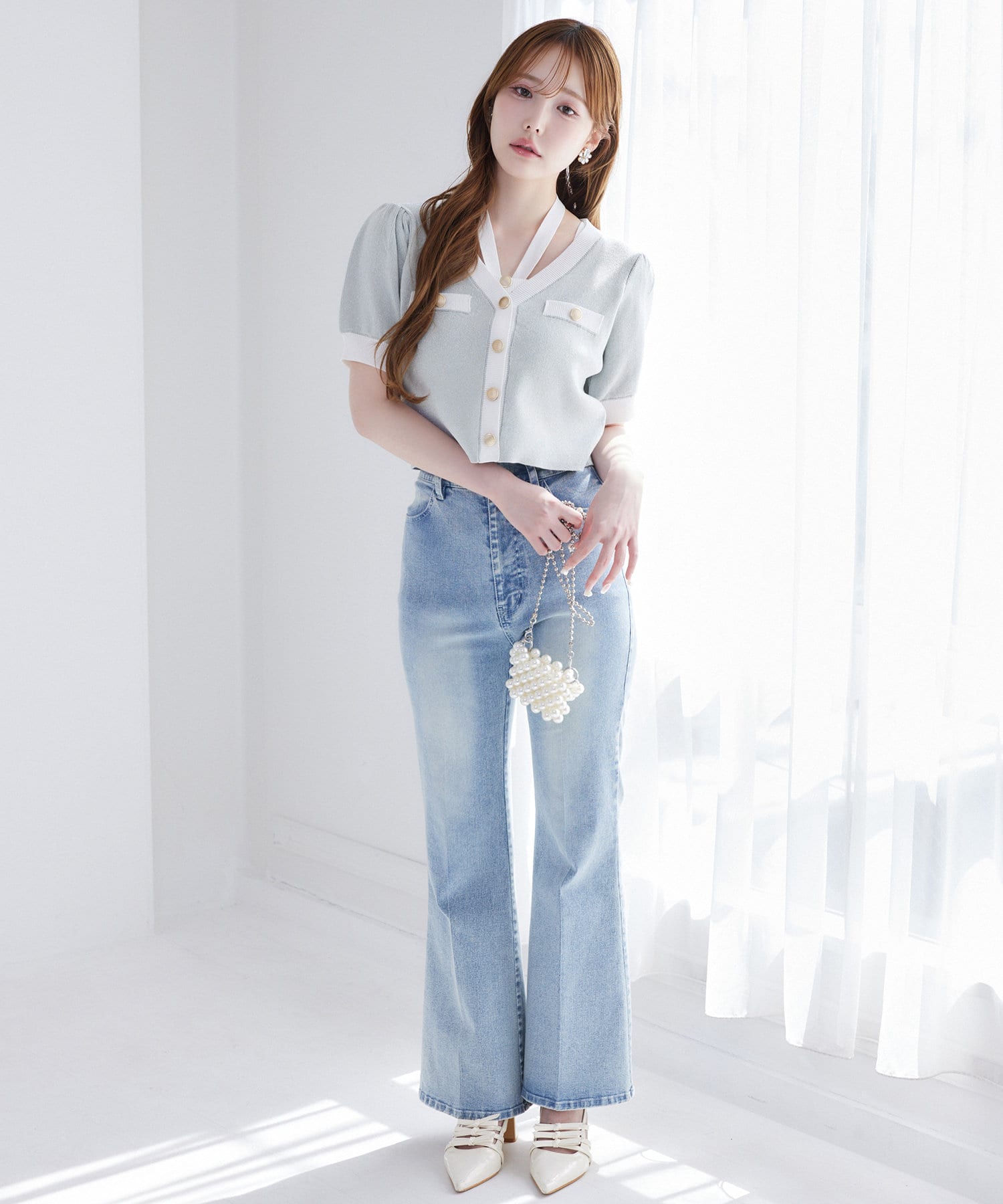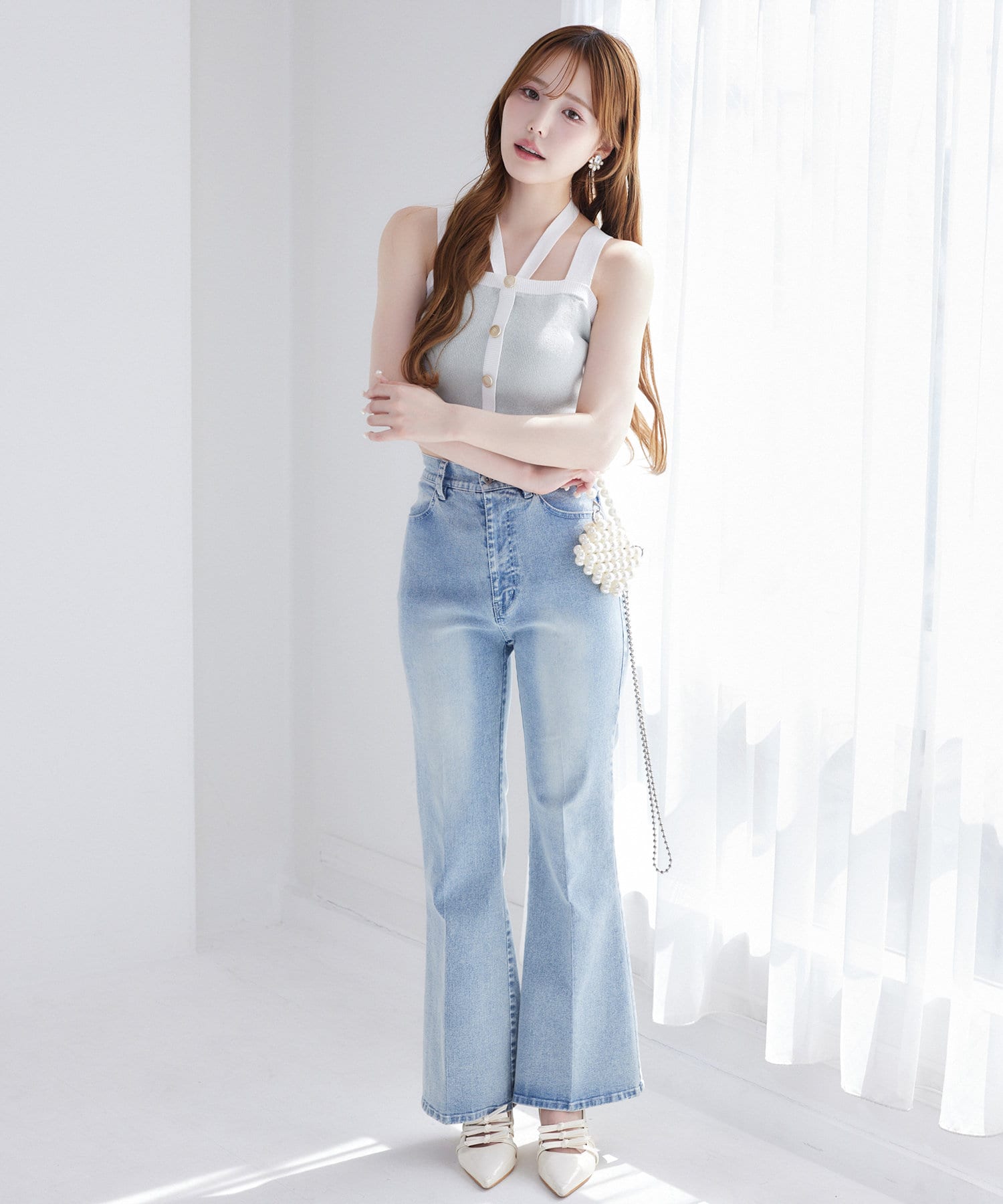ハイウエストデニムと合わせて、韓国風の大人コーデに。