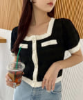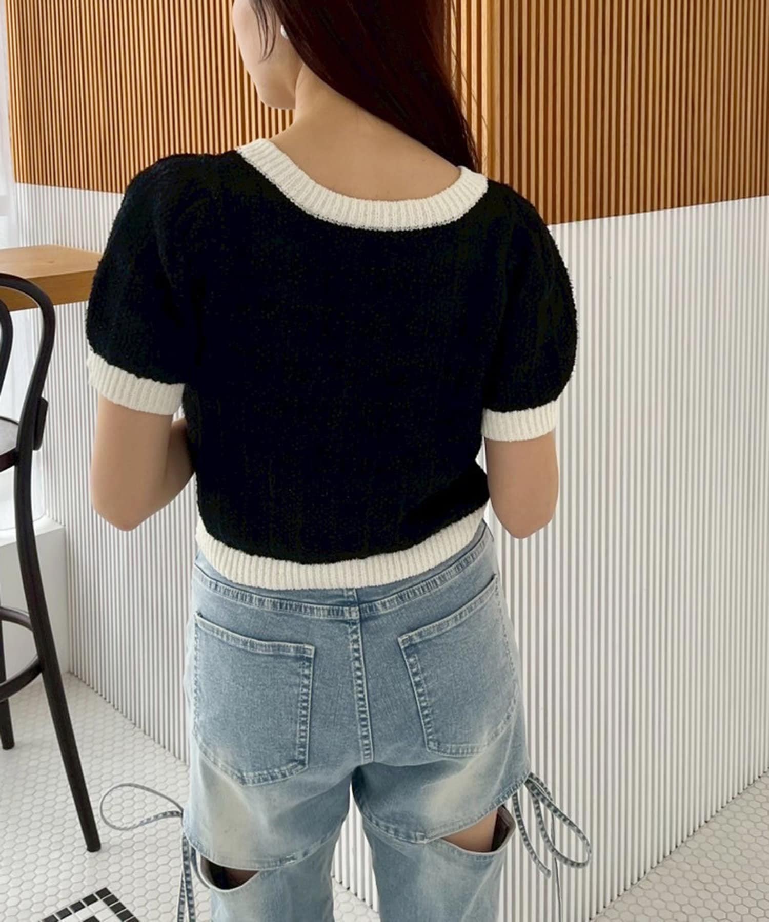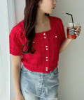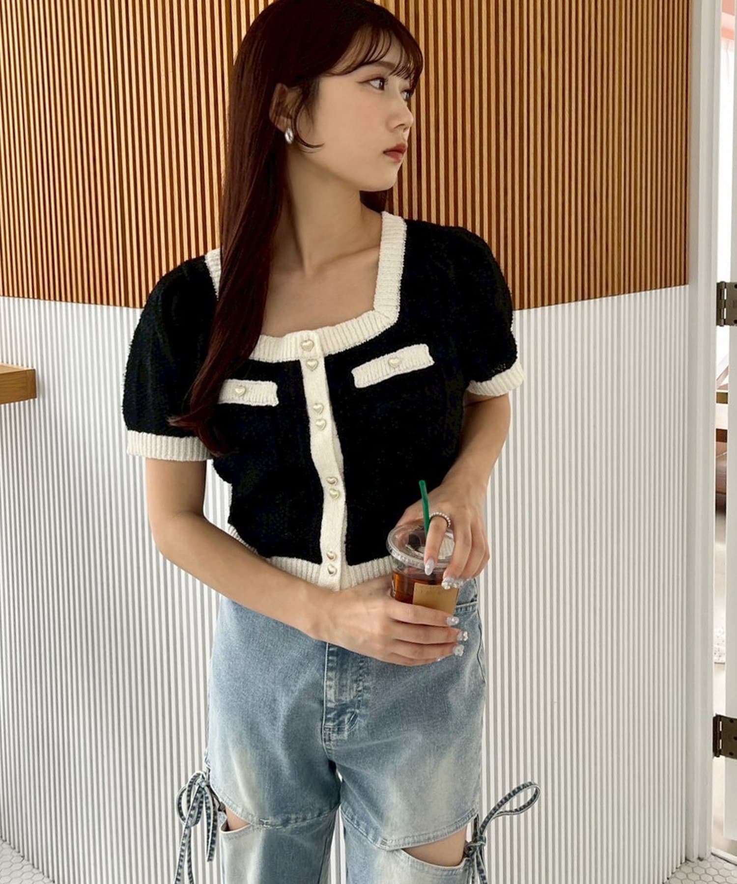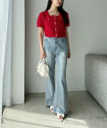 ボタンを閉じてハイウエストボトムと合わせれば、トレンドライクな着こなしに!