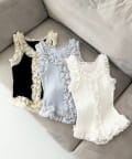 繊細なチュールフリルをたっぷりあしらった、フェミニンムード満点のキャミソール。
