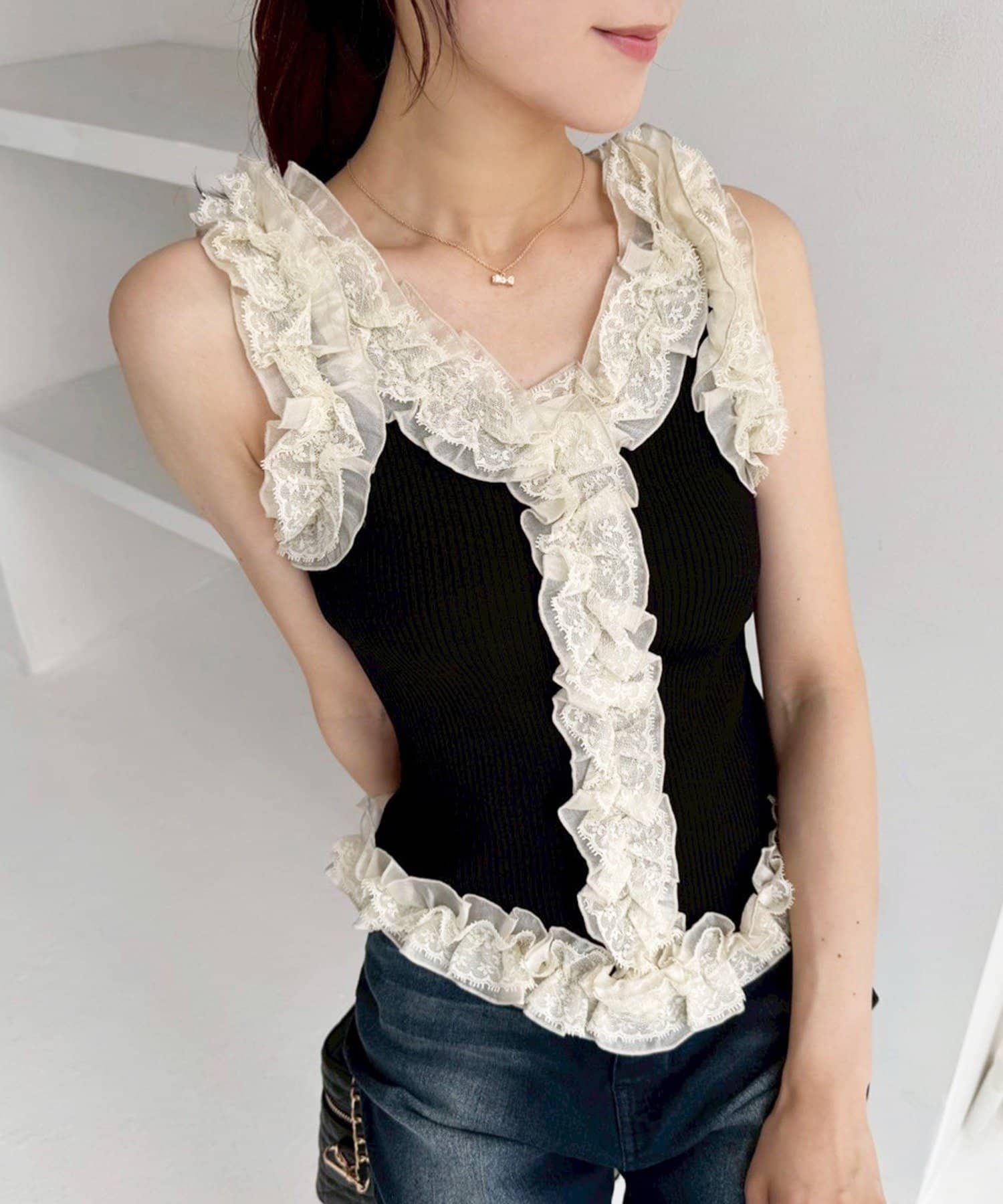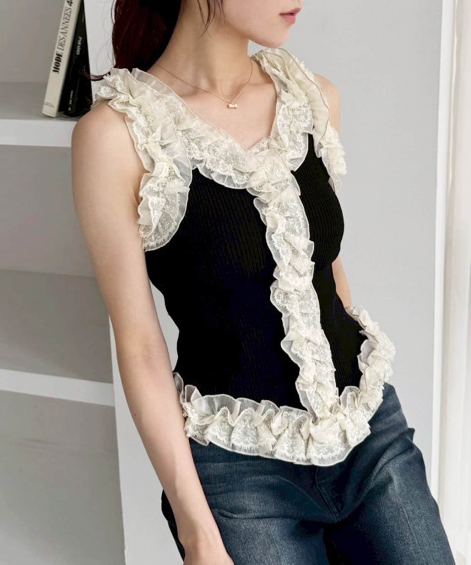 TOP > one after another NICE CLAUP > レディース > トップス > ニット/セーター > フリルノースリニット