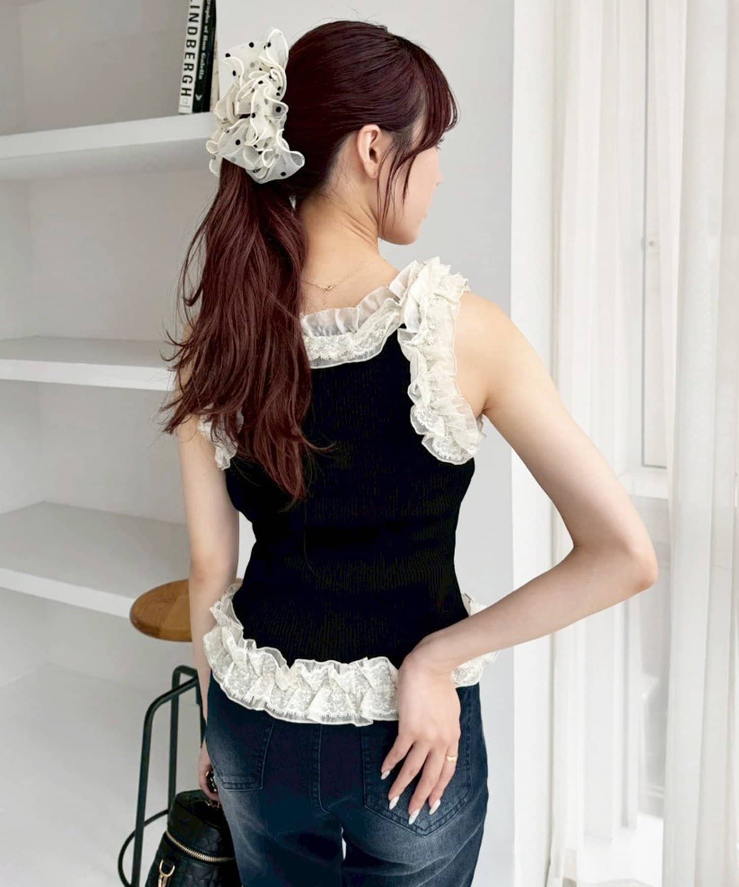 ミニスカートと合わせて思いっきりガーリーに着こなすのも◎