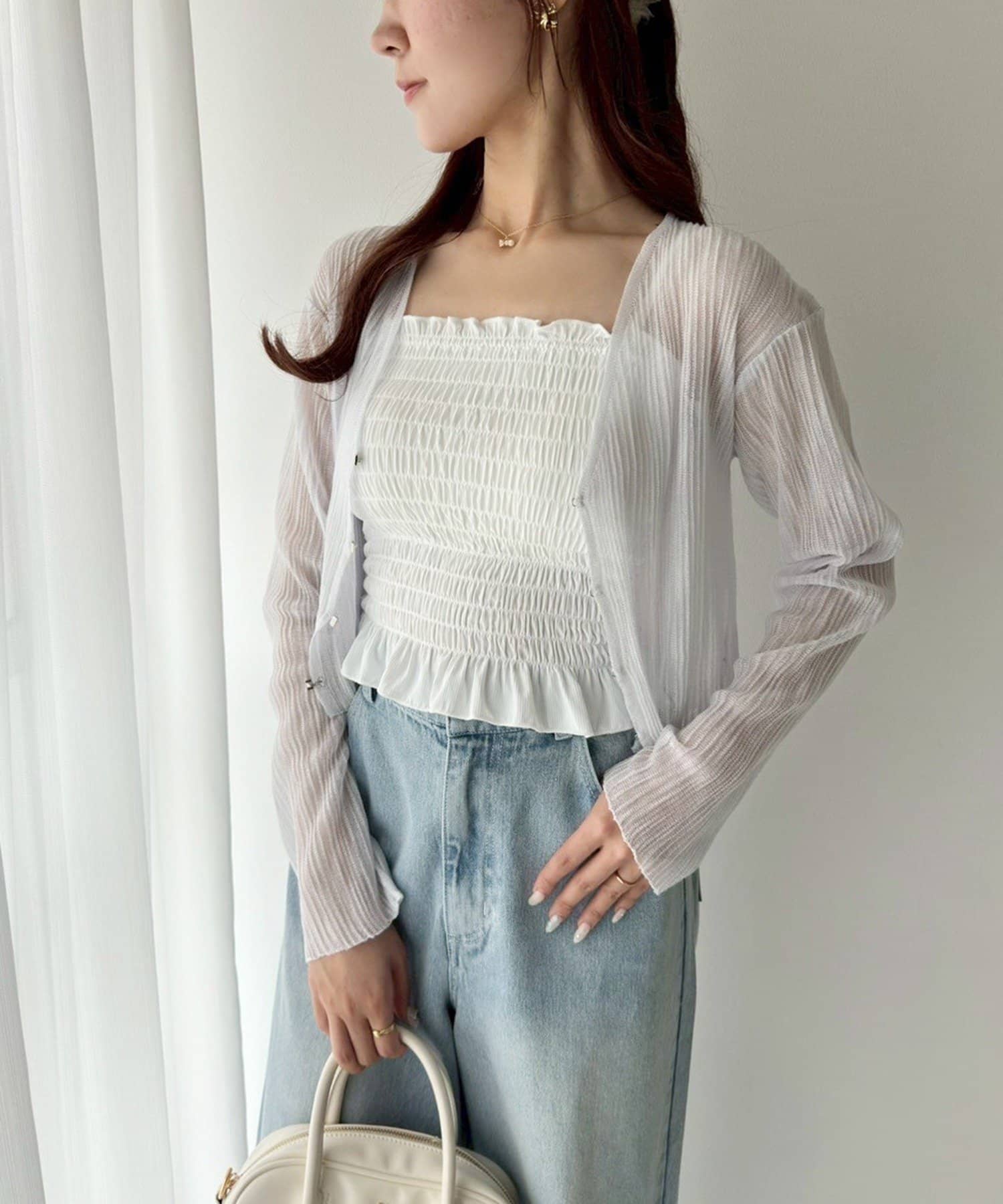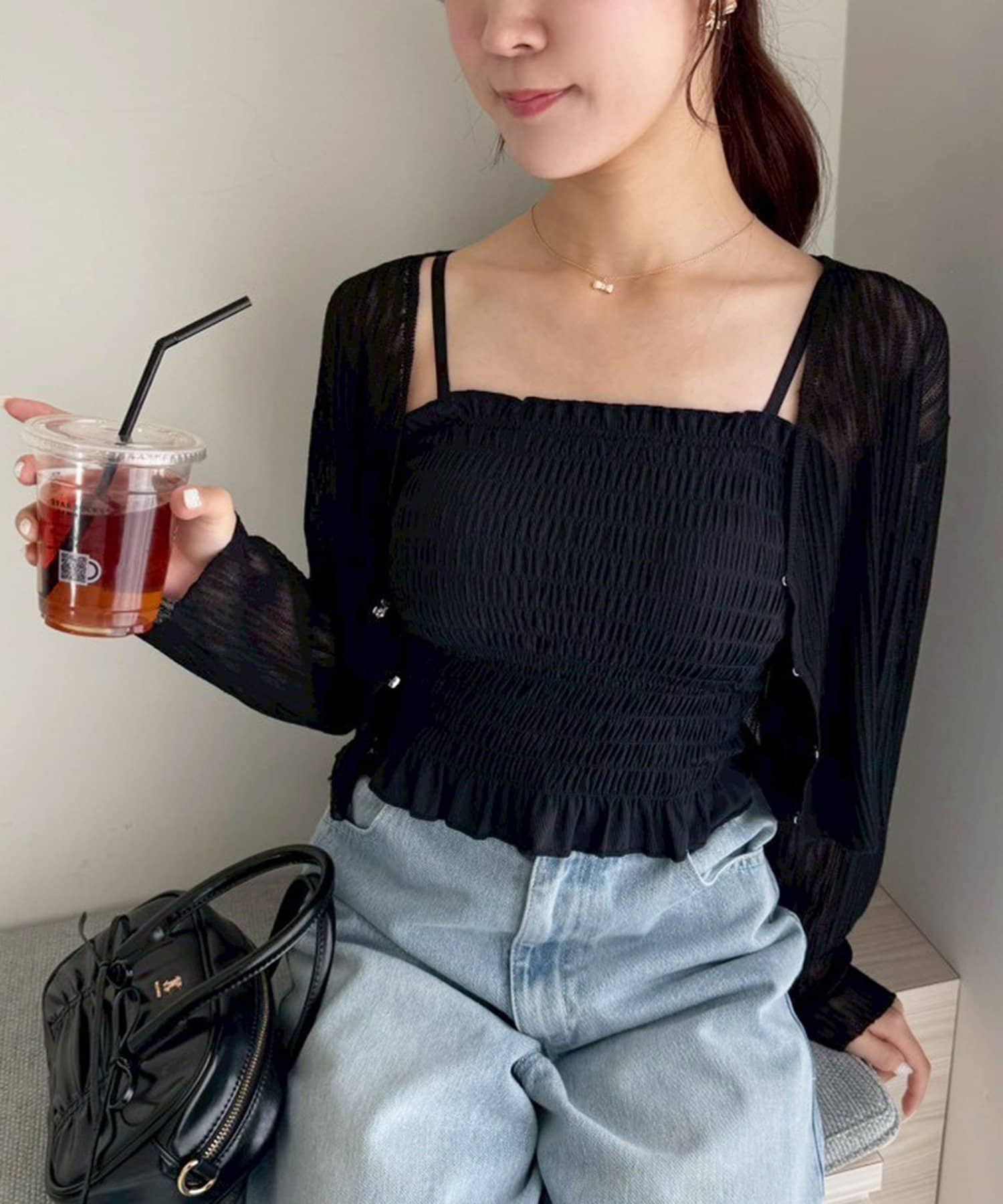シアーシャツや、カーデガンのインナーに合わせてお使いいただけます。