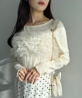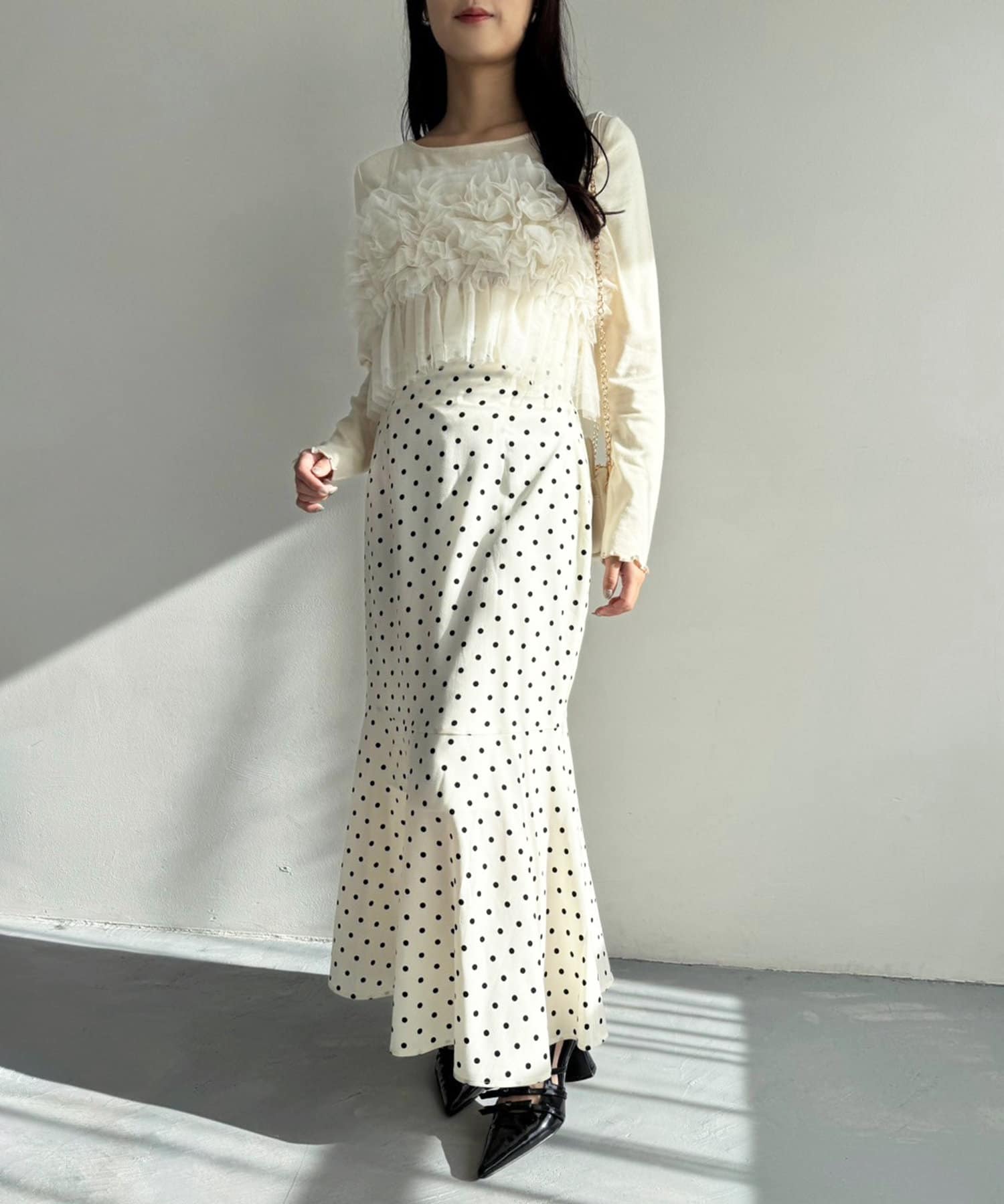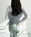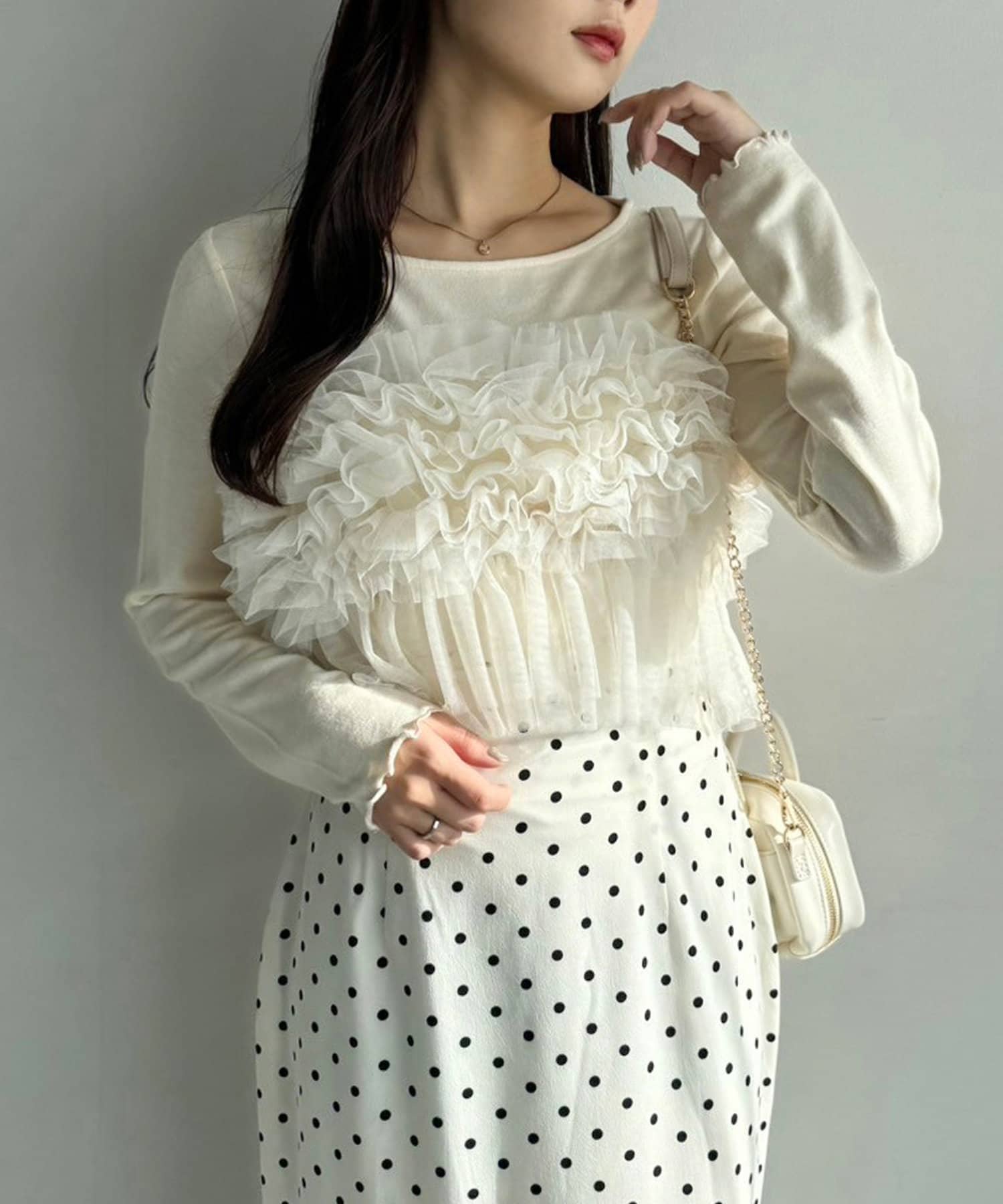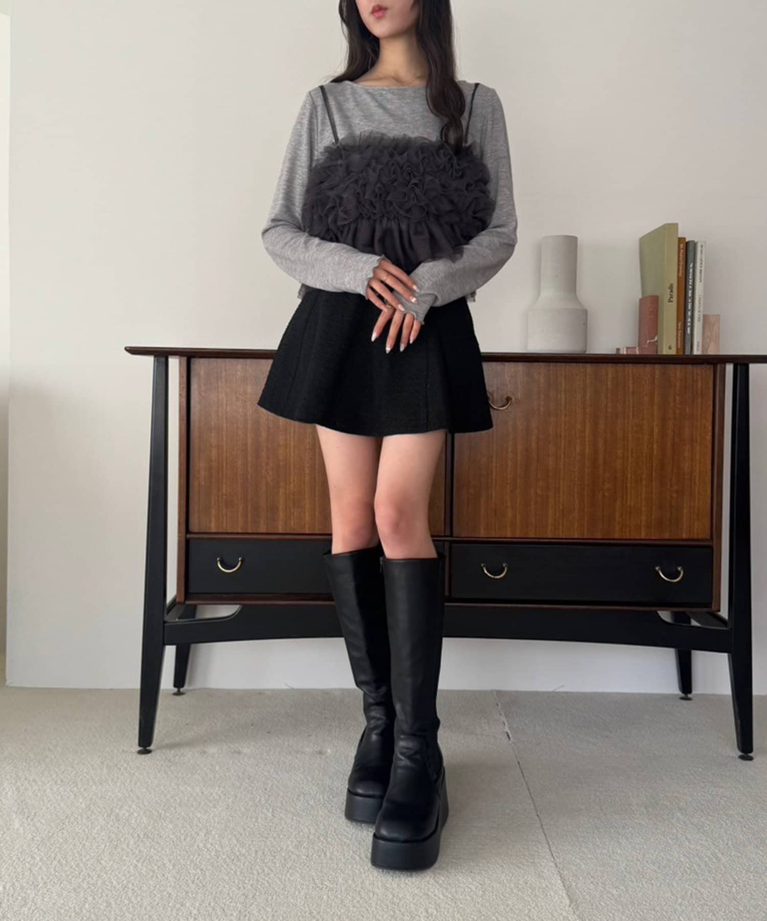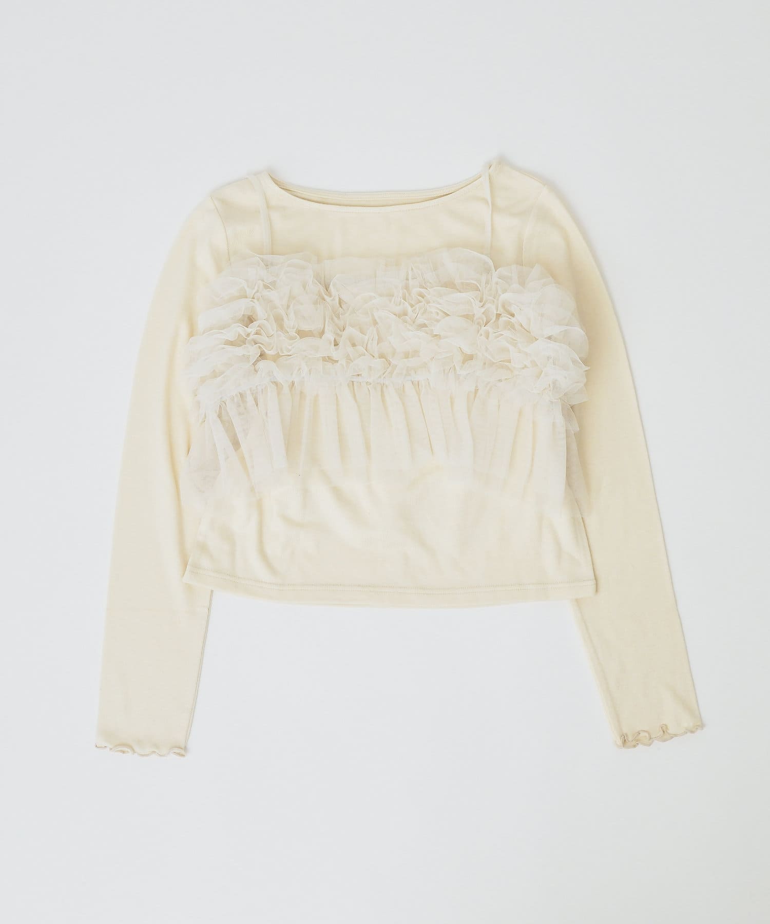 フリルたっぷりのビスチェはシンプルなトップスと重ねるだけで