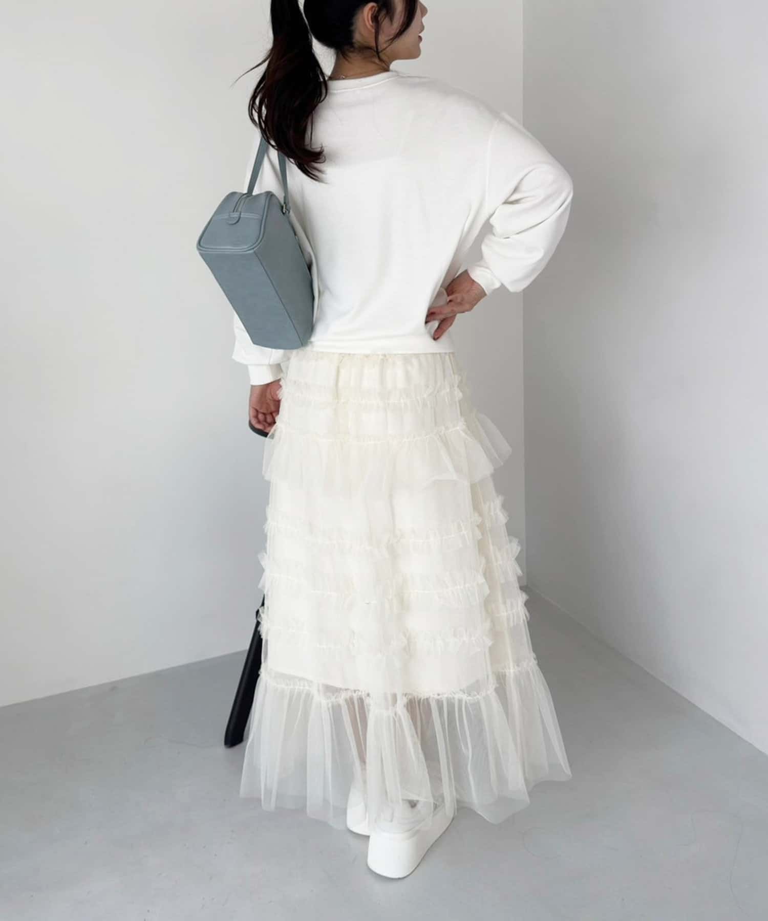マーメイドスカート、フレアロングスカートと合わせて、今どきなゆる感あるスタイリングもおすすめです。