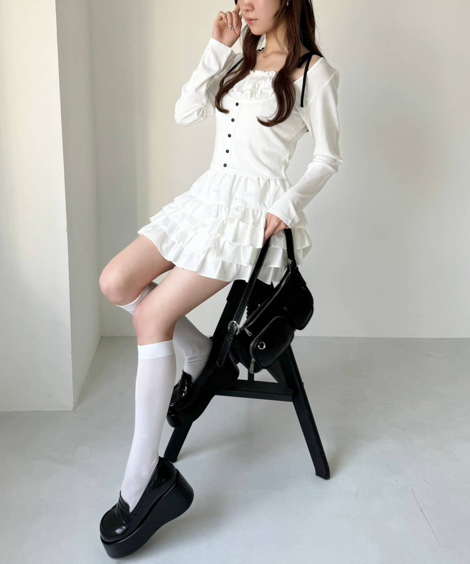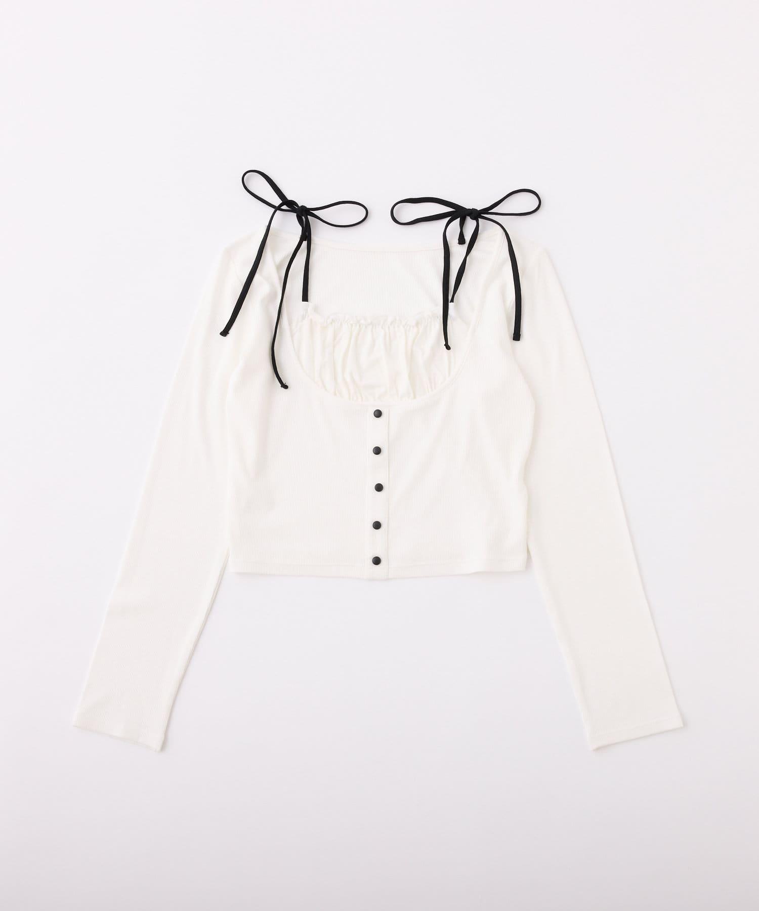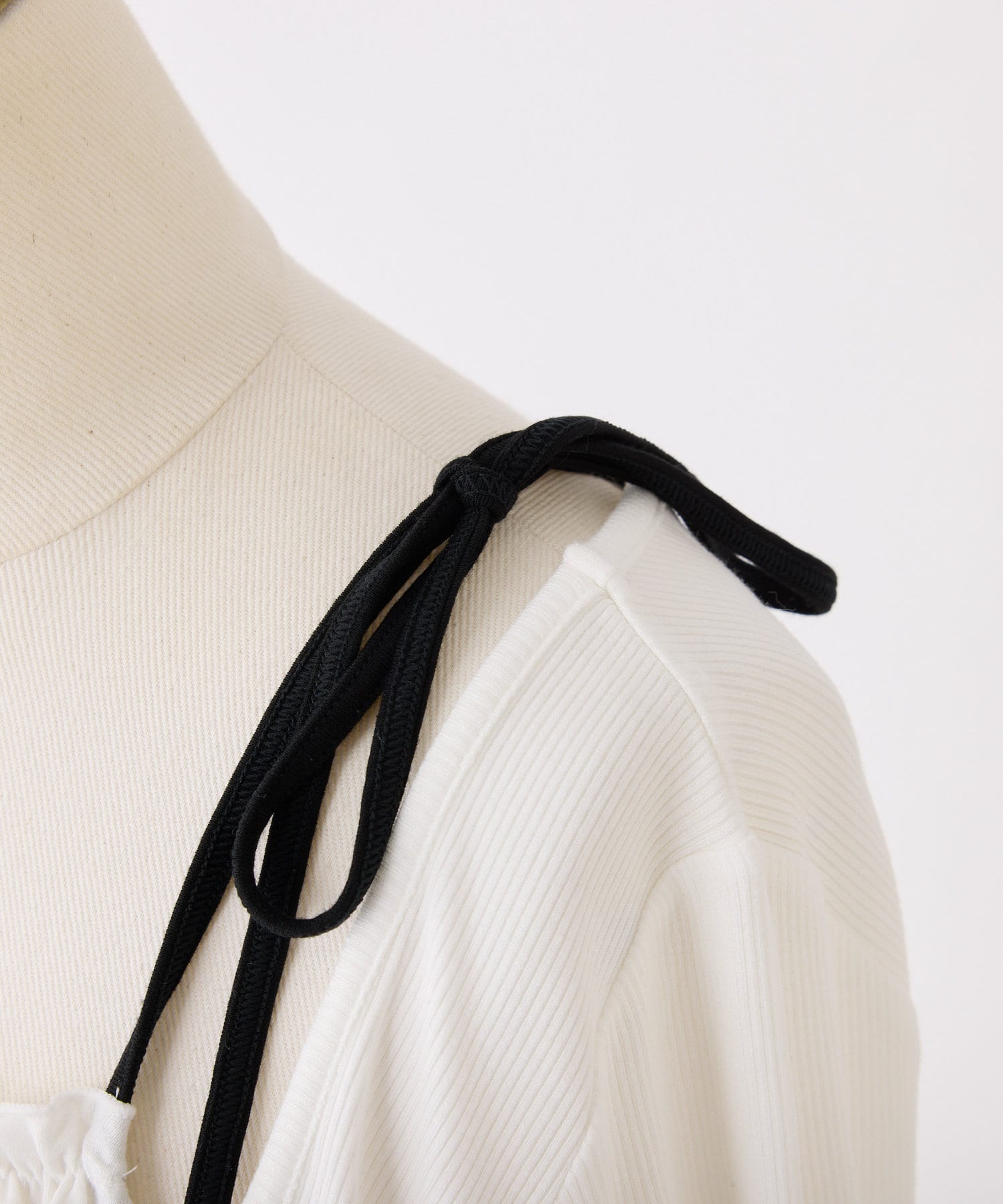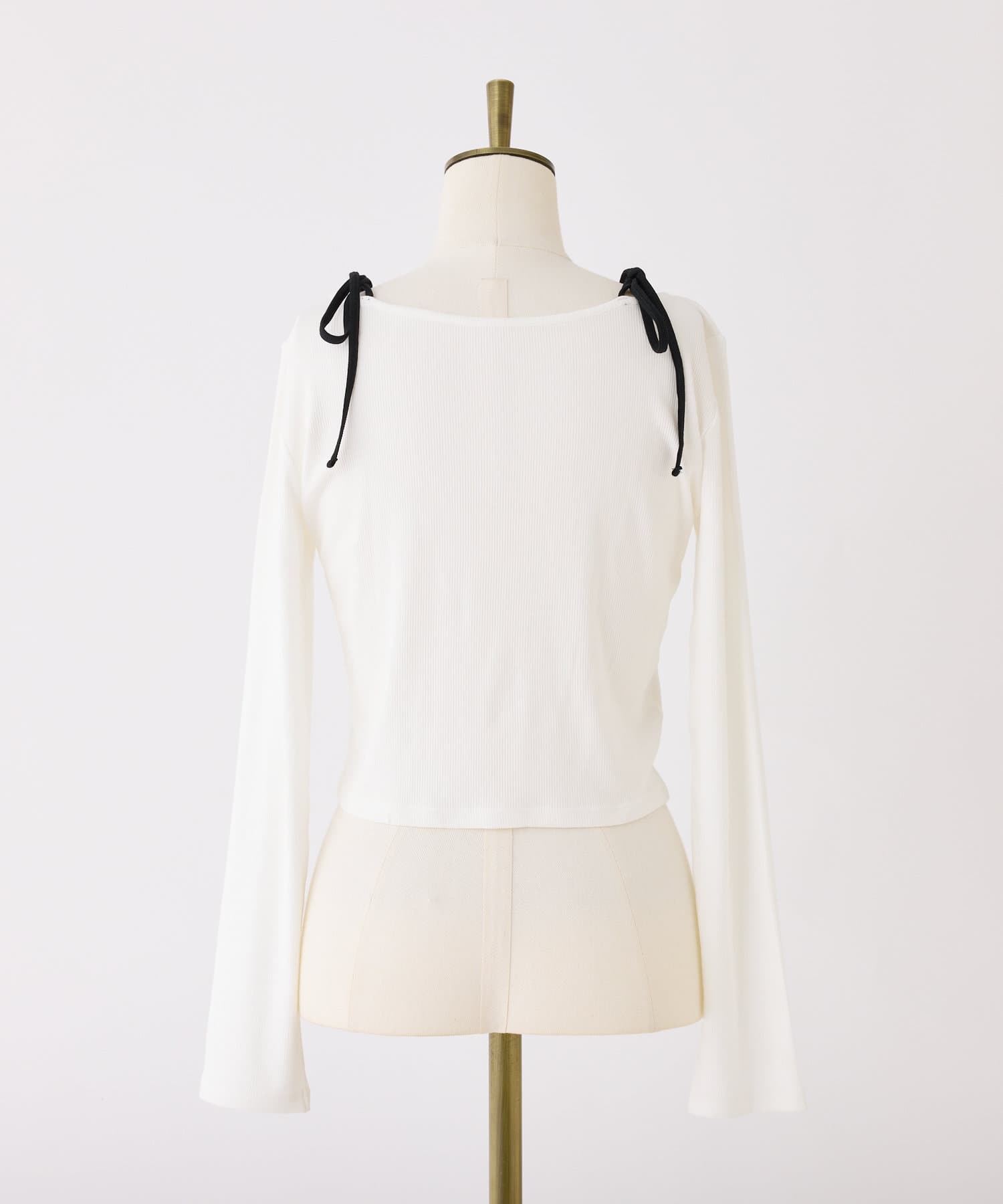 肩のリボンがシンプルなデザインの中に甘さをプラスしてくれます。