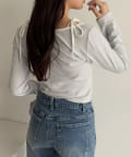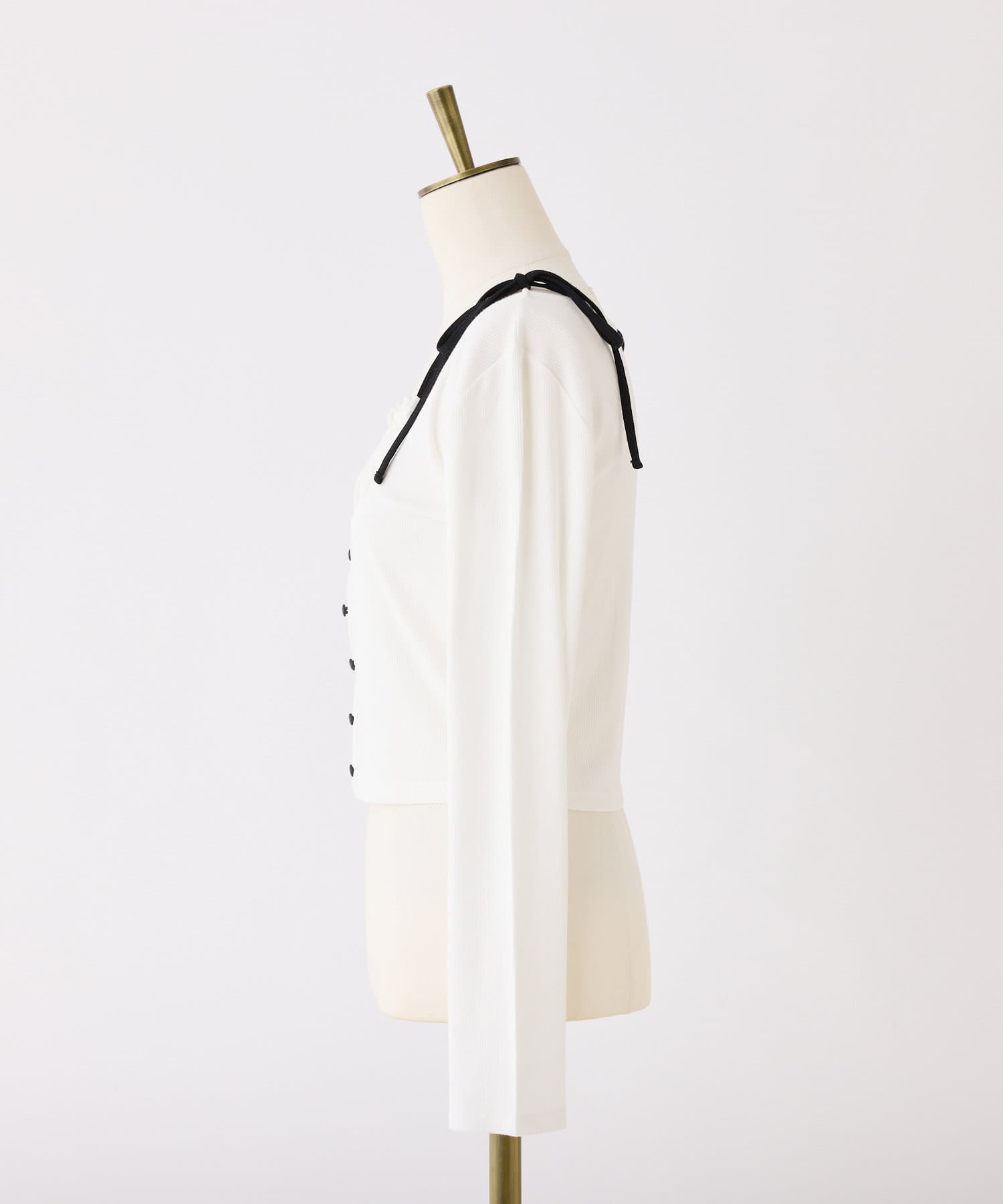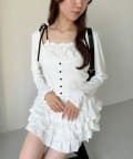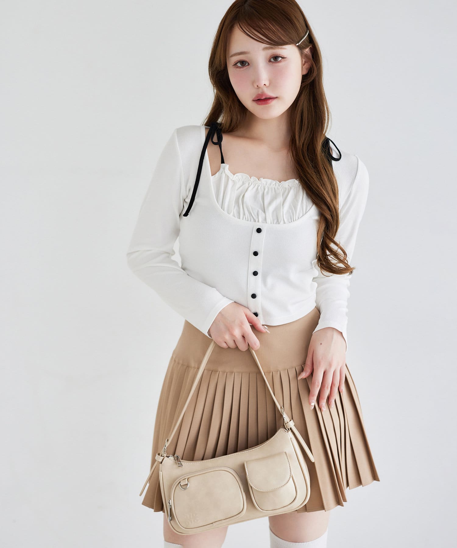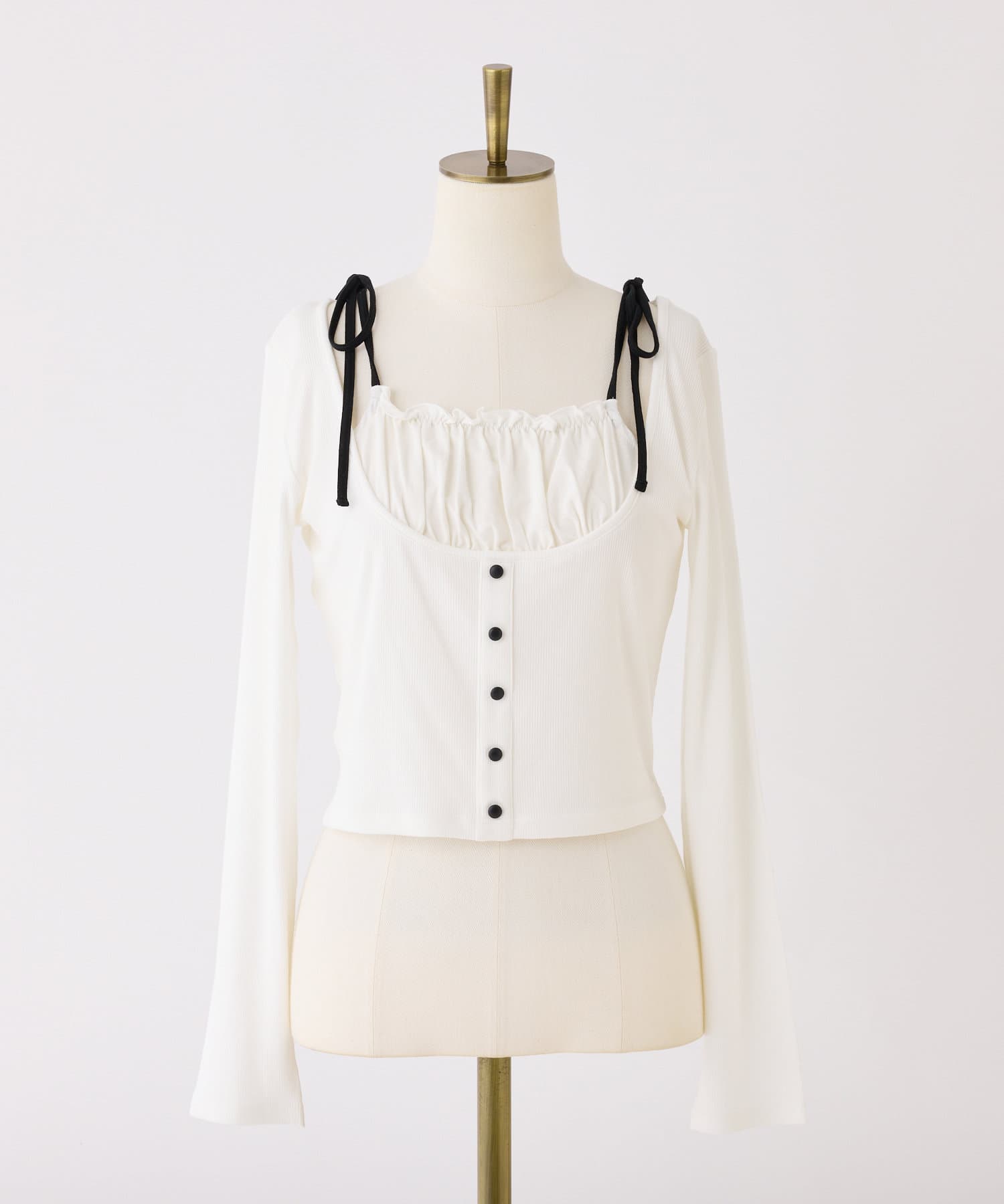 肩のリボンがシンプルなデザインの中に甘さをプラスしてくれます。