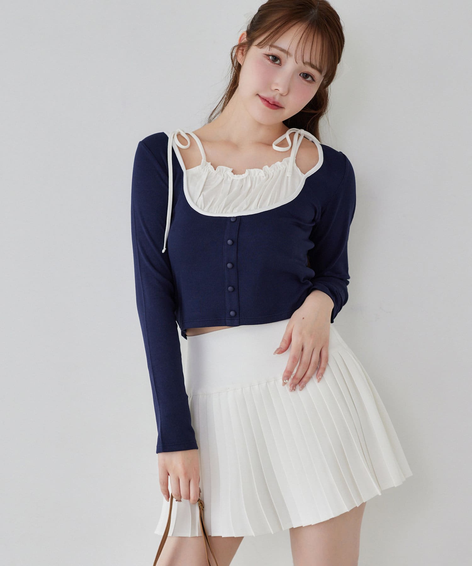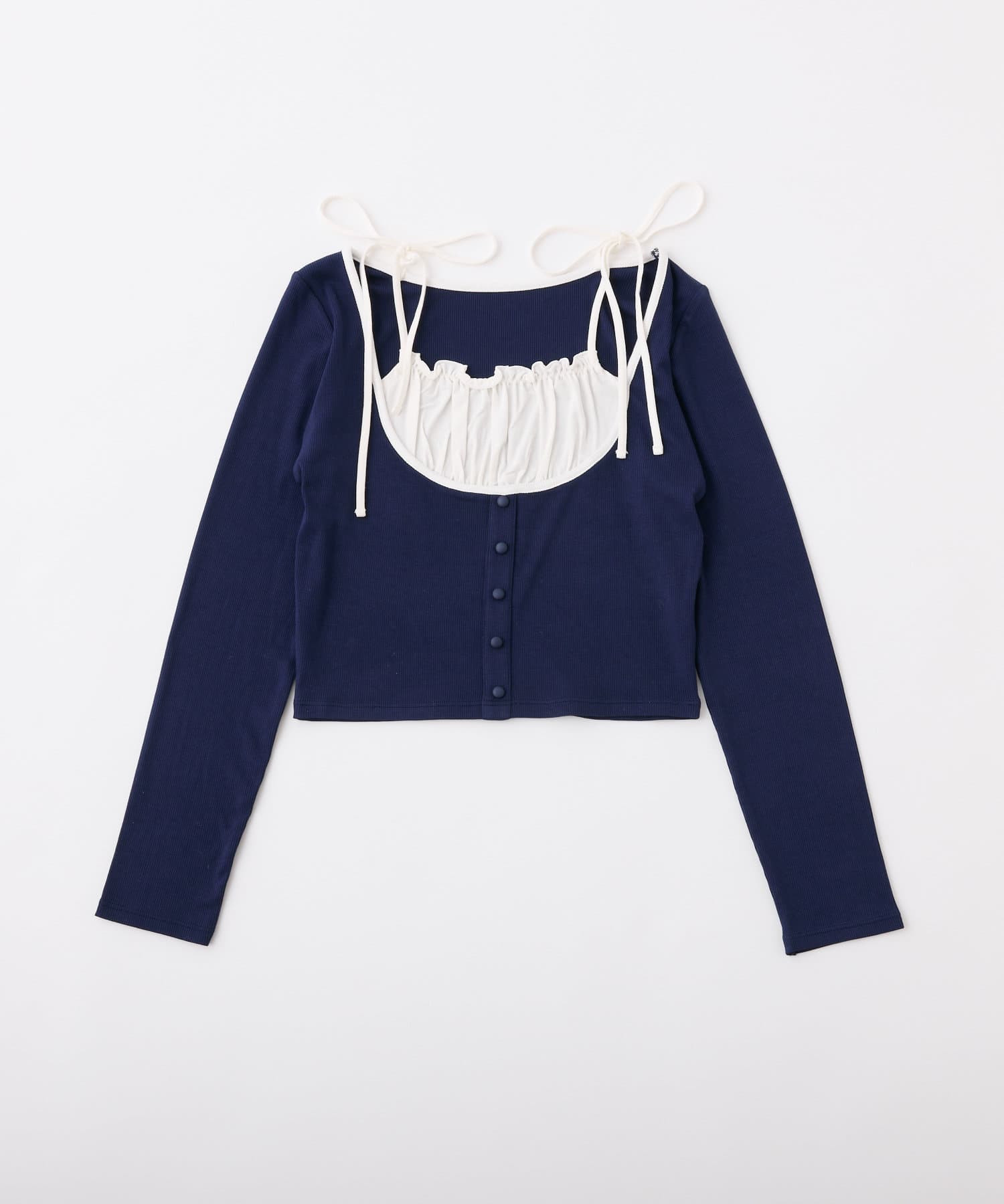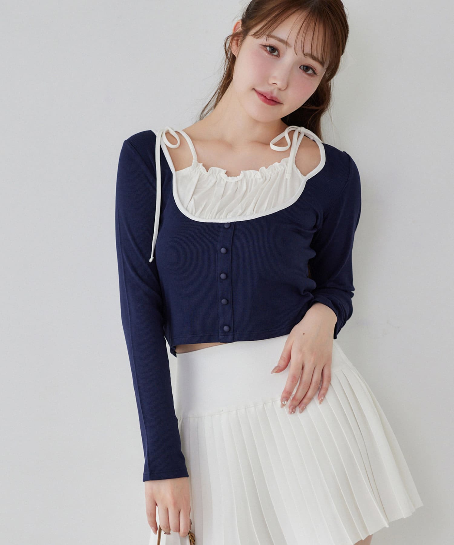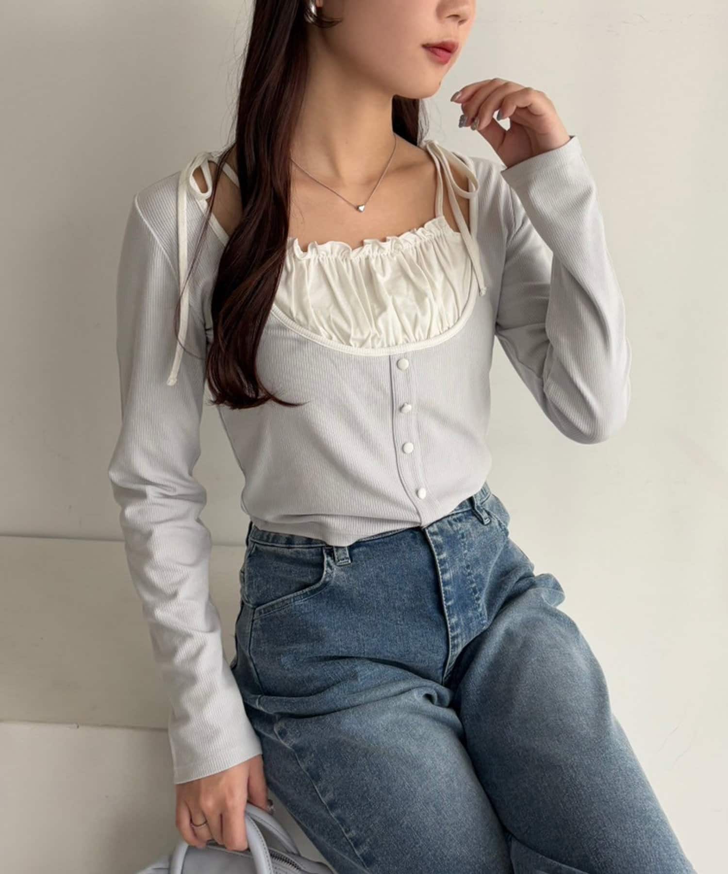 1枚でレイヤードしているようにも見える主役級ニットトップス