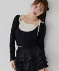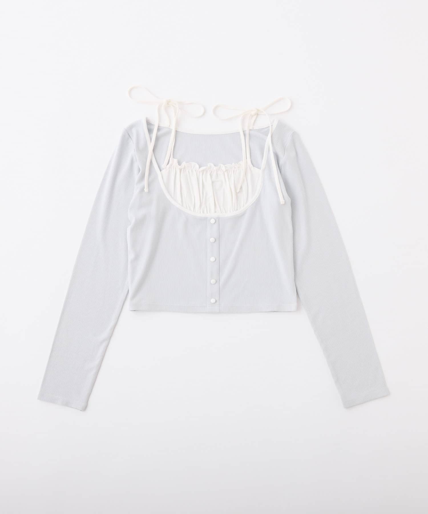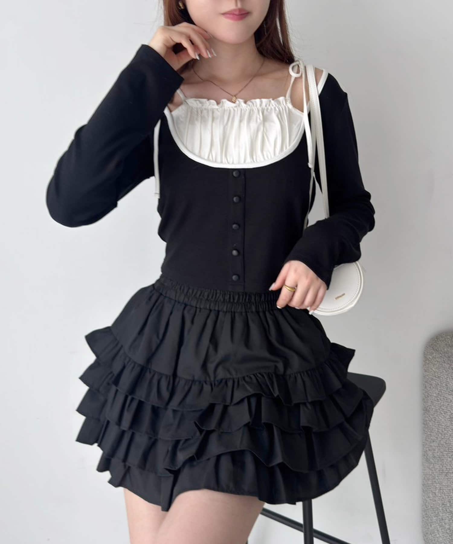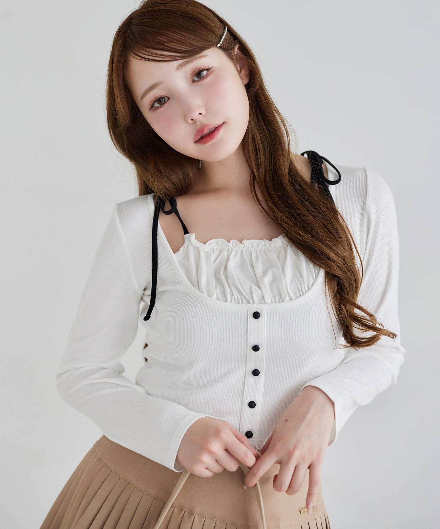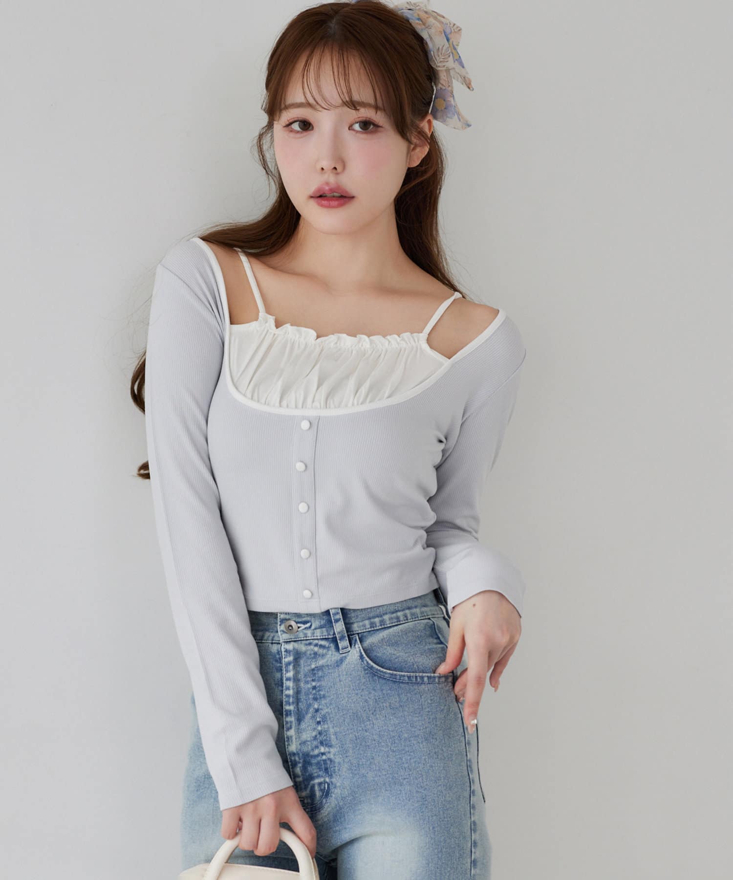 1枚でレイヤードしているようにも見える主役級ニットトップス