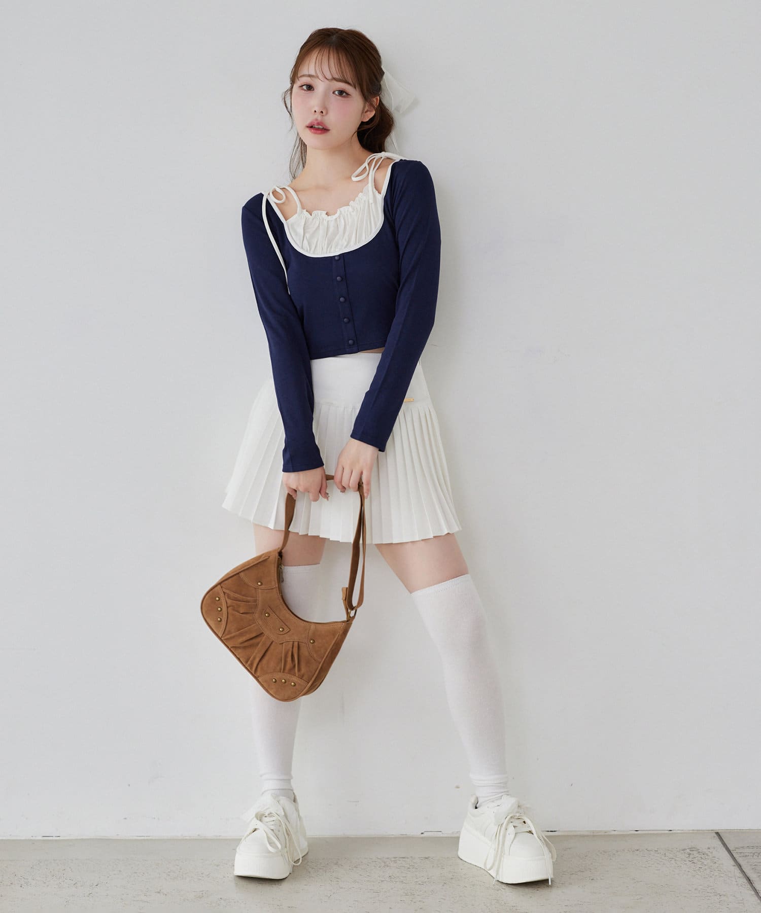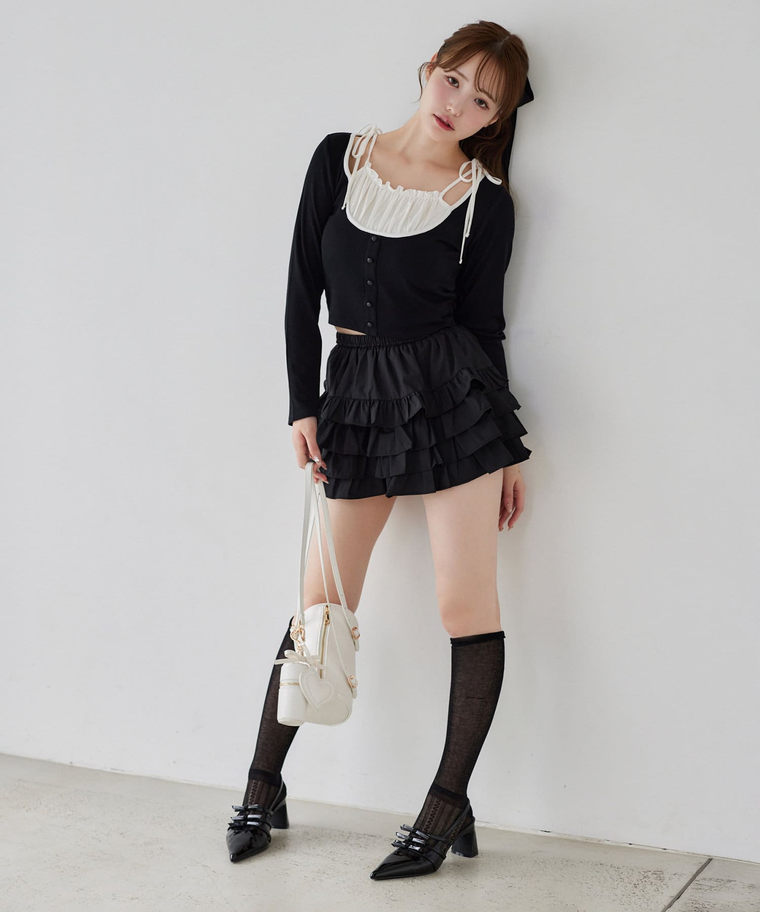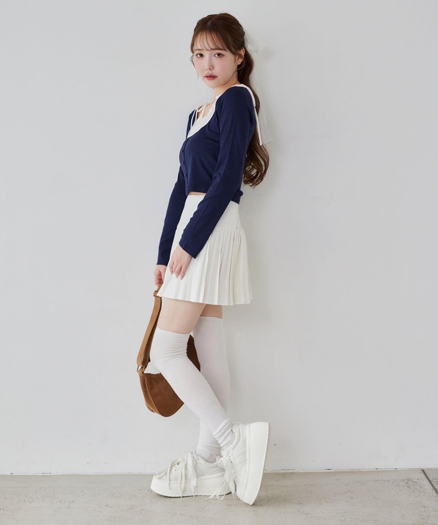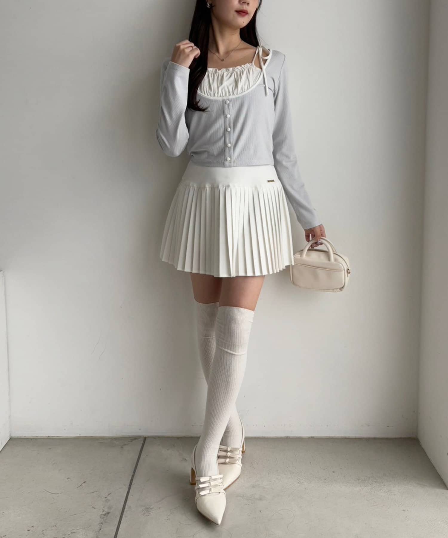 ミニ丈のスカートと合わせてトレンドのバレエコアスタイルもオススメです。