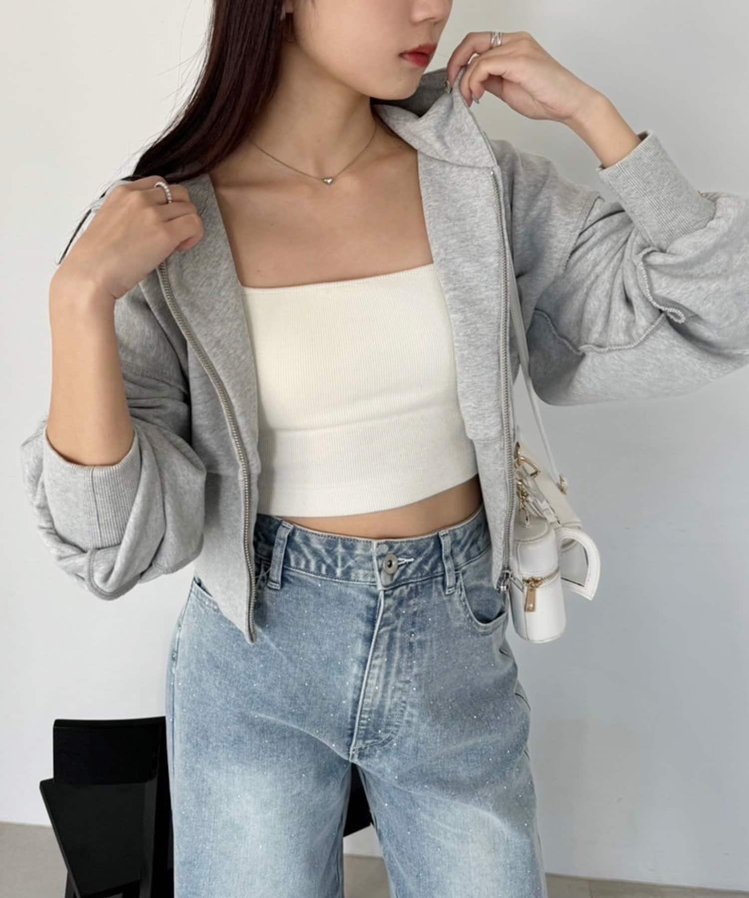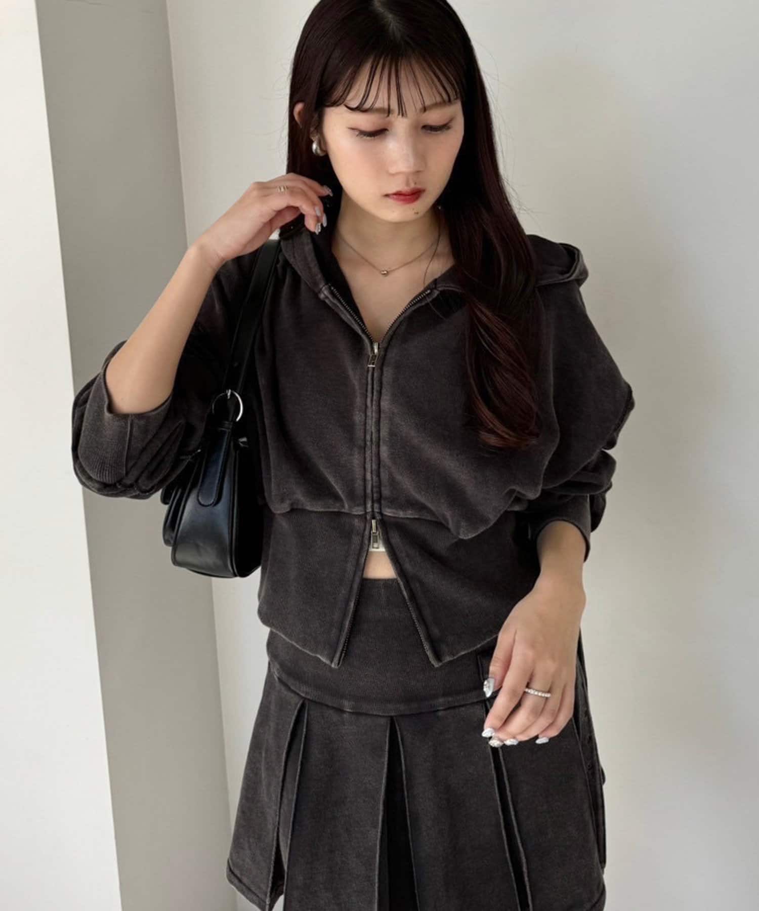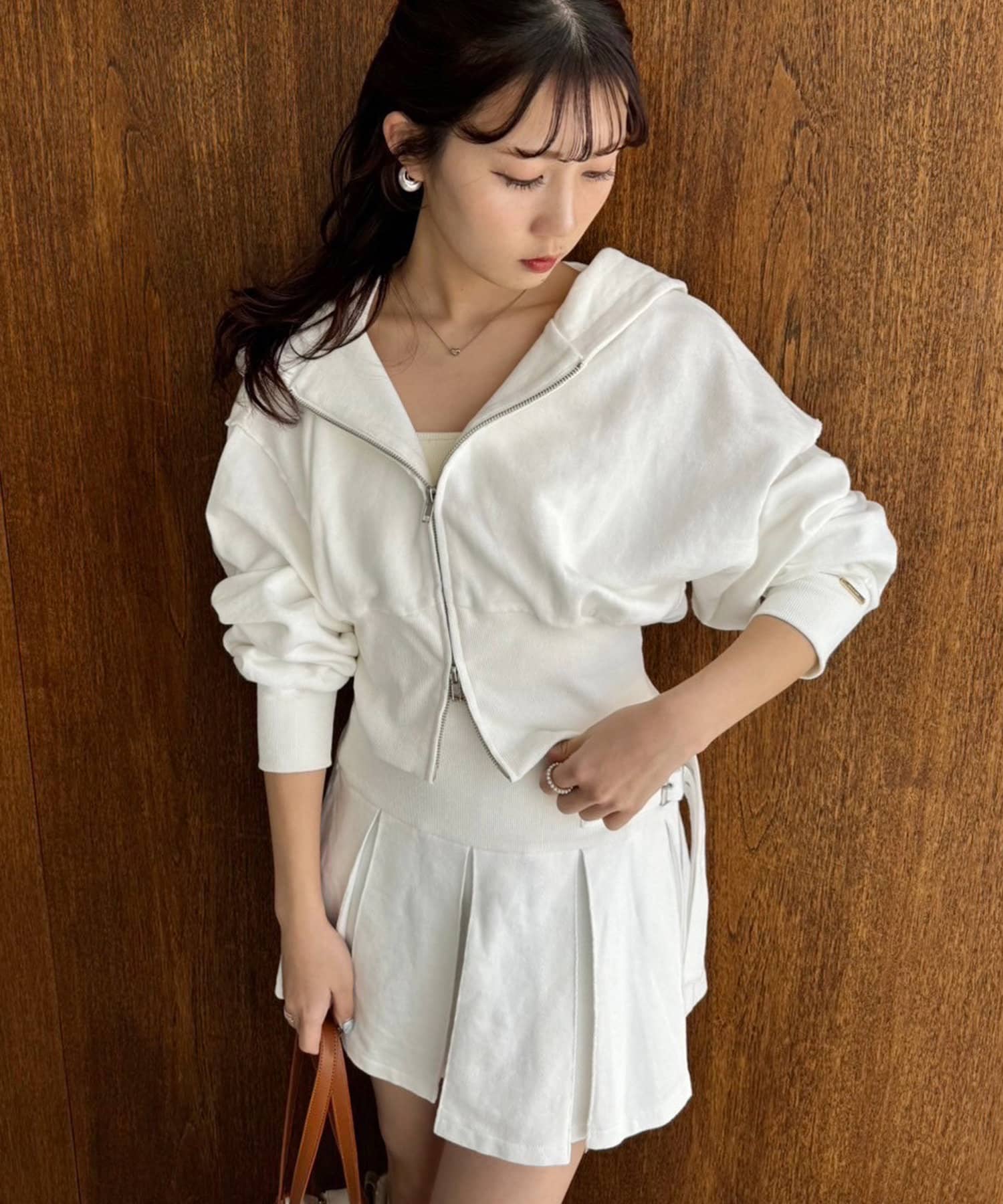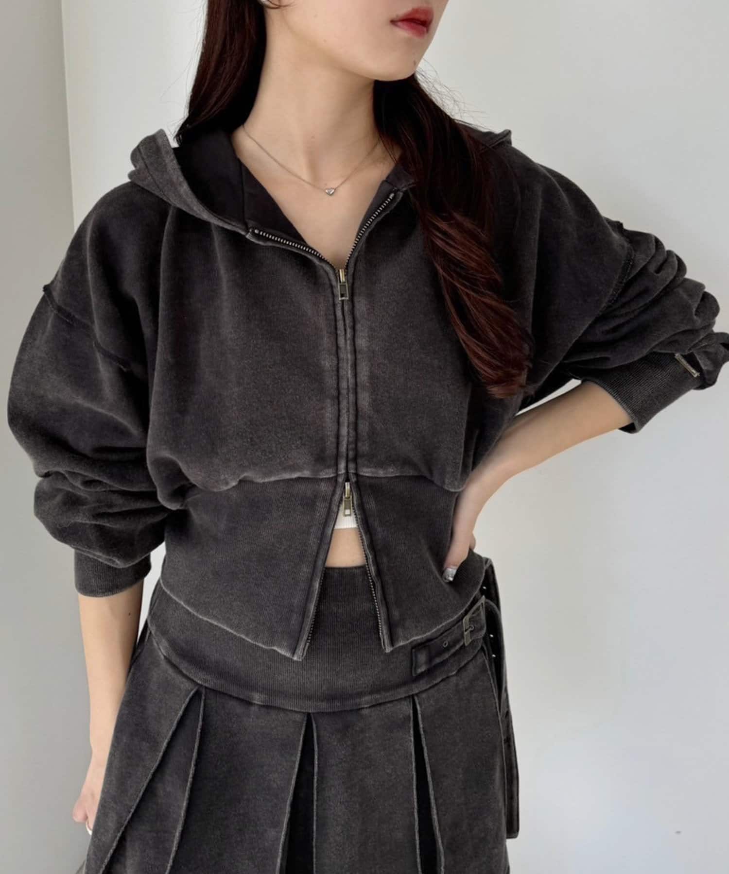 ダブルジップ仕様で、開き具合を調整すればヘルシーな肌見せコーデにもぴったり。
