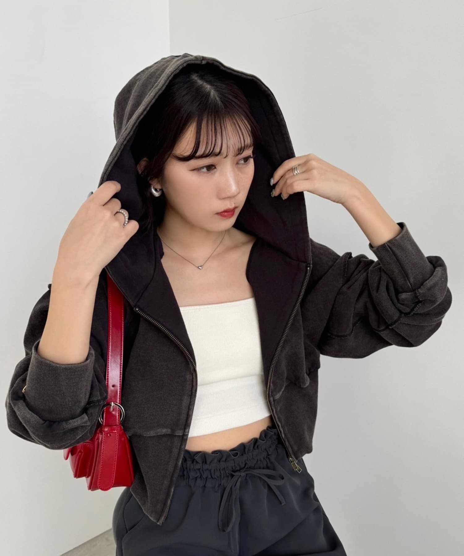 コンパクトなシルエットのショート丈パーカーでスタイルアップ効果も抜群◎