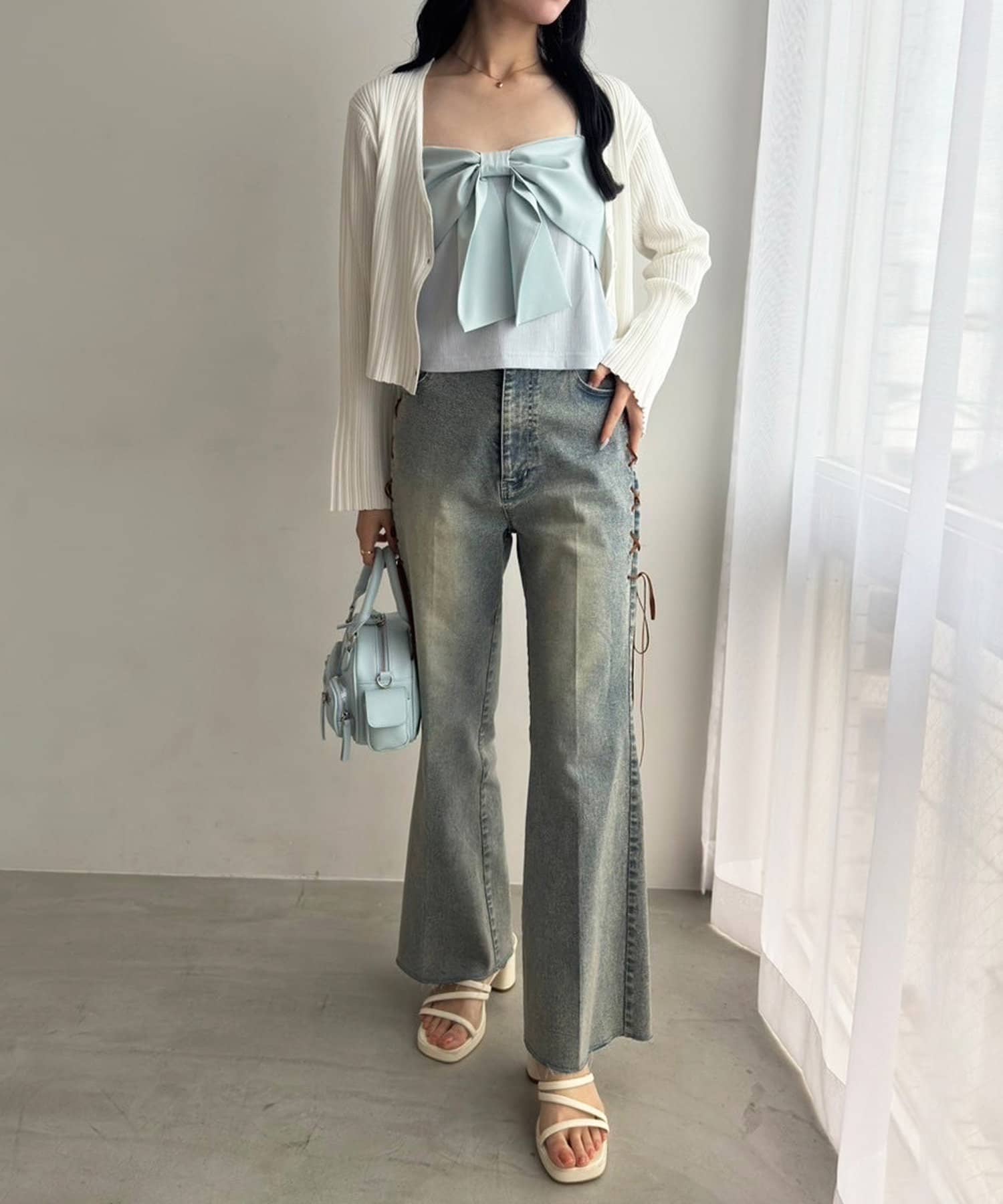 存在感のある大きめリボンが、コーデの主役になるデザインキャミソール。