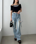 デニムと合わせれば、カジュアルガーリーな着こなしが完成。