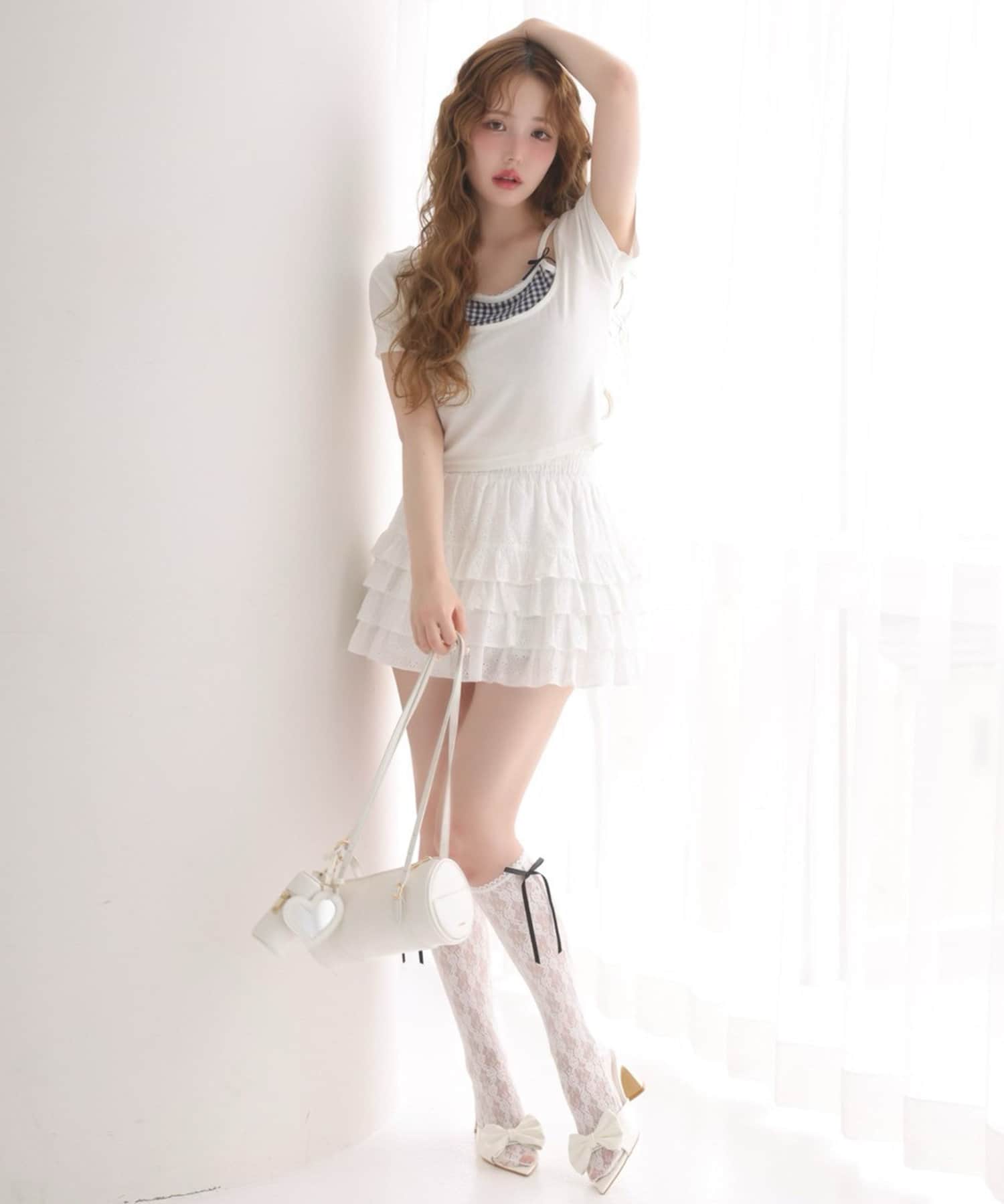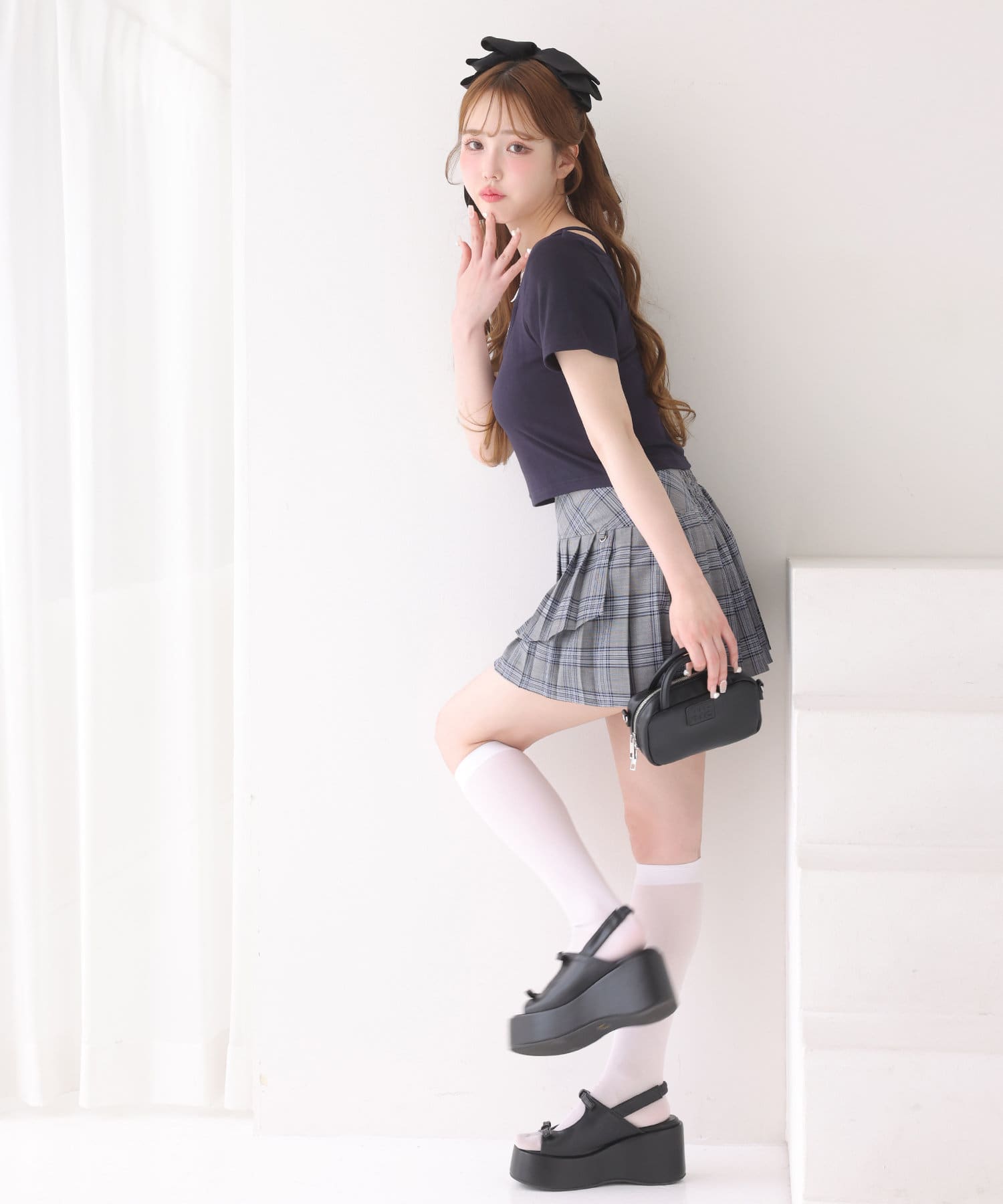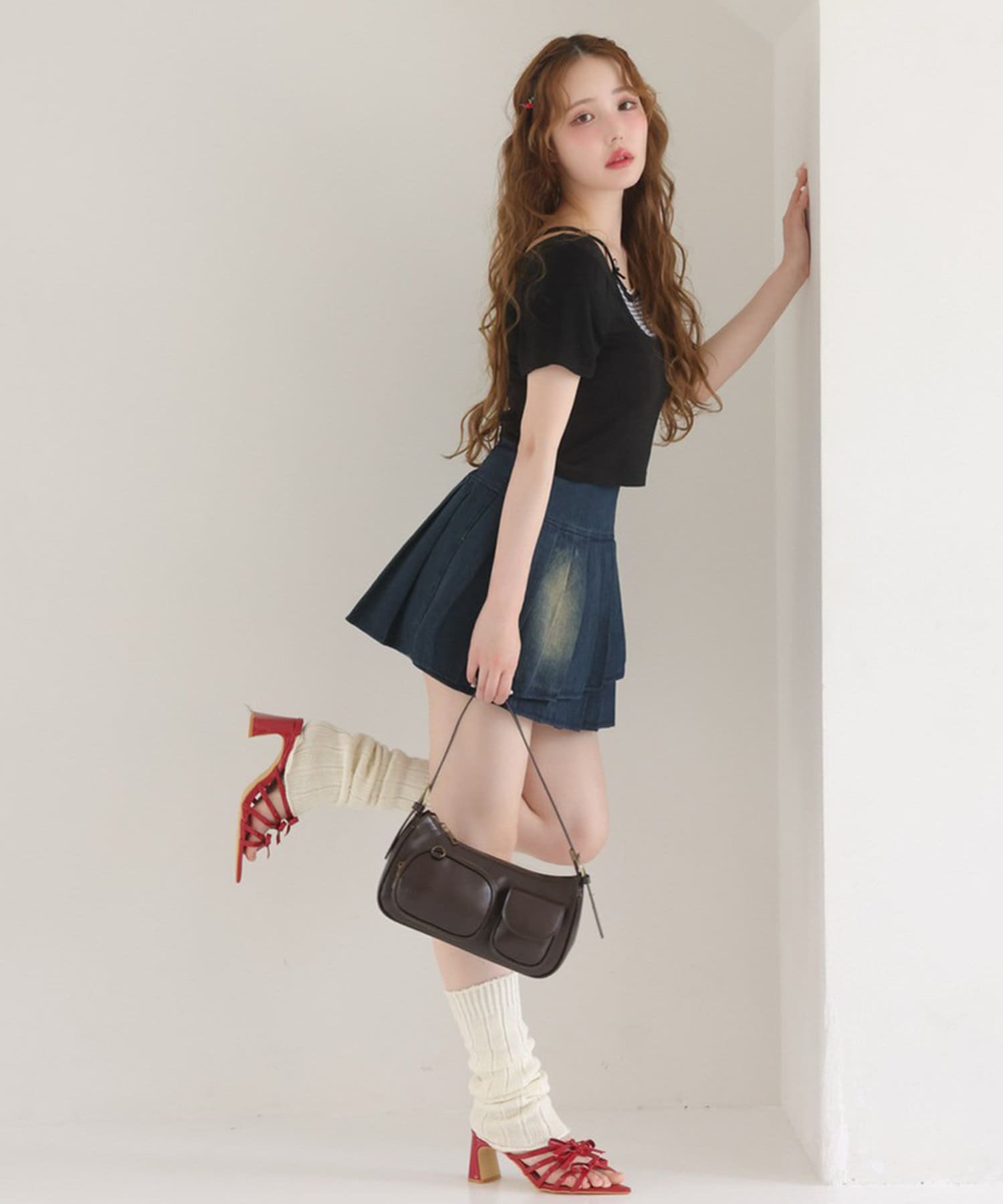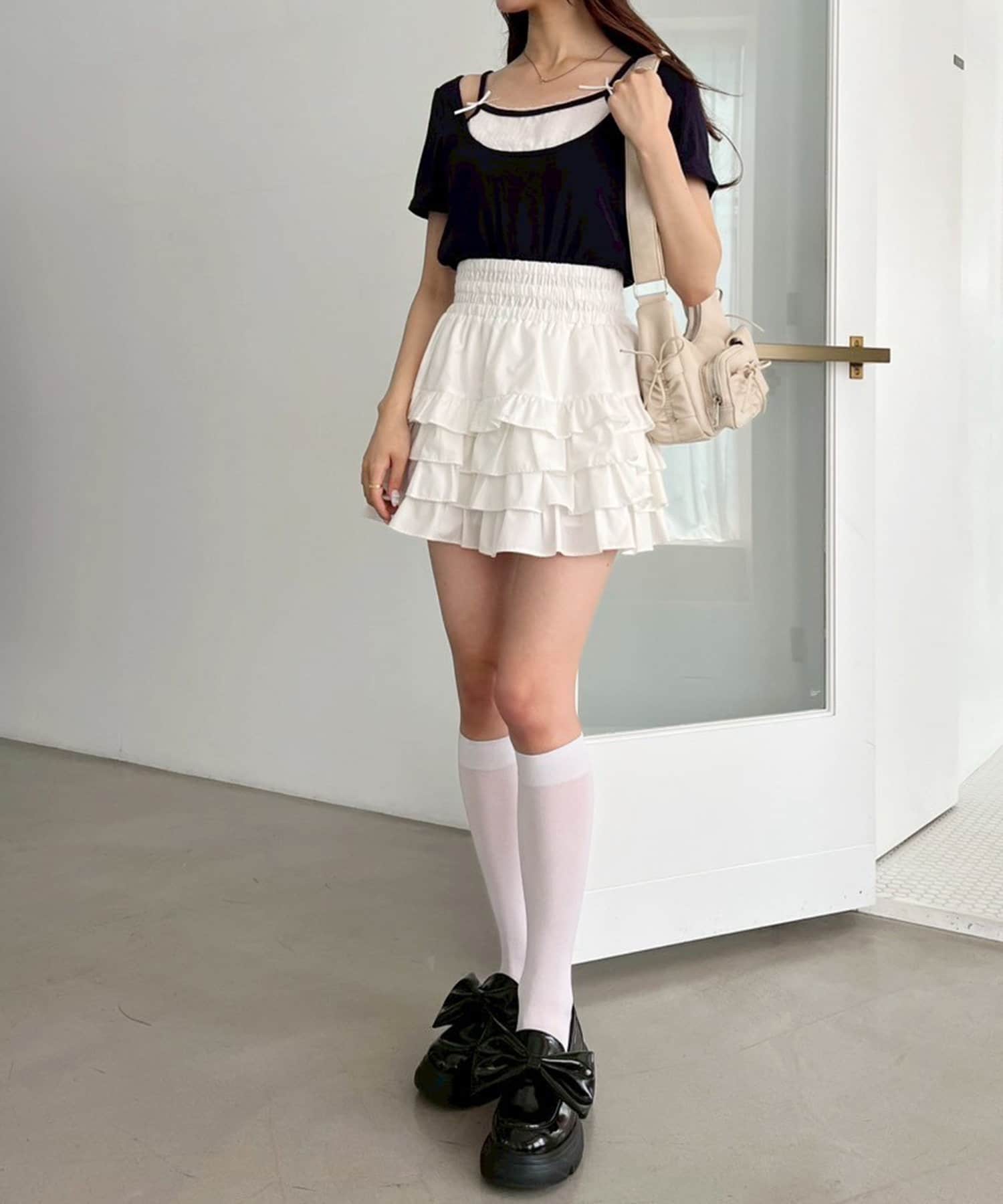 ミニスカートと合わせて、流行のバレエコアコーデにも◎