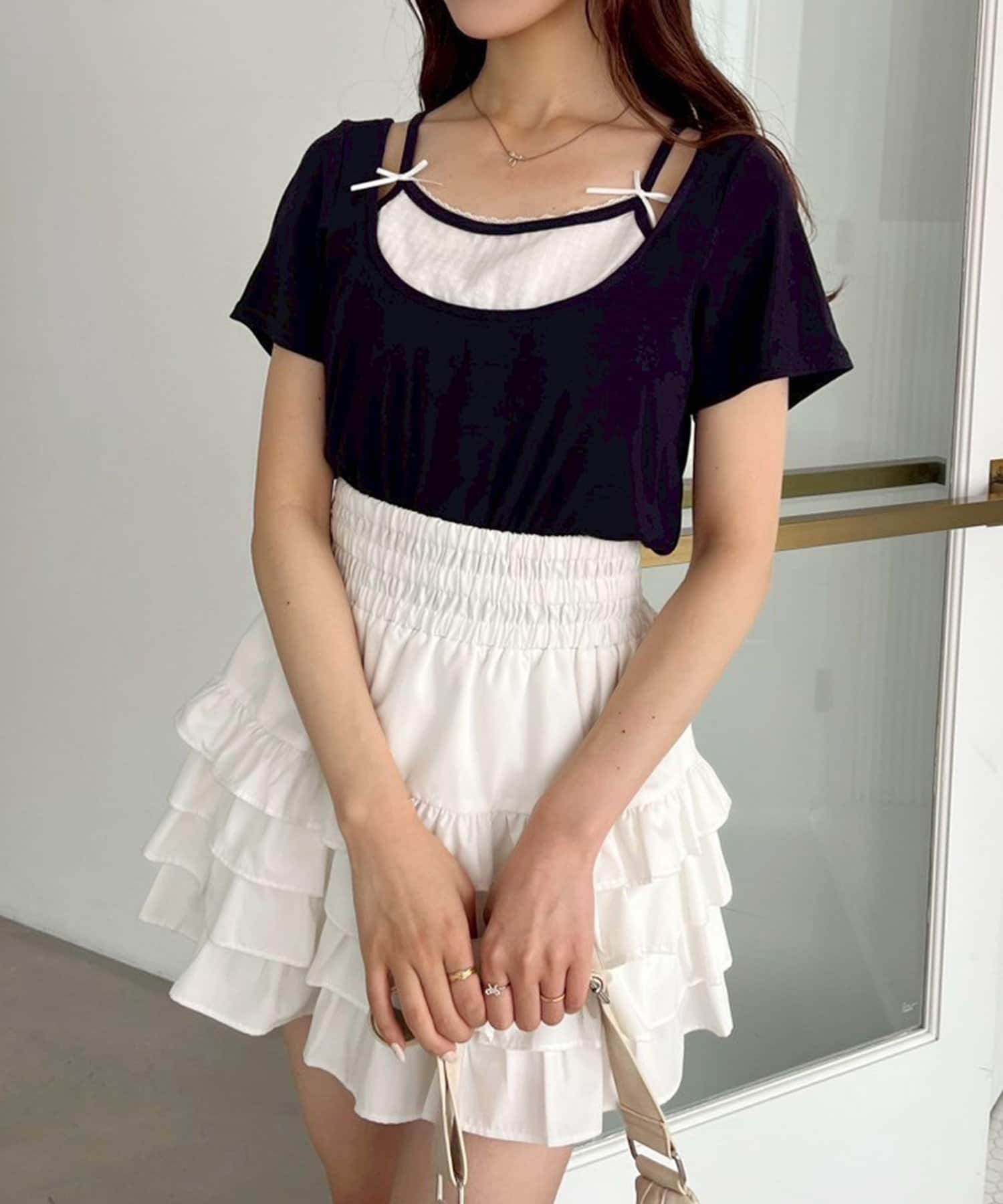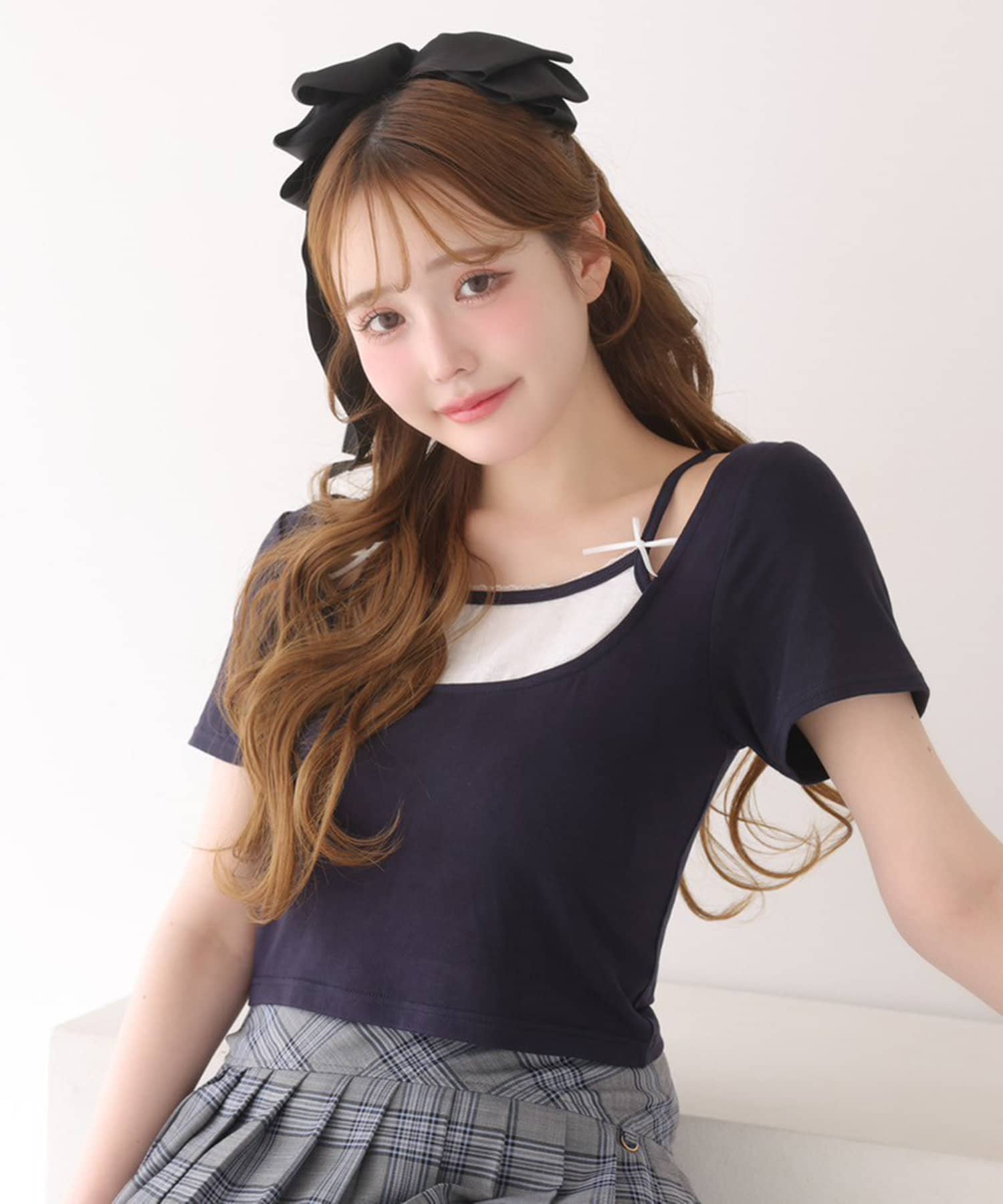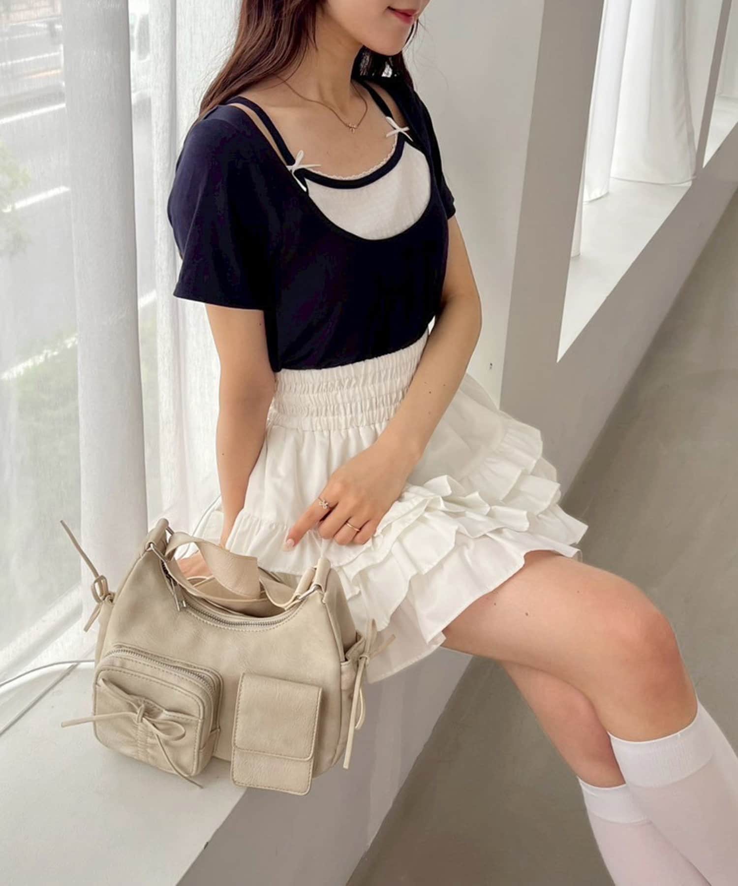 胸元にはリボンを施し、コーディネートのアクセントになるデザインです。