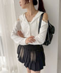 肩も空いてるのと、ボタンなので、首周りも開けることができて、短丈なのでスタイルも盛れます!