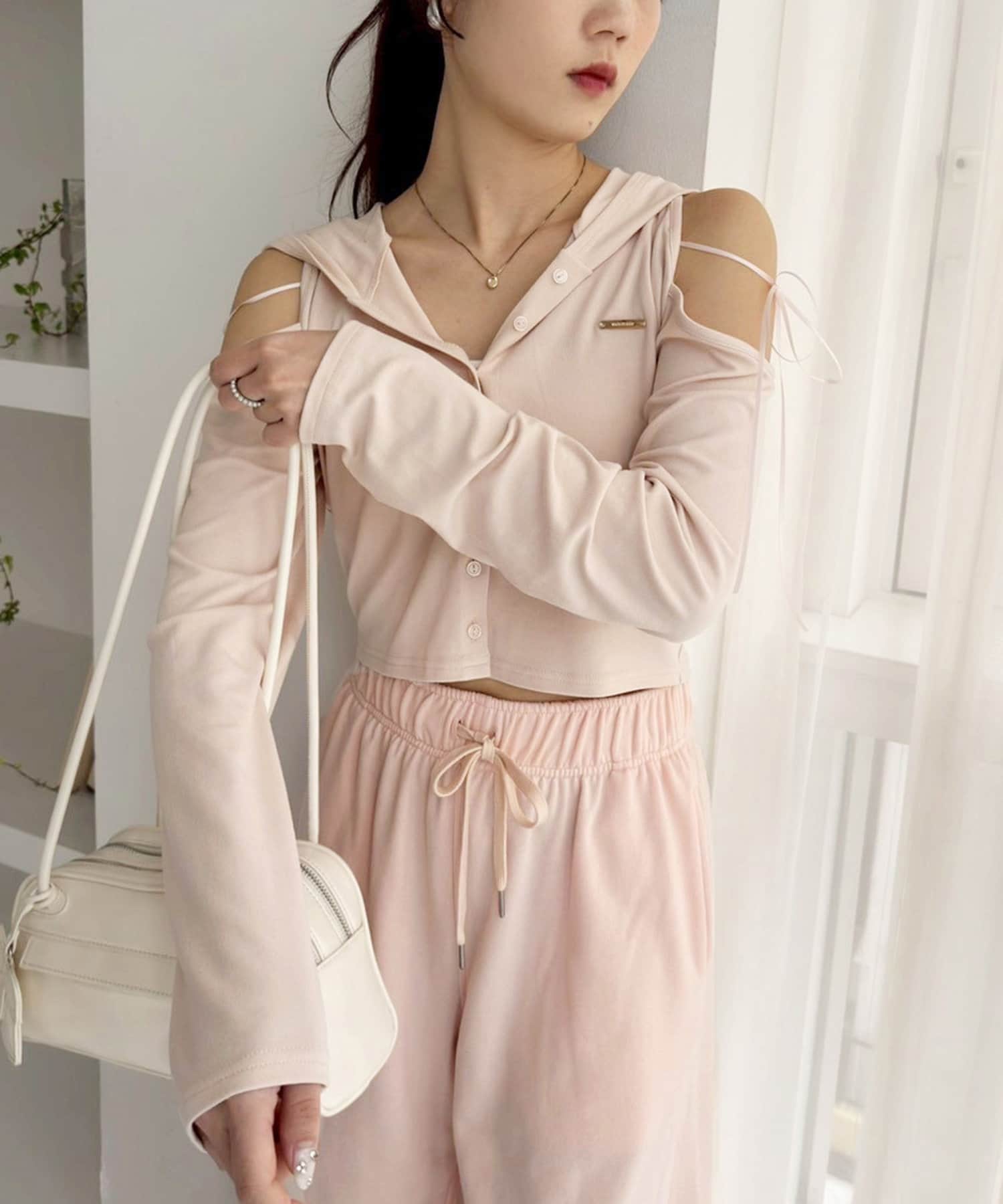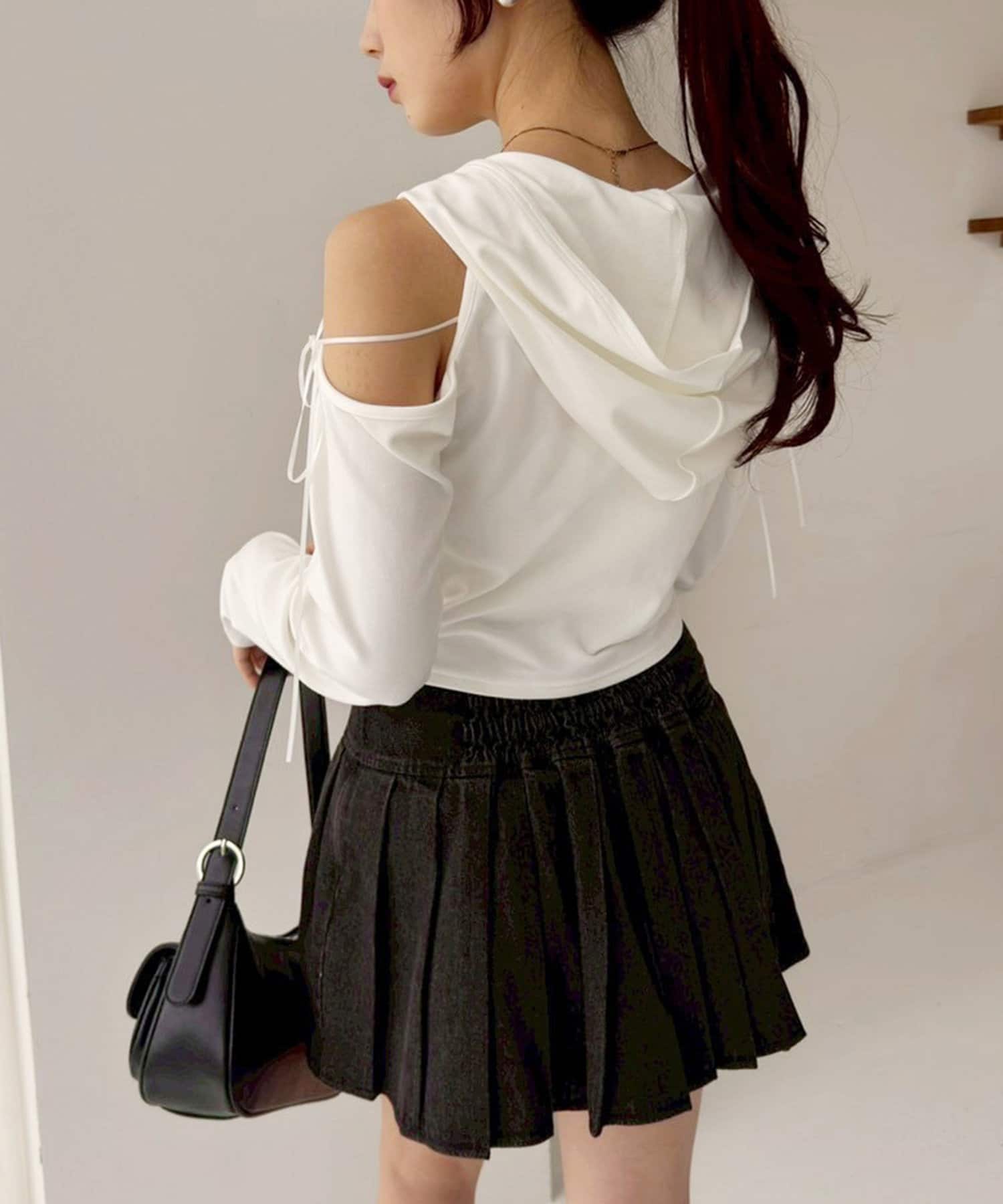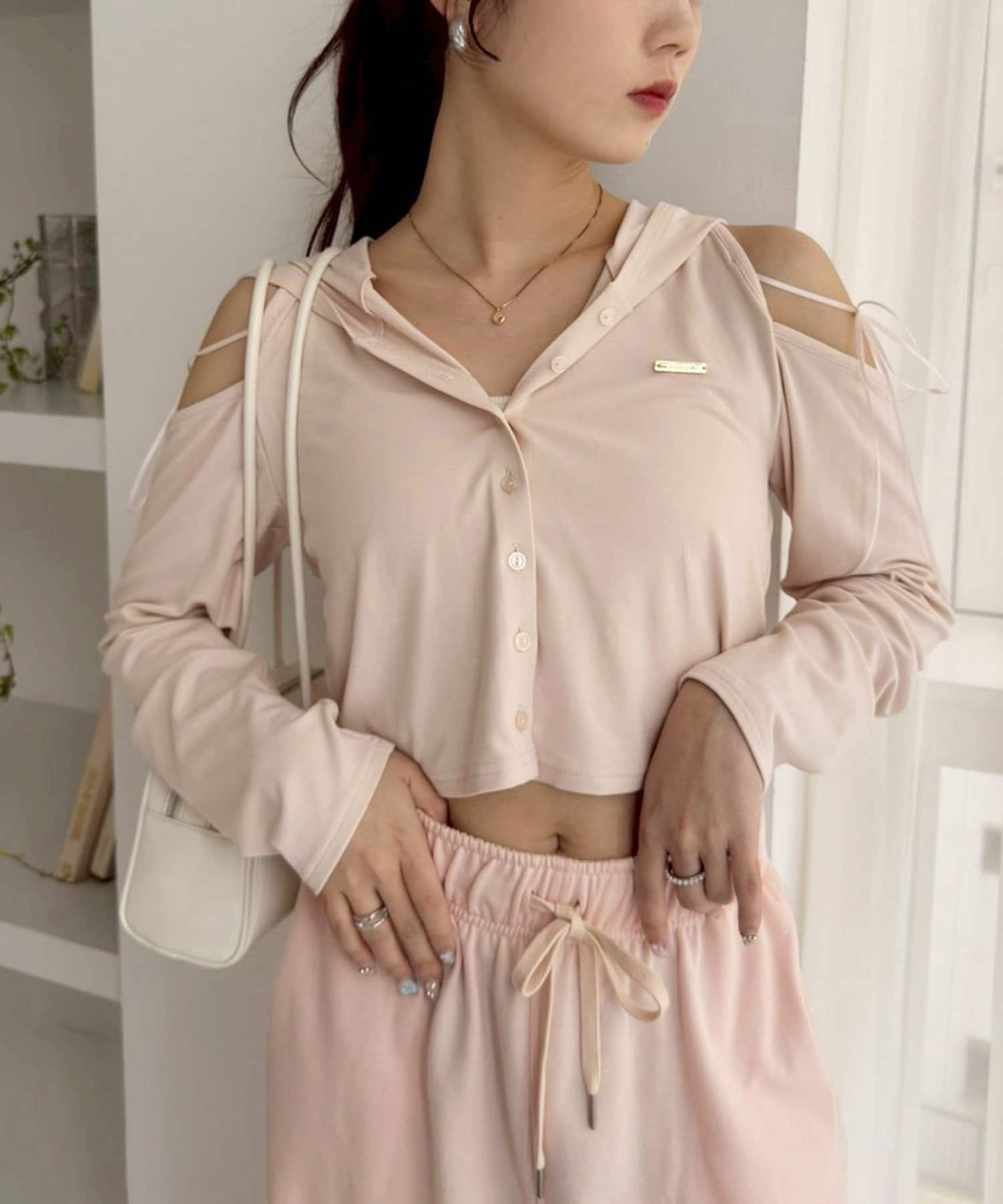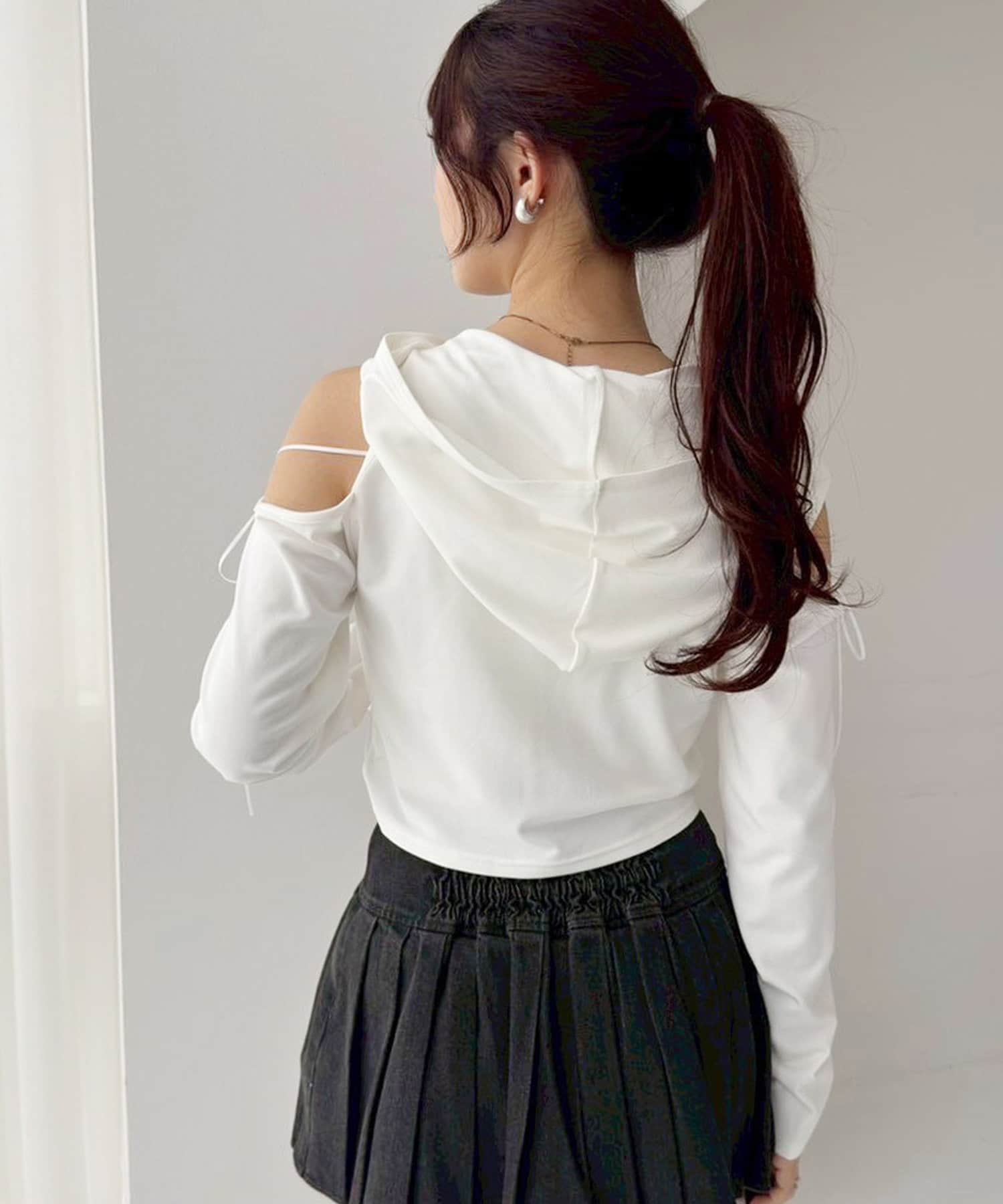 肩あきデザインでヘルシーな肌見せが楽しめる、薄手フーディーが登場!
