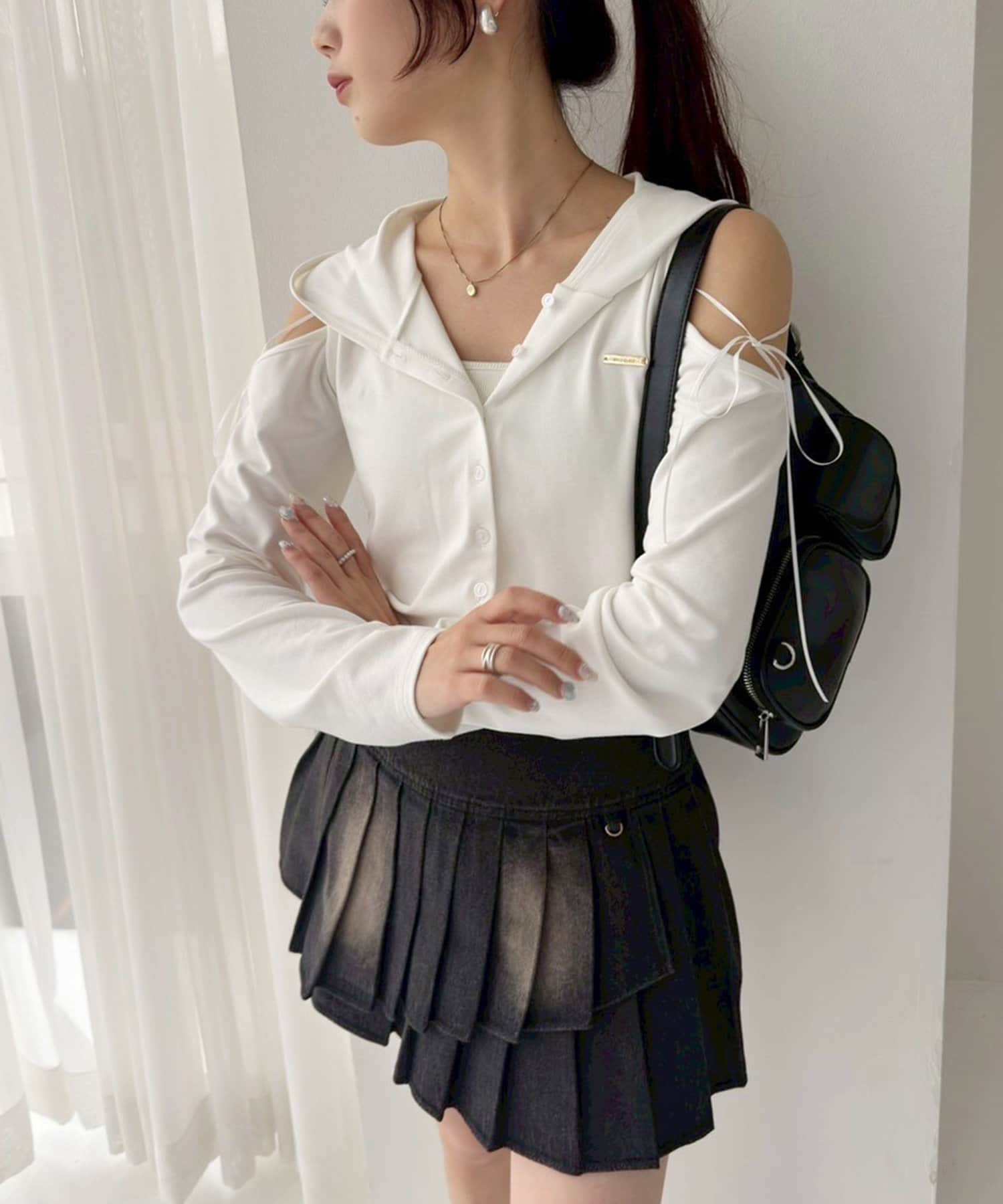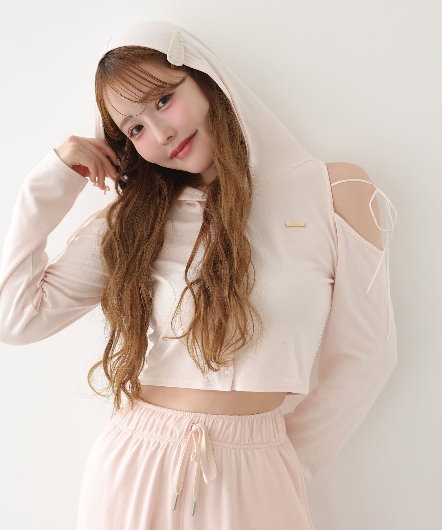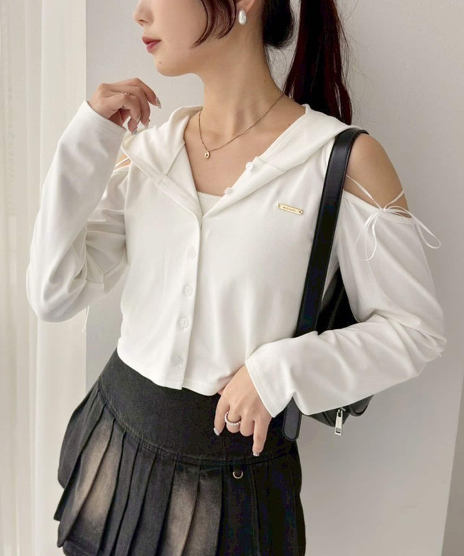 • one after another NICE CLAUP(ワンアフターアナザー ナイスクラップ) 【セットで着られる】肩あきリボンパーカー