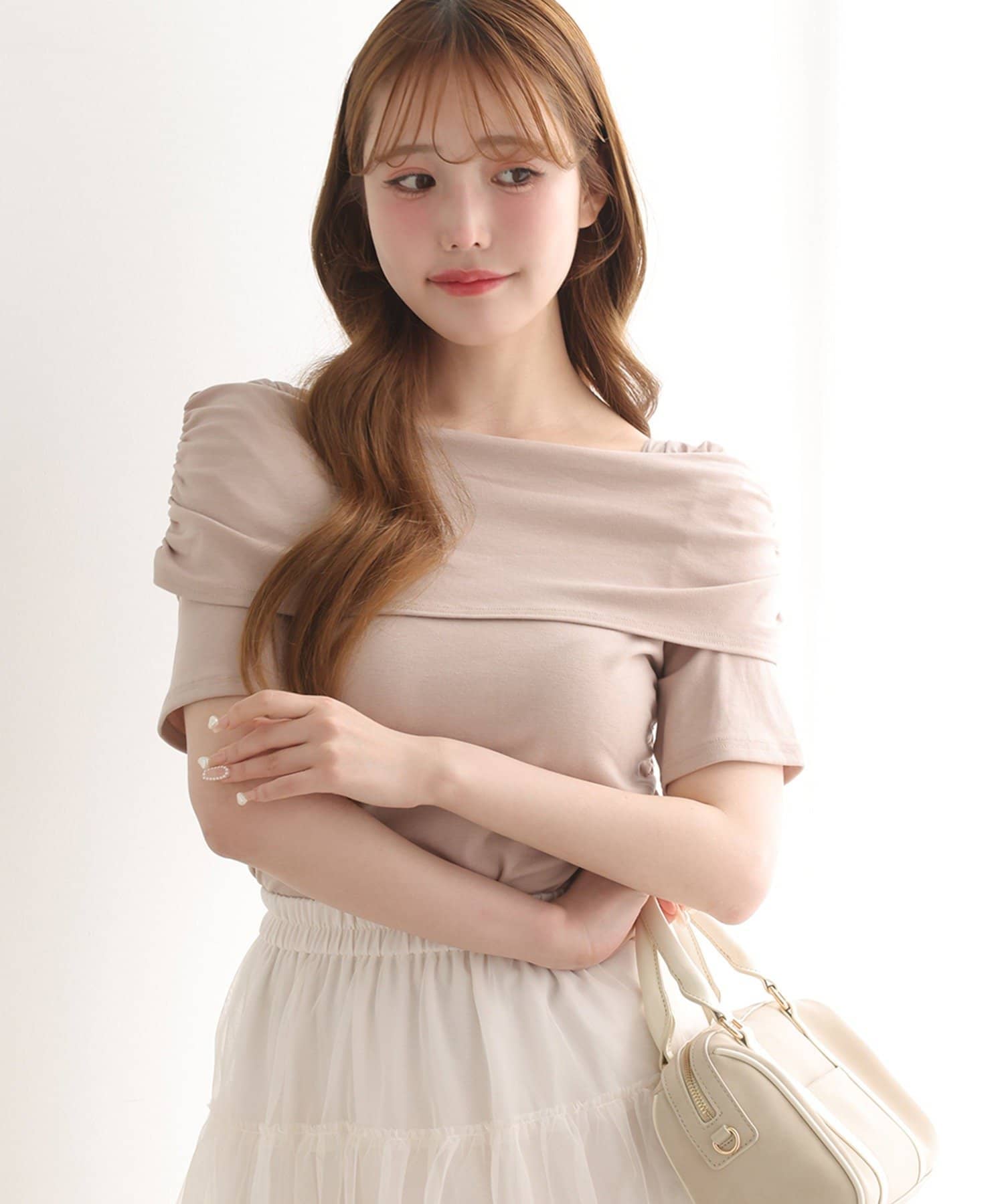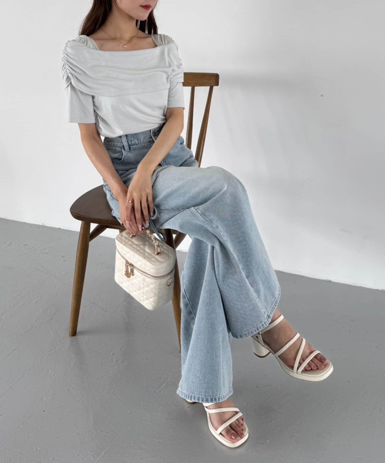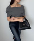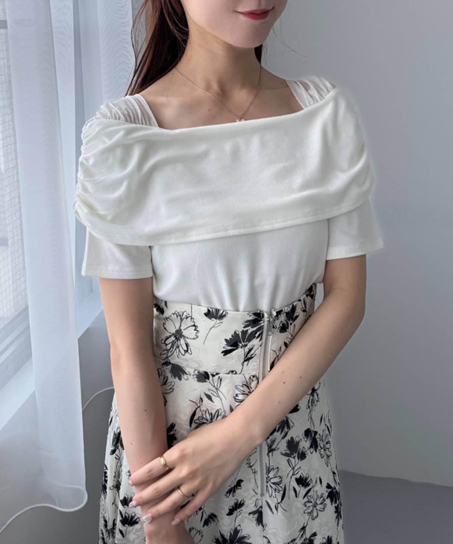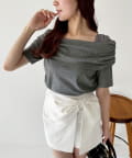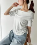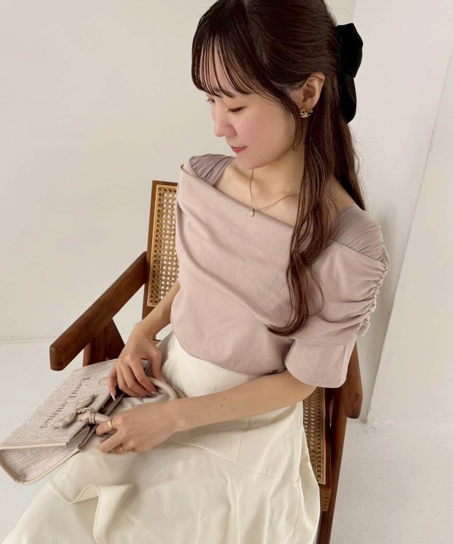 オフショル部分は大きく折り返しているので大人っぽい印象に。