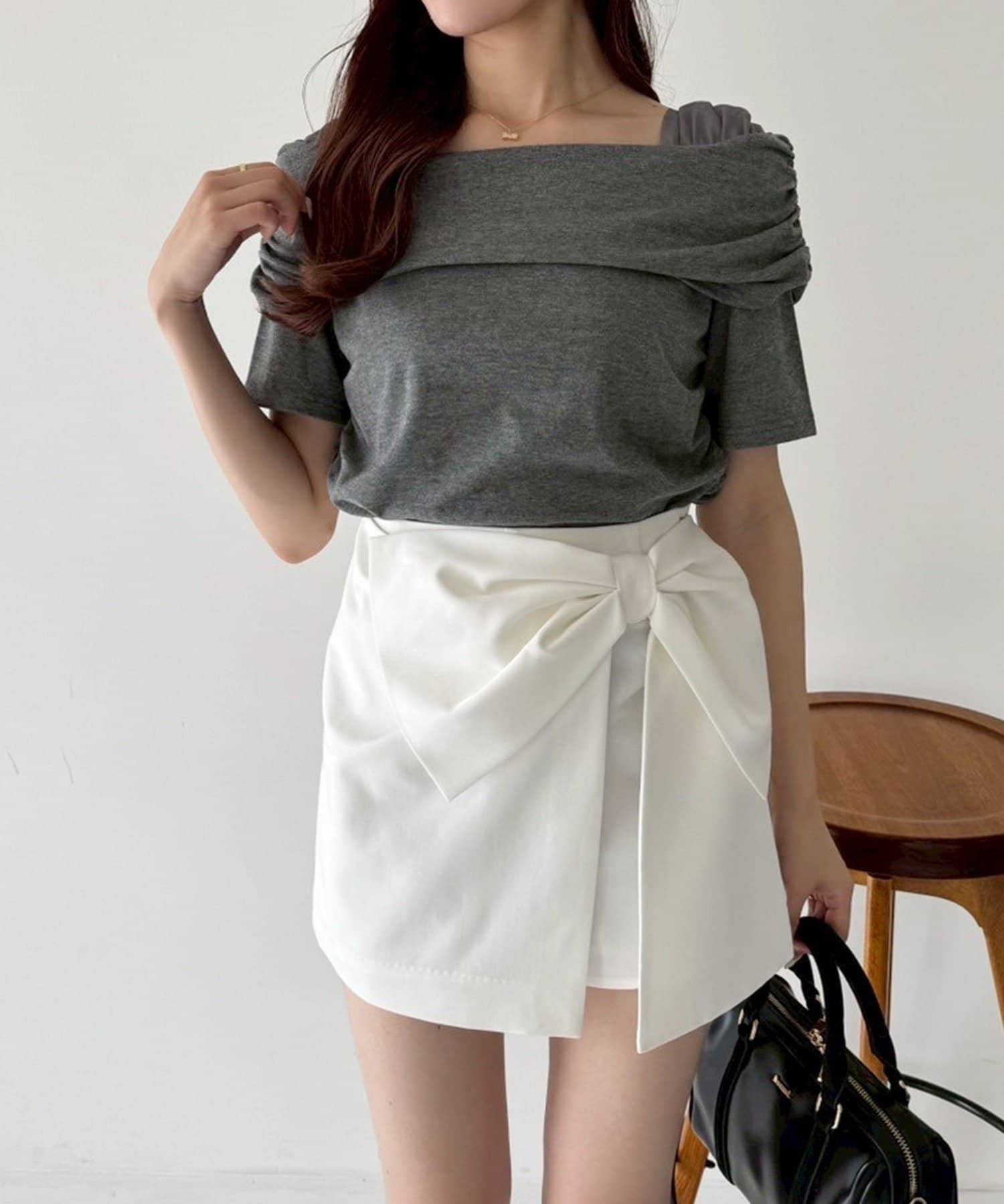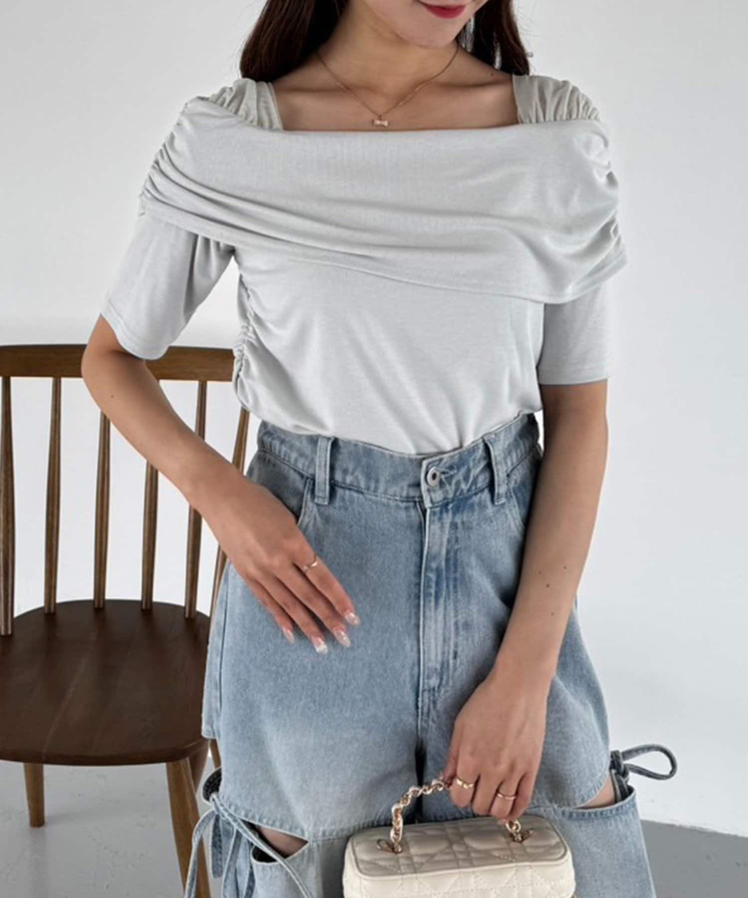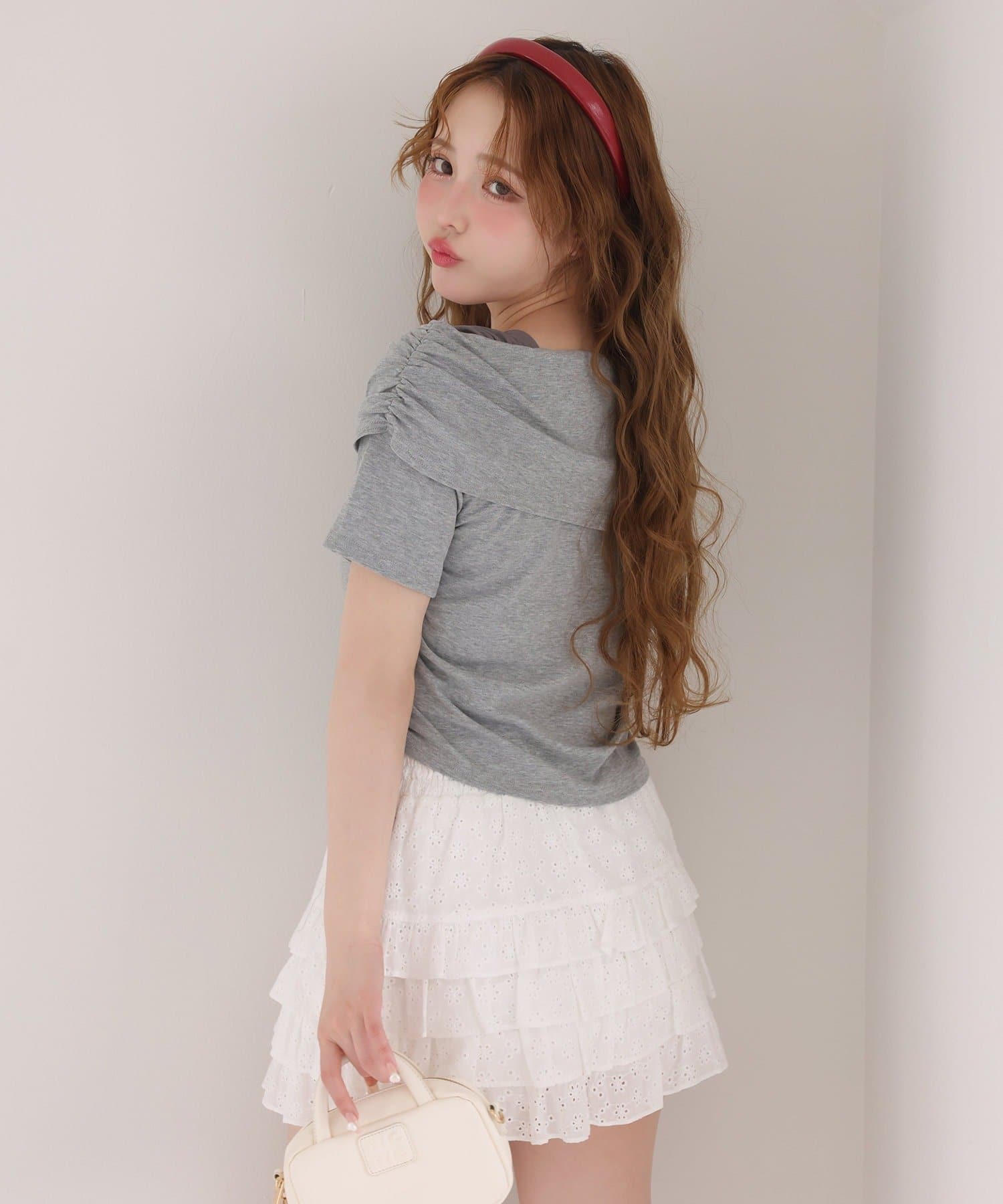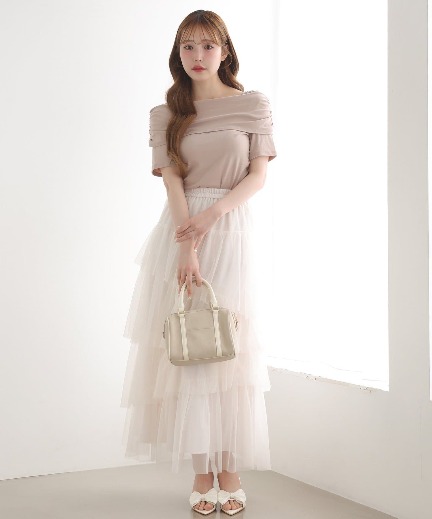 オフショル部分は大きく折り返しているので大人っぽい印象に。