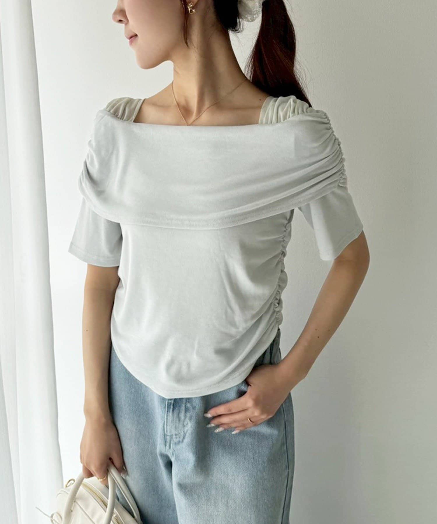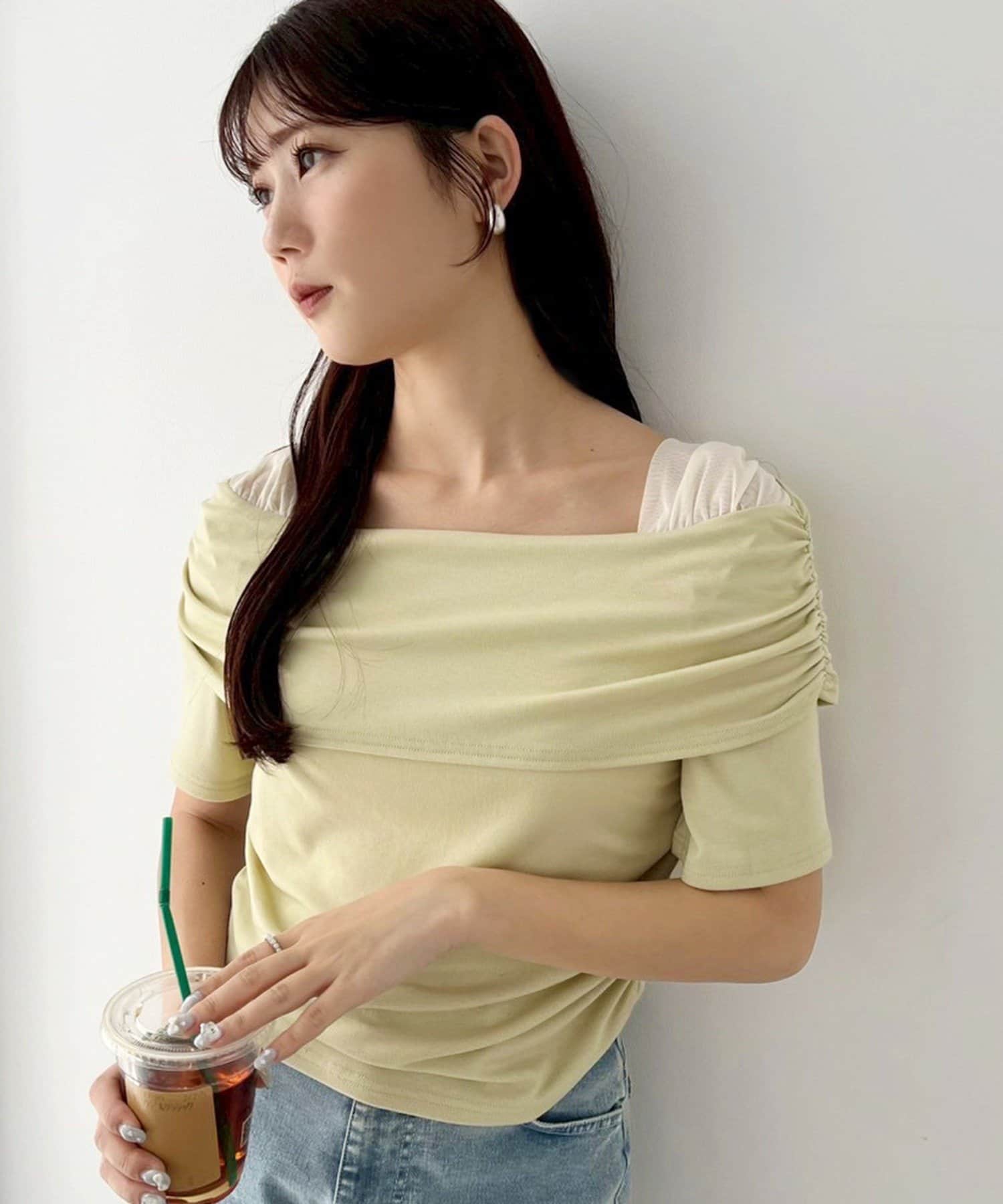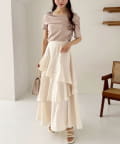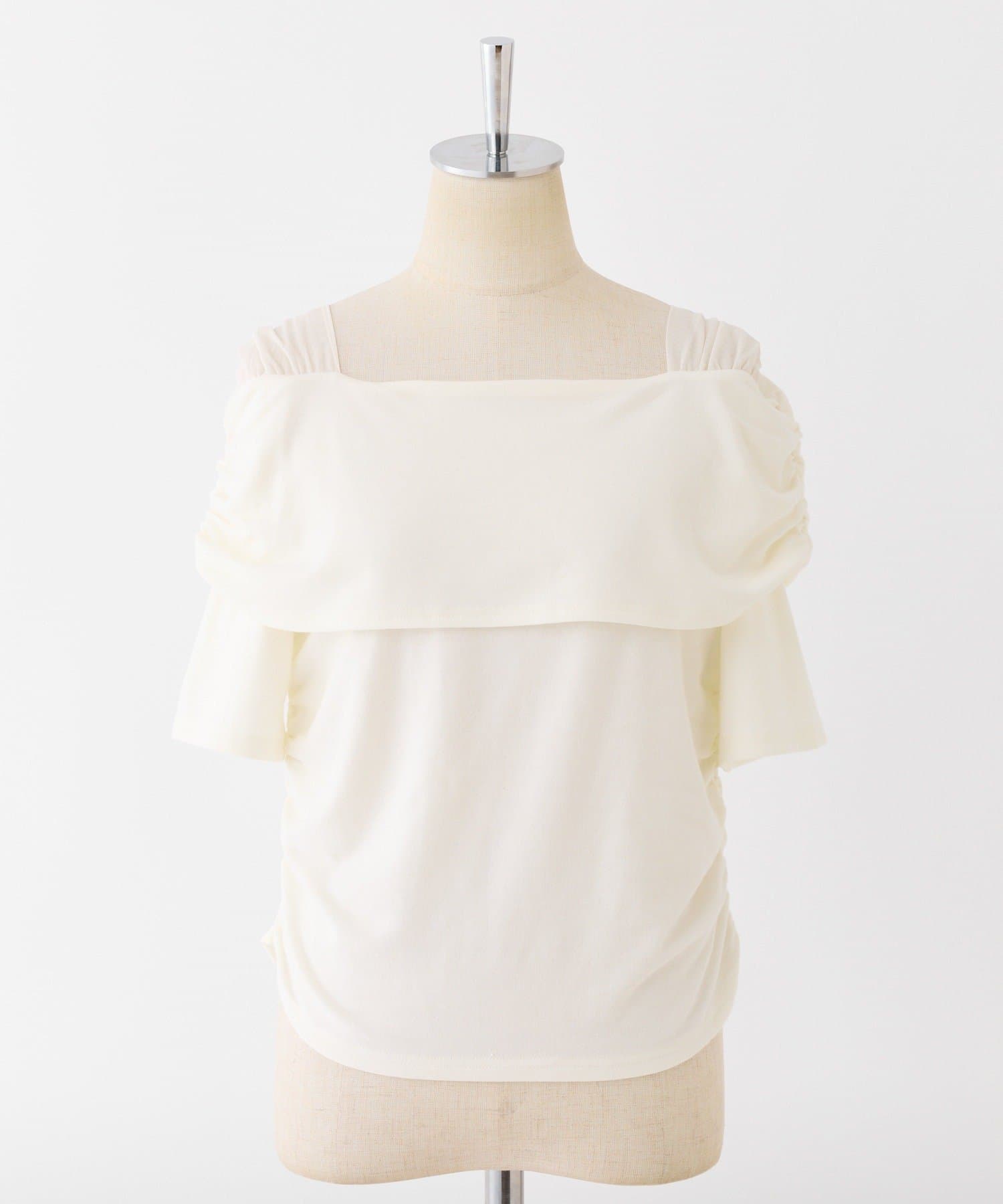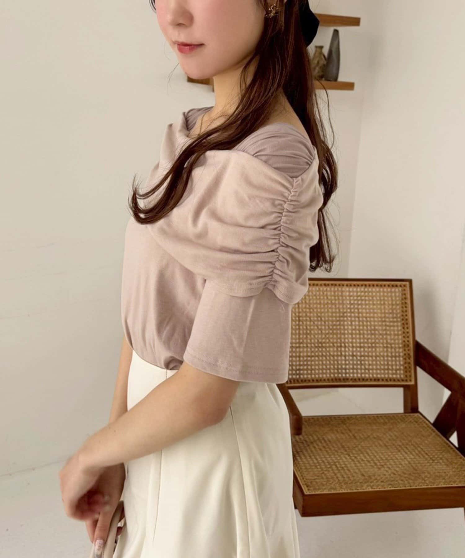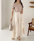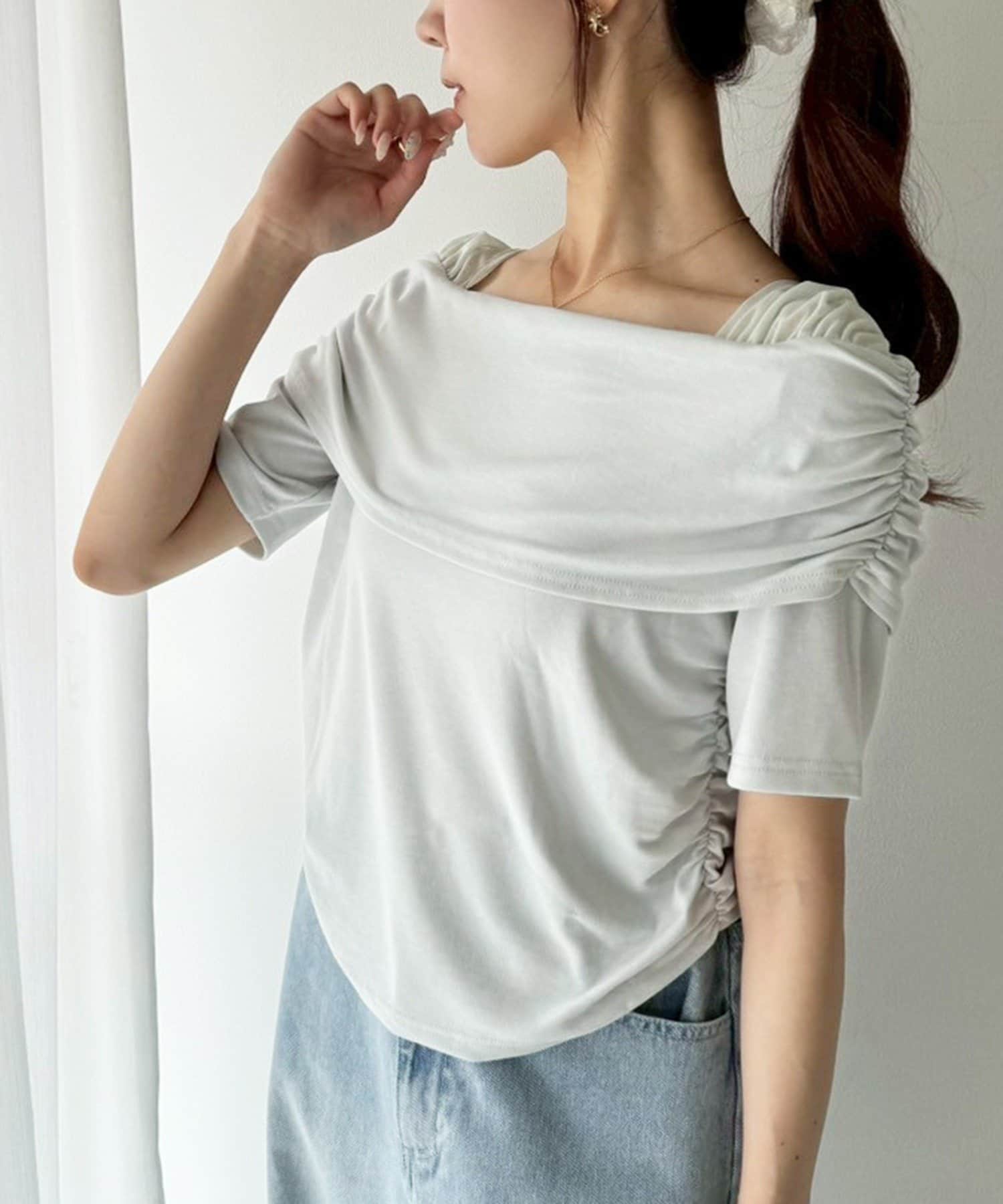 オフショル部分は大きく折り返しているので大人っぽい印象に。