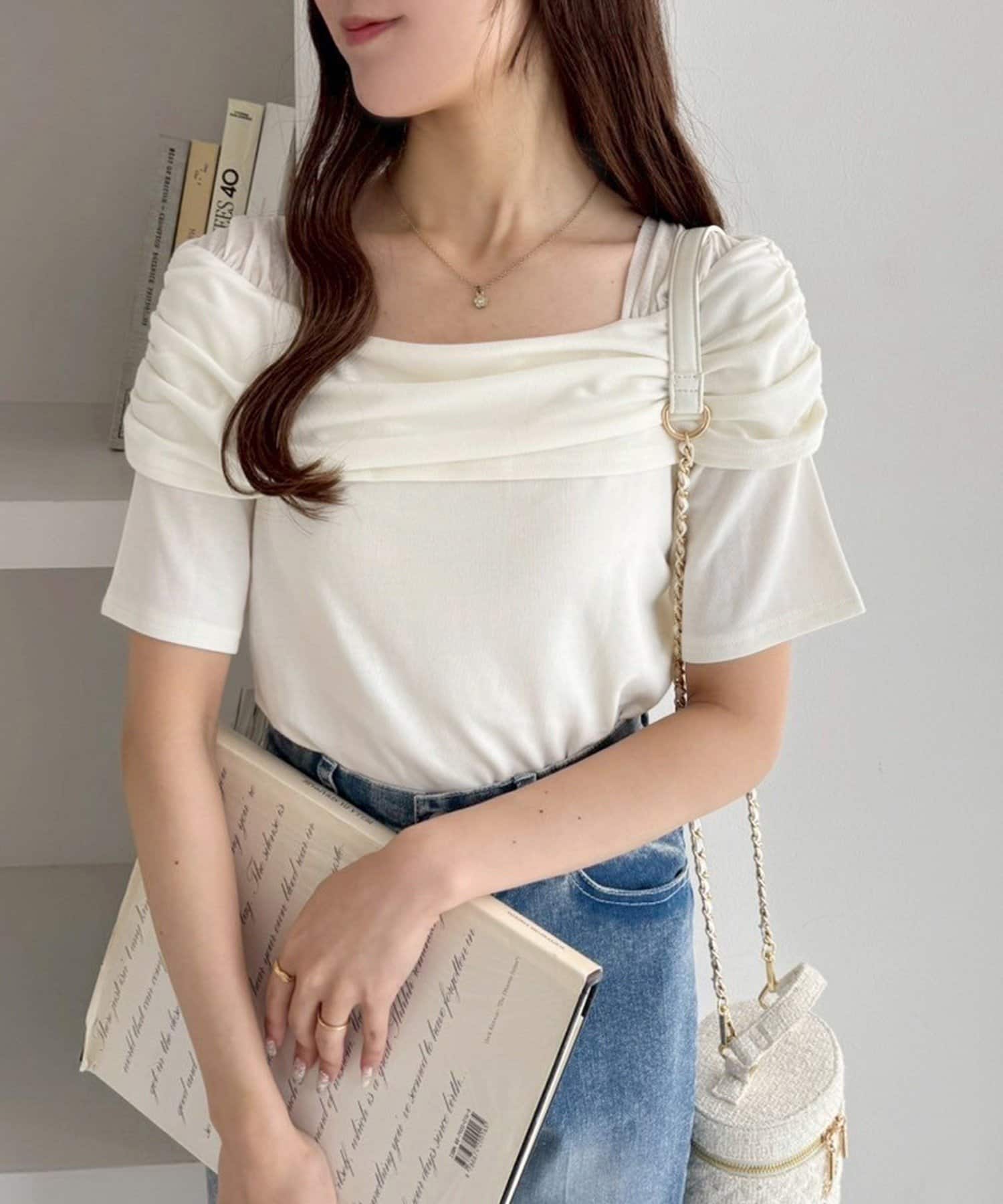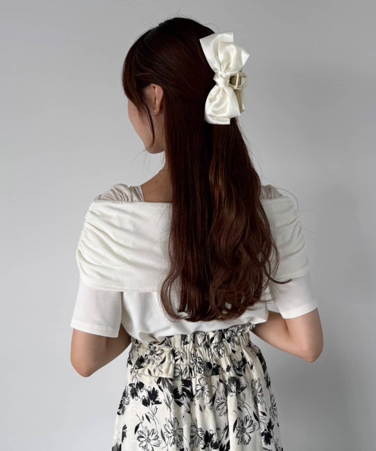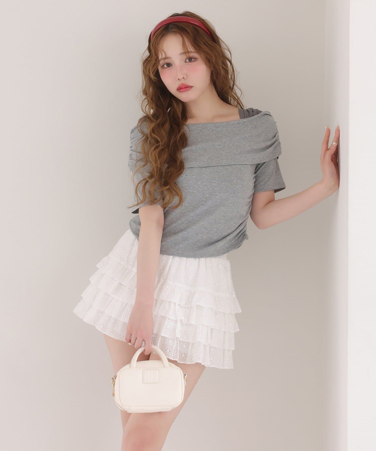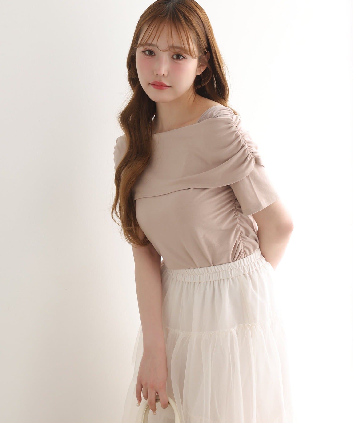 オフショル部分は大きく折り返しているので大人っぽい印象に。