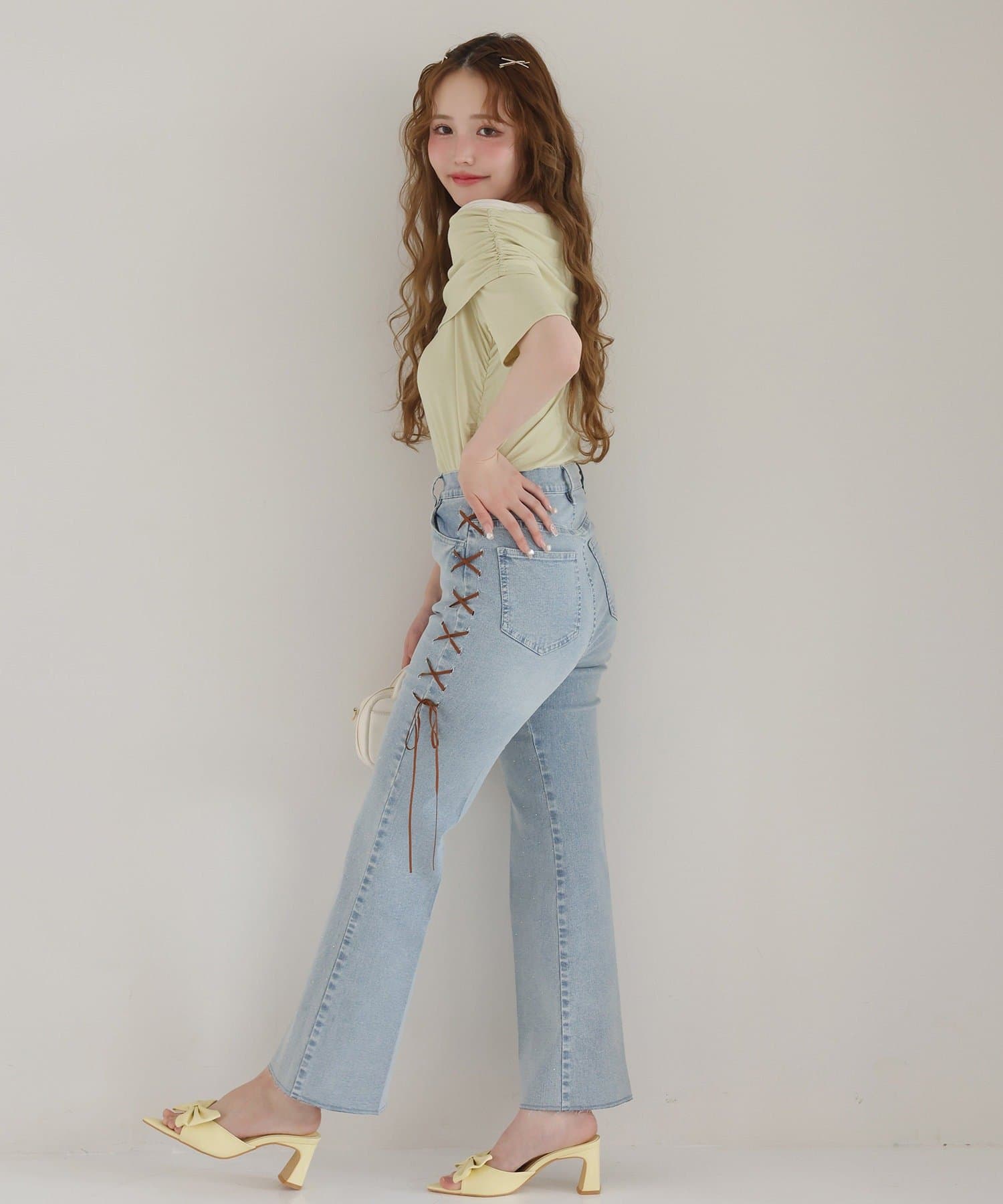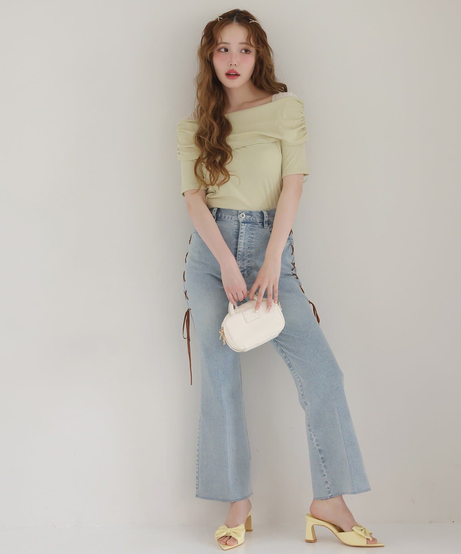 • NICE CLAUP / OLIVE des OLIVE OUTLET(ナイスクラップ  / オリーブ デ オリーブ アウトレット) 【one after another】オフショル半袖