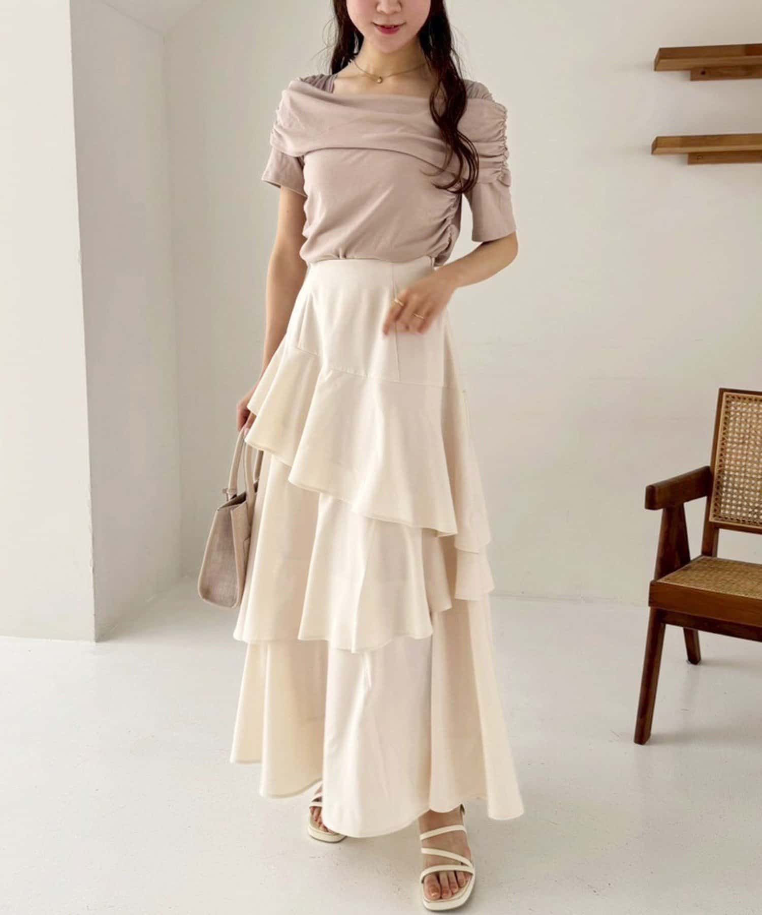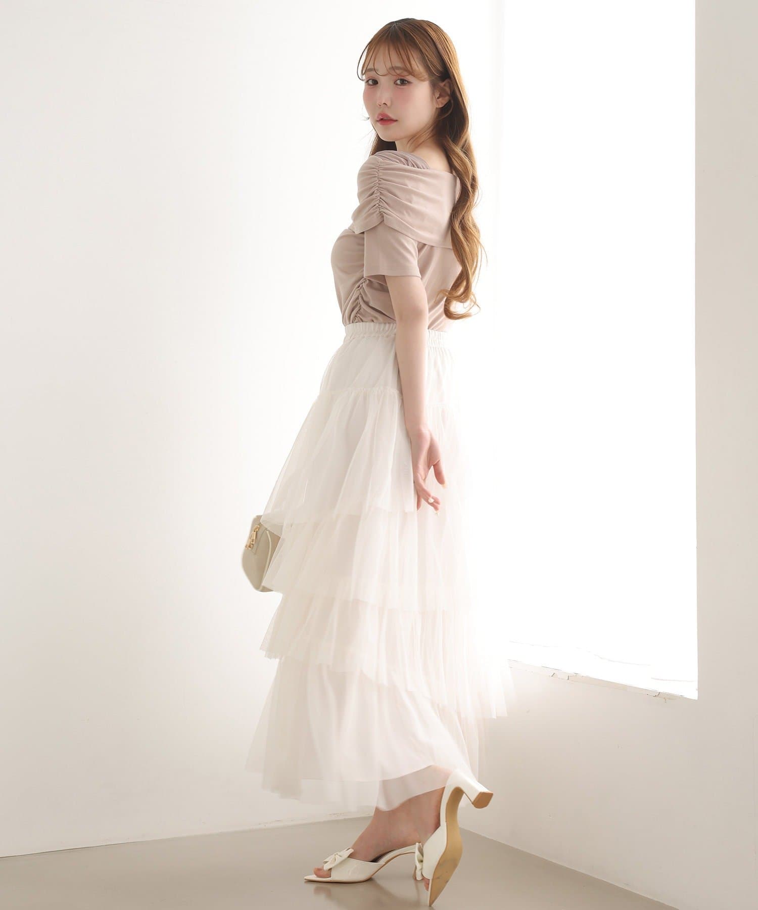 大人レディーなコーデなら、マーメイドスカートやプリーツスカートとの相性が◎