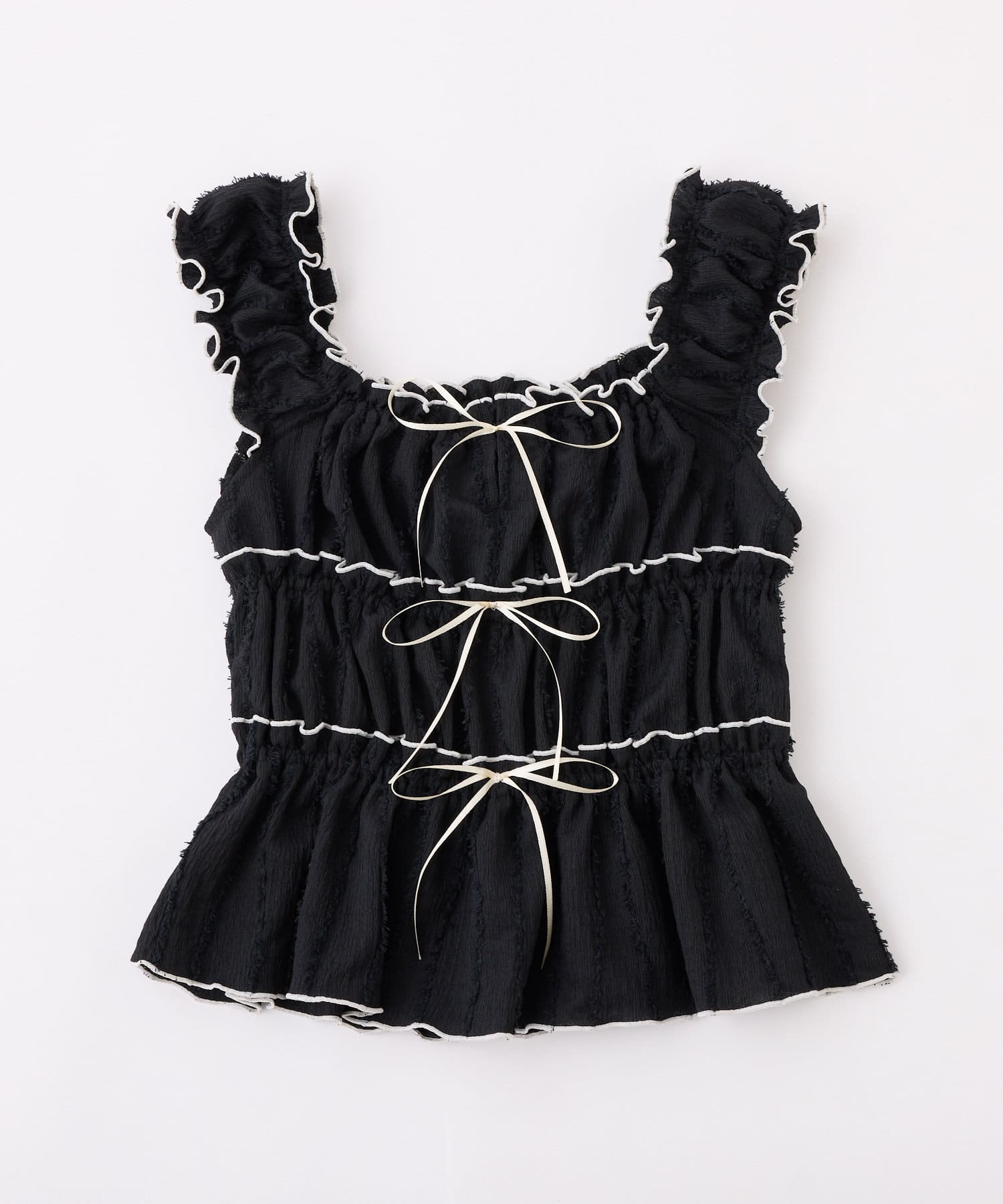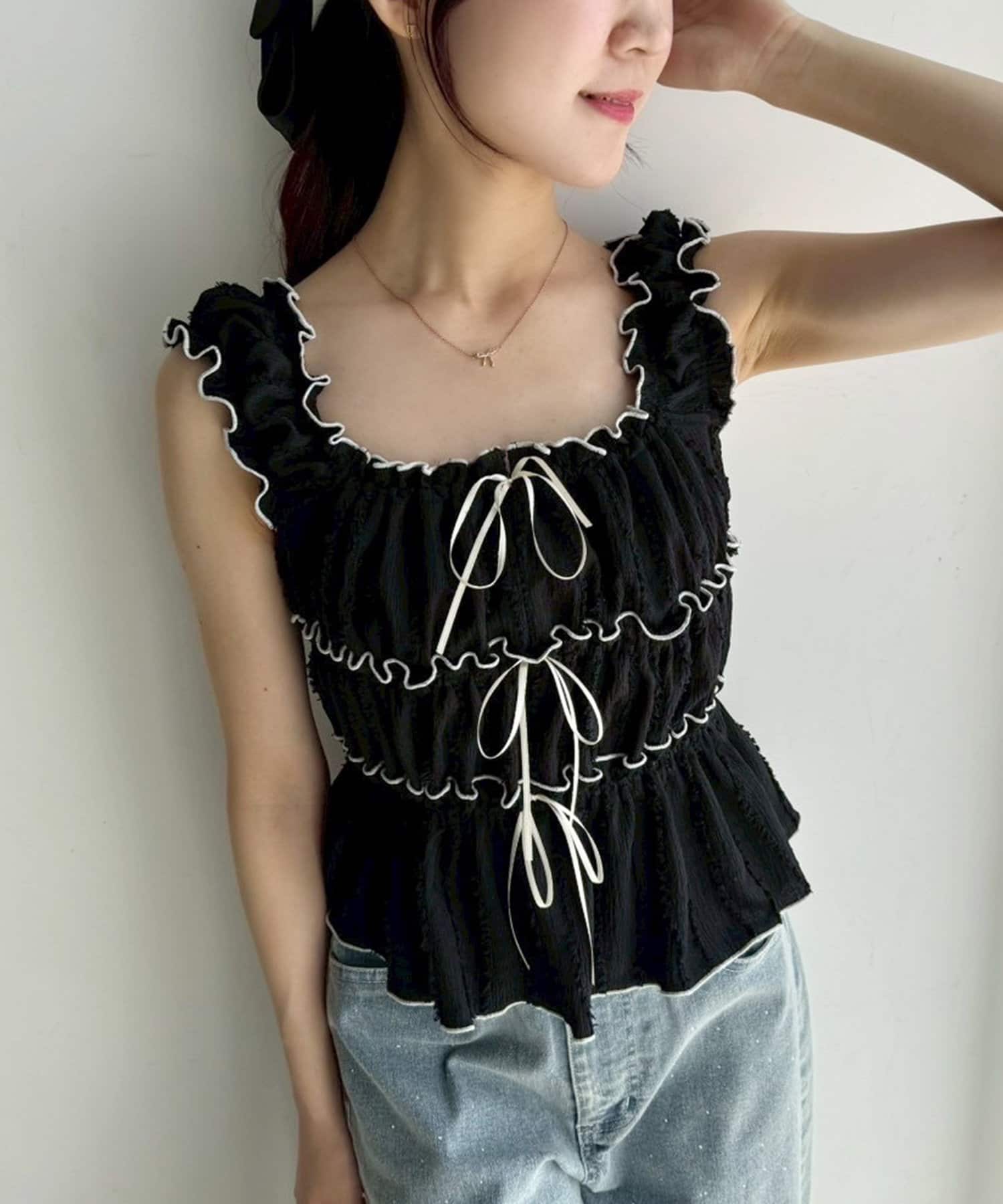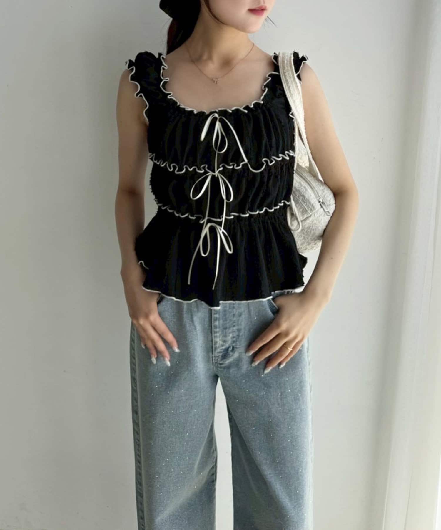 1枚でコーデの主役に!リボンとフリルが可愛いビスチェ