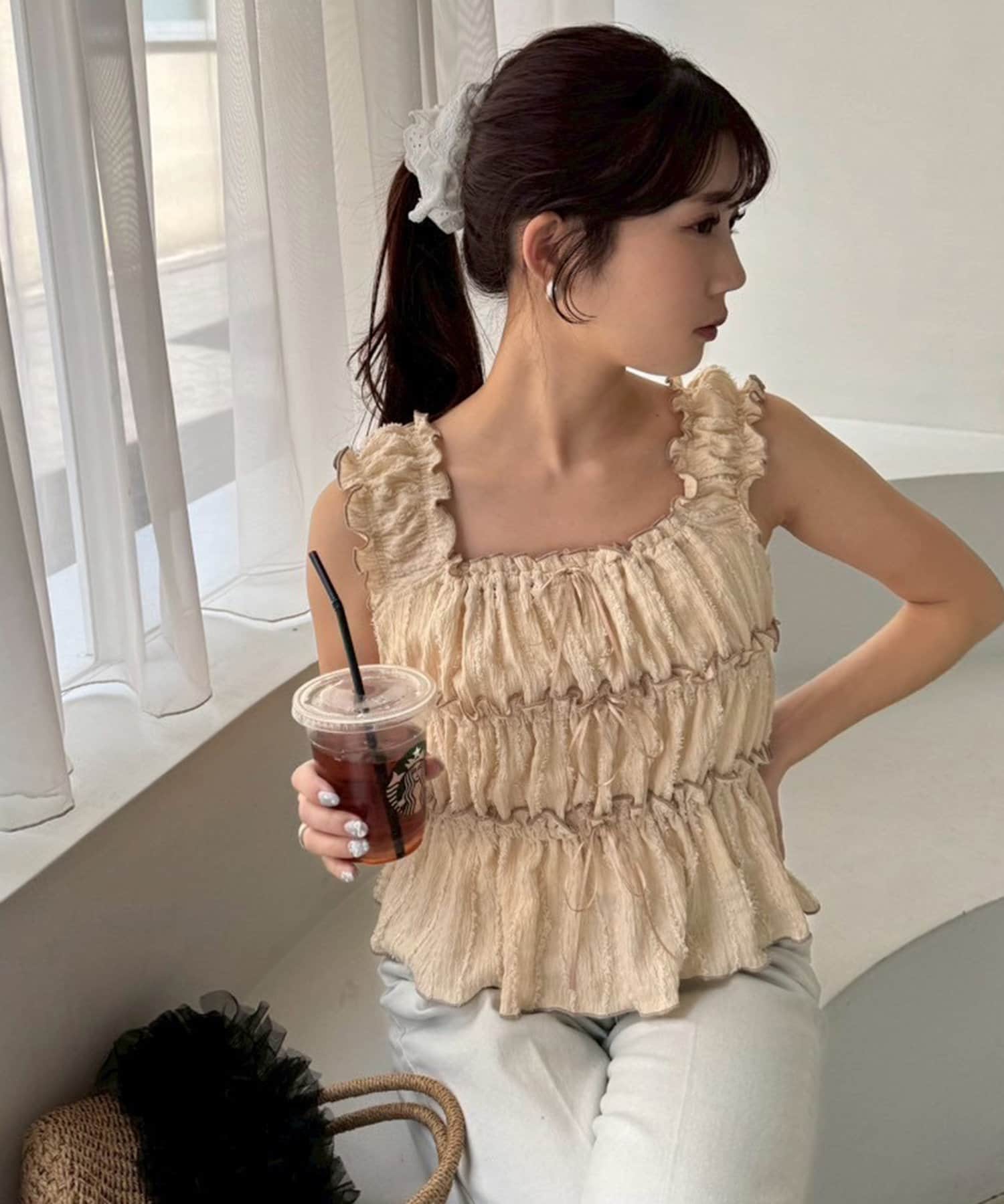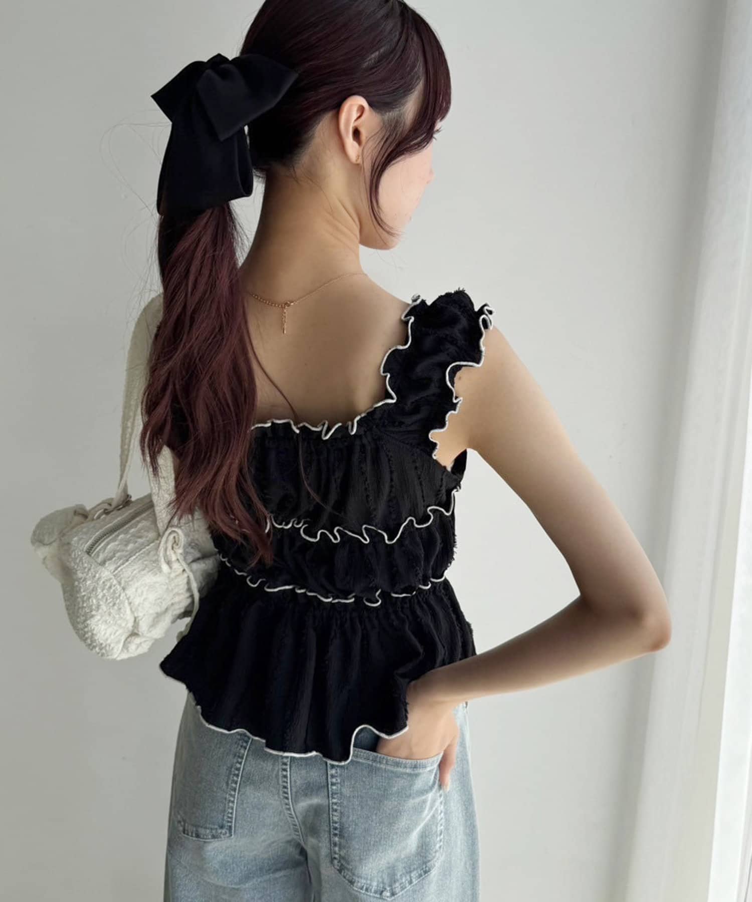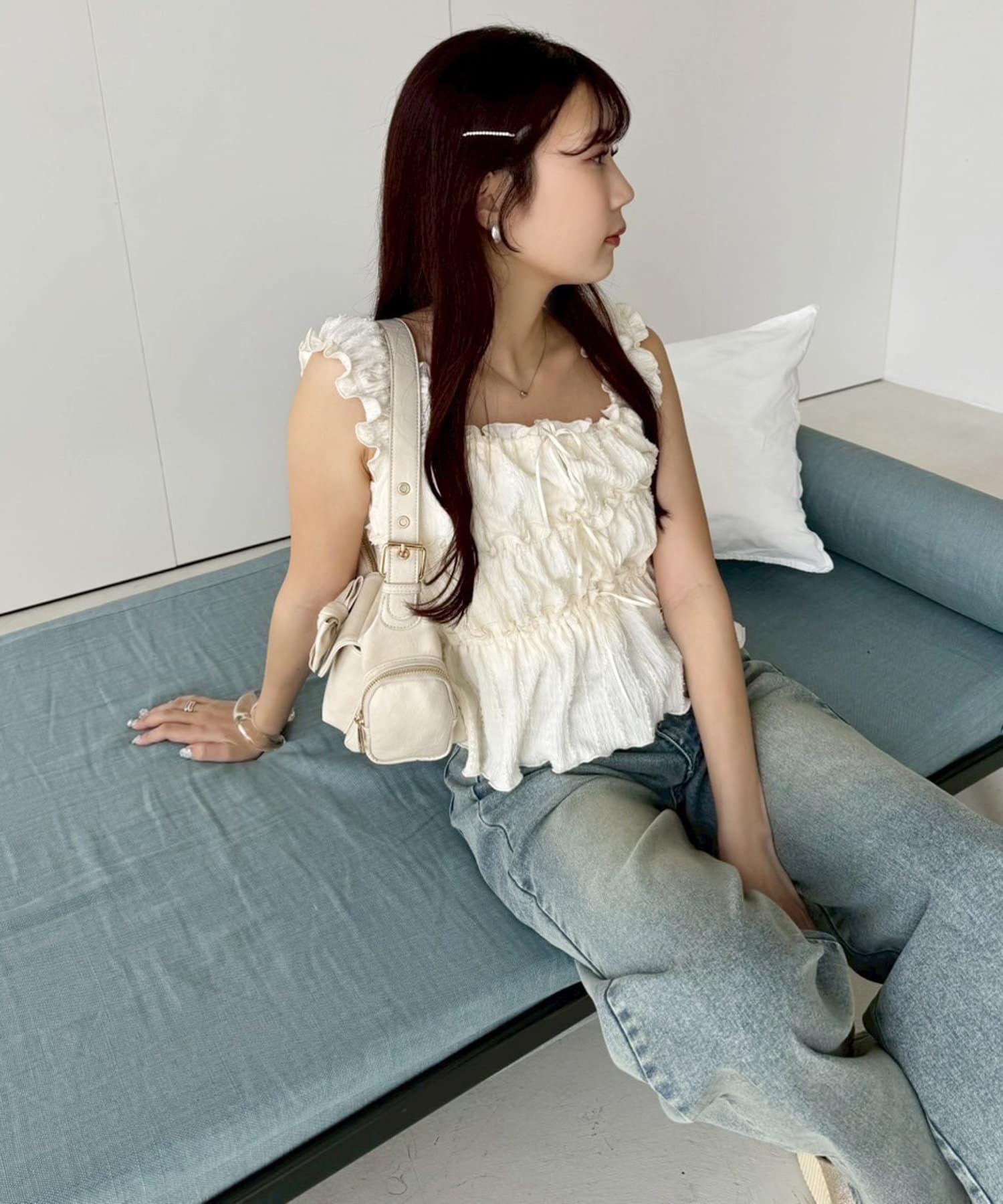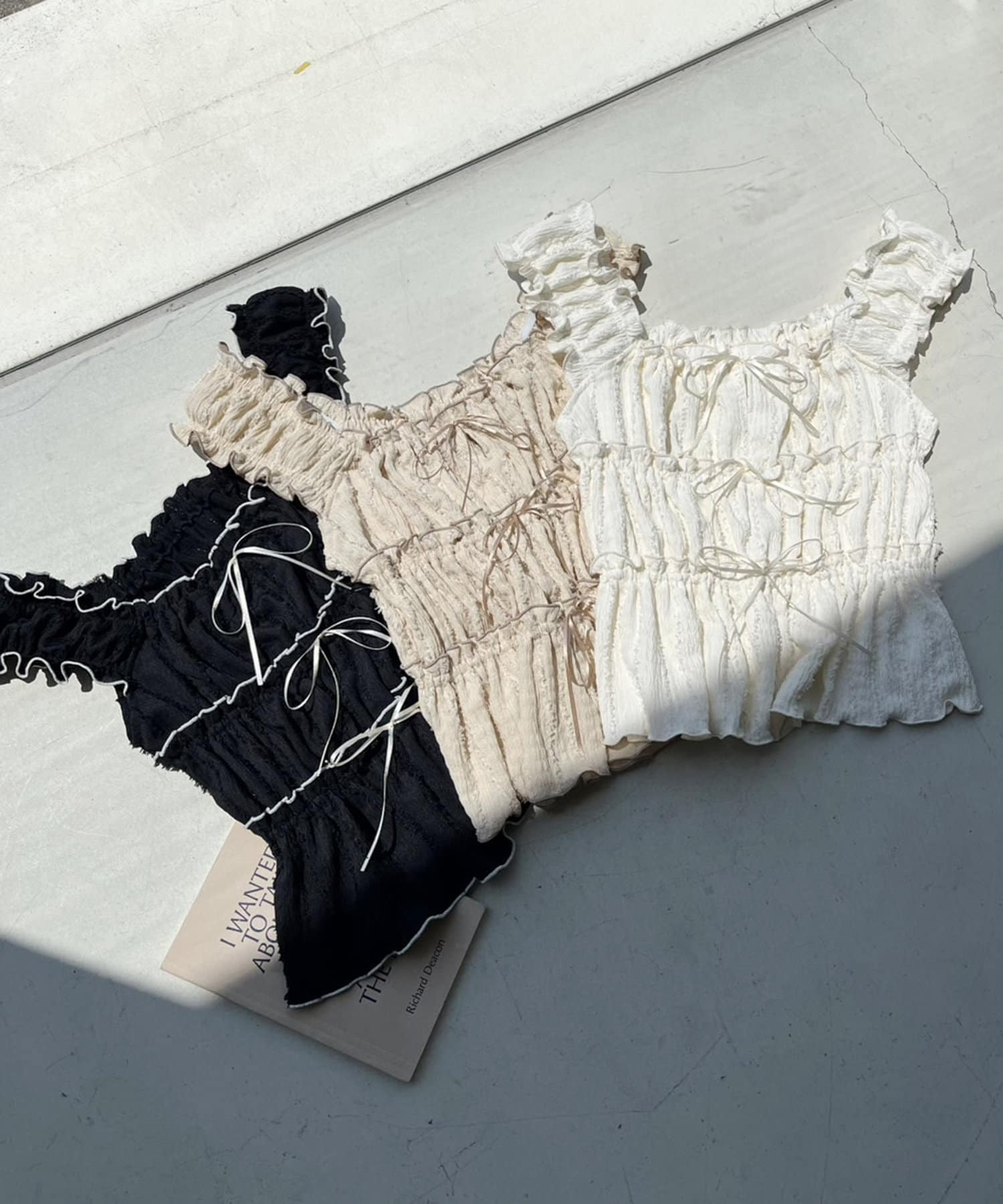1枚でコーデの主役に!リボンとフリルが可愛いビスチェ
