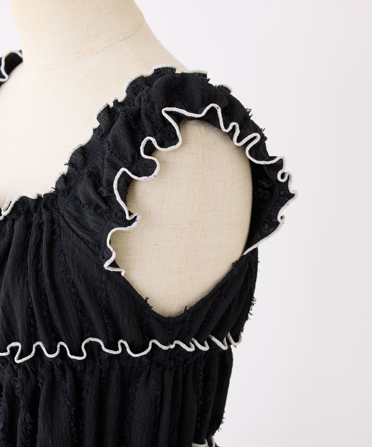 胸下とウエストはシャーリングデザインになっているので華奢見え効果も抜群◎