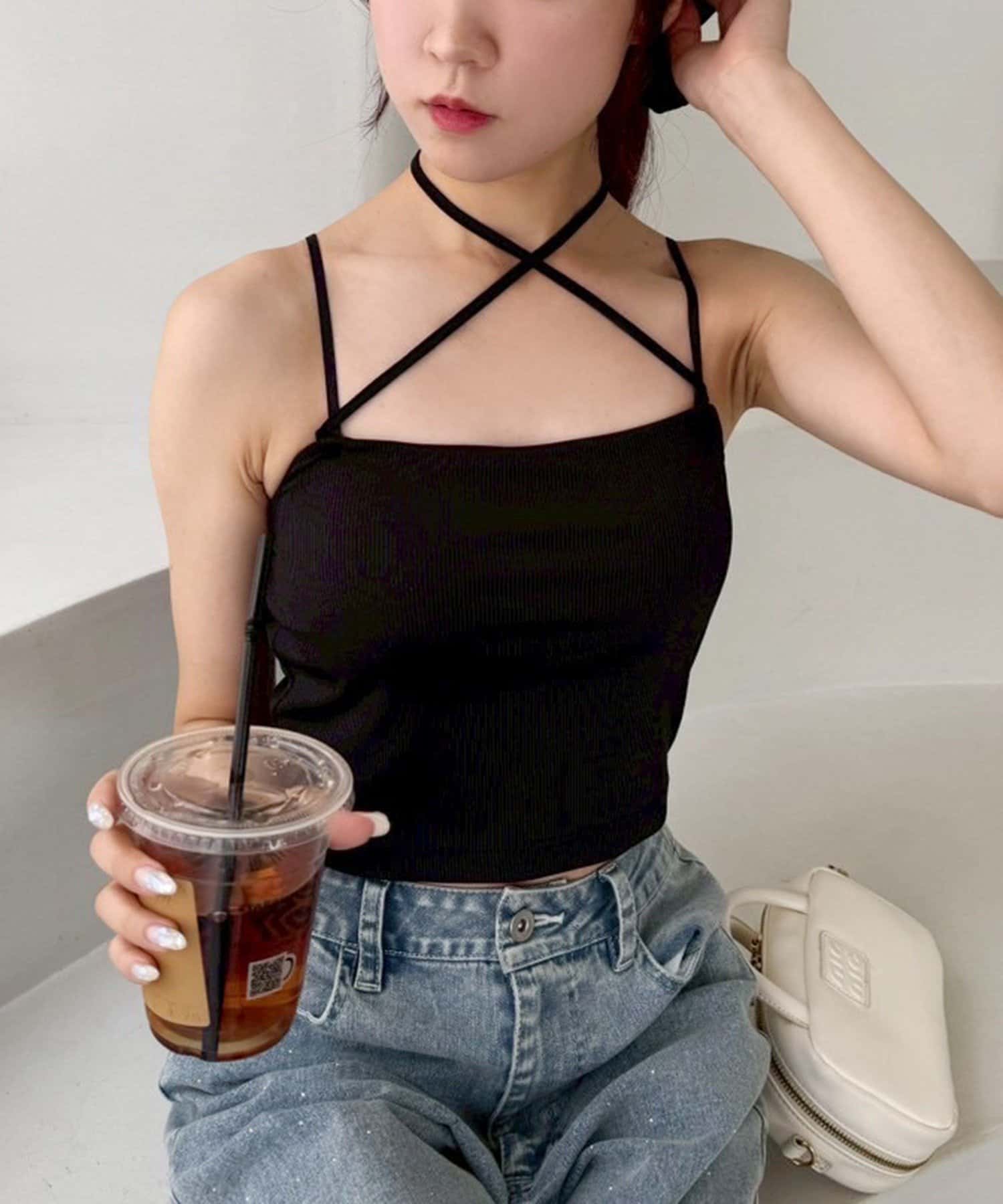 トレンド感のあるホルターデザインがポイントのカップ付きキャミソール