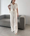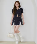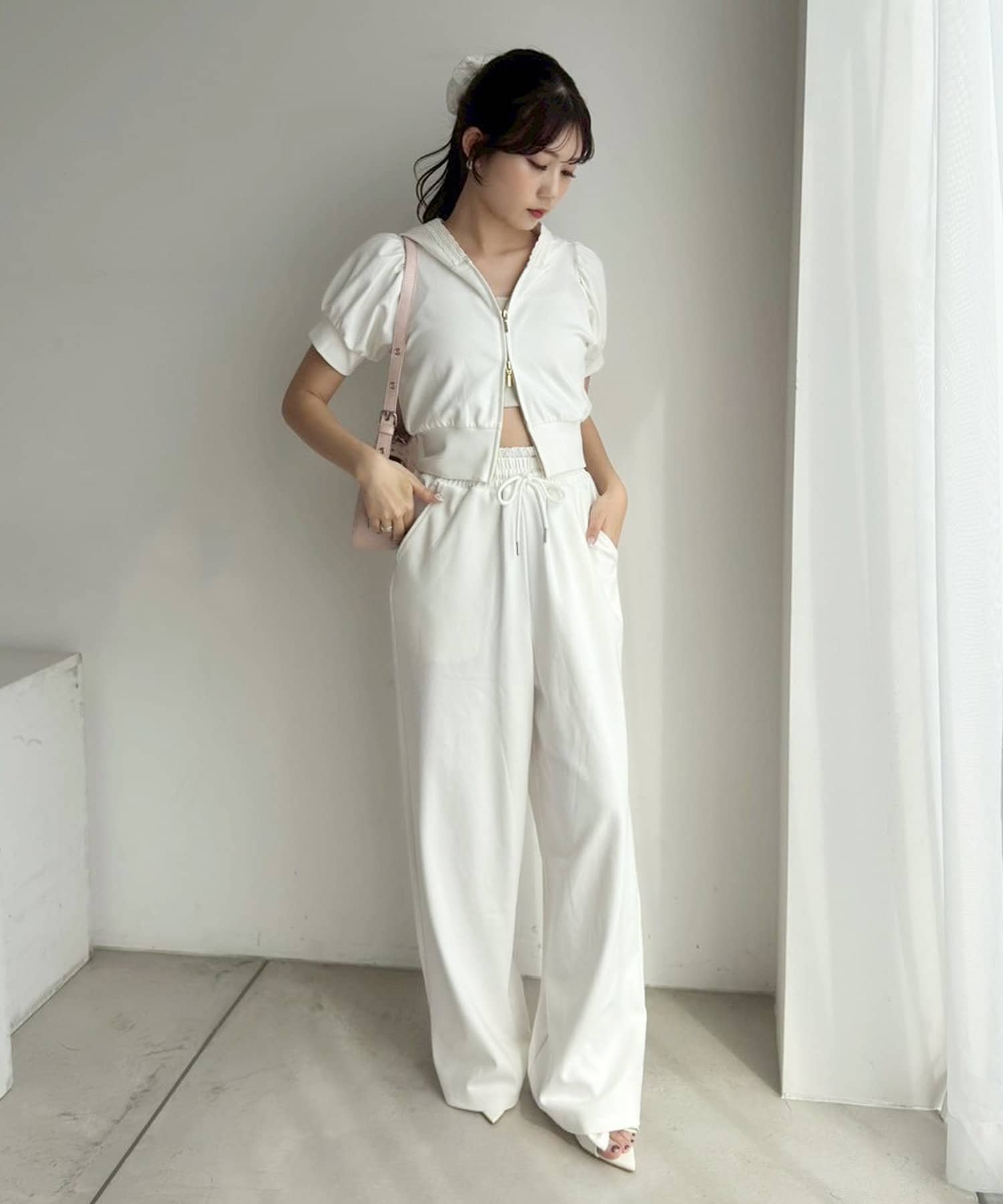 短めの丈感なので、ハイウエストのボトムスと合わせるとスタイルアップ効果も◎。
