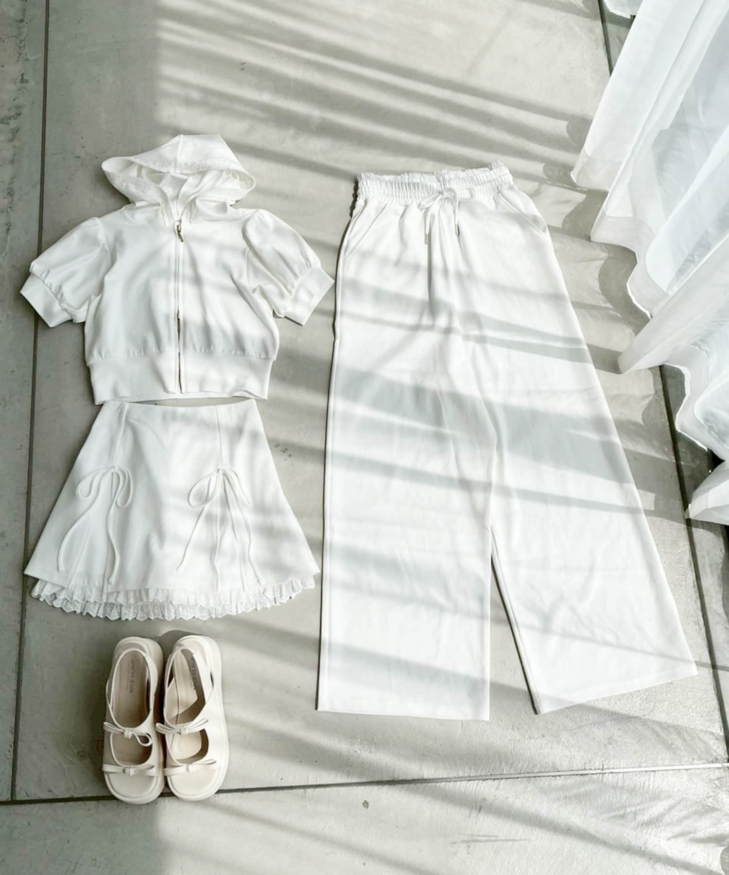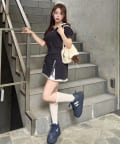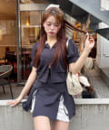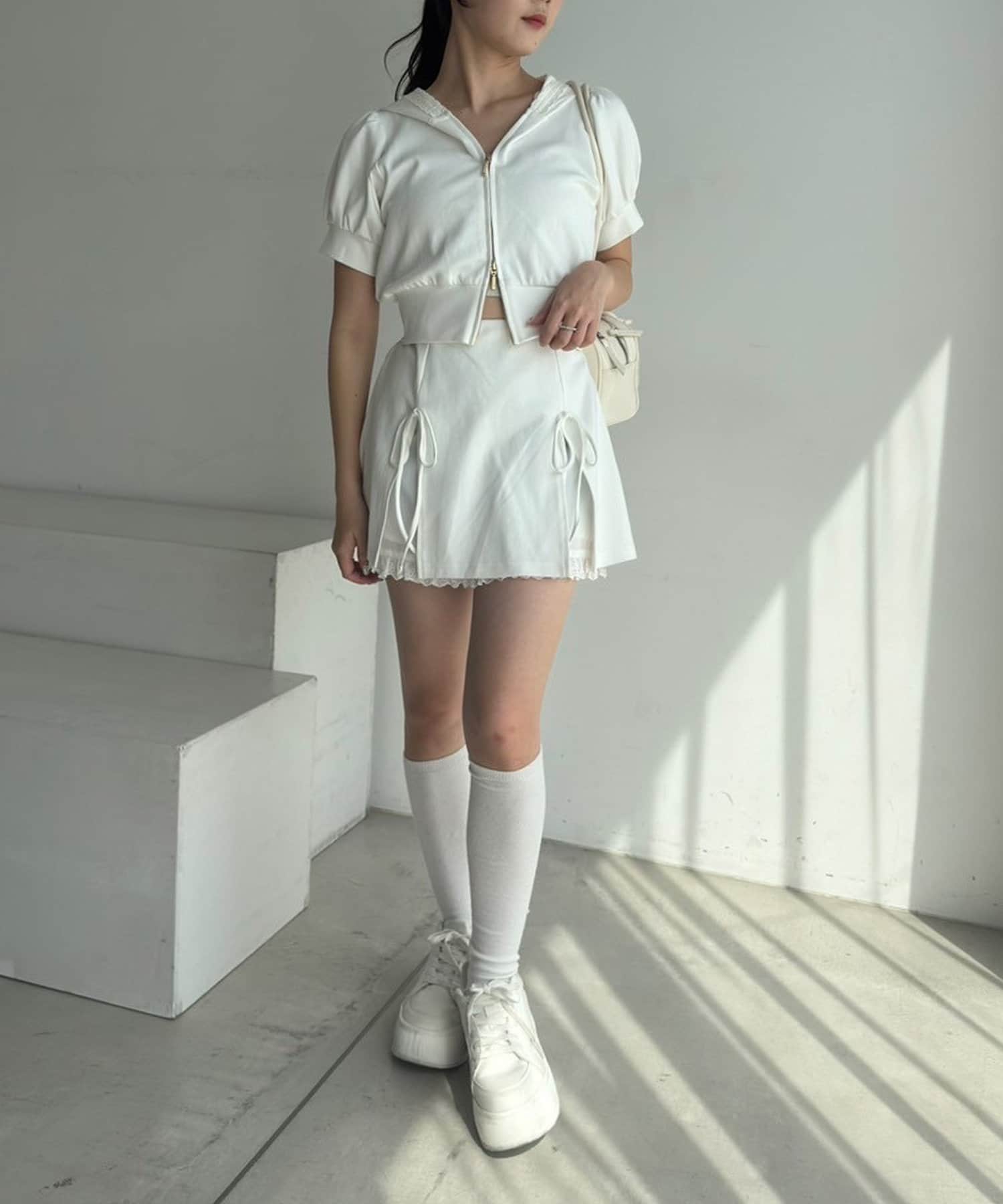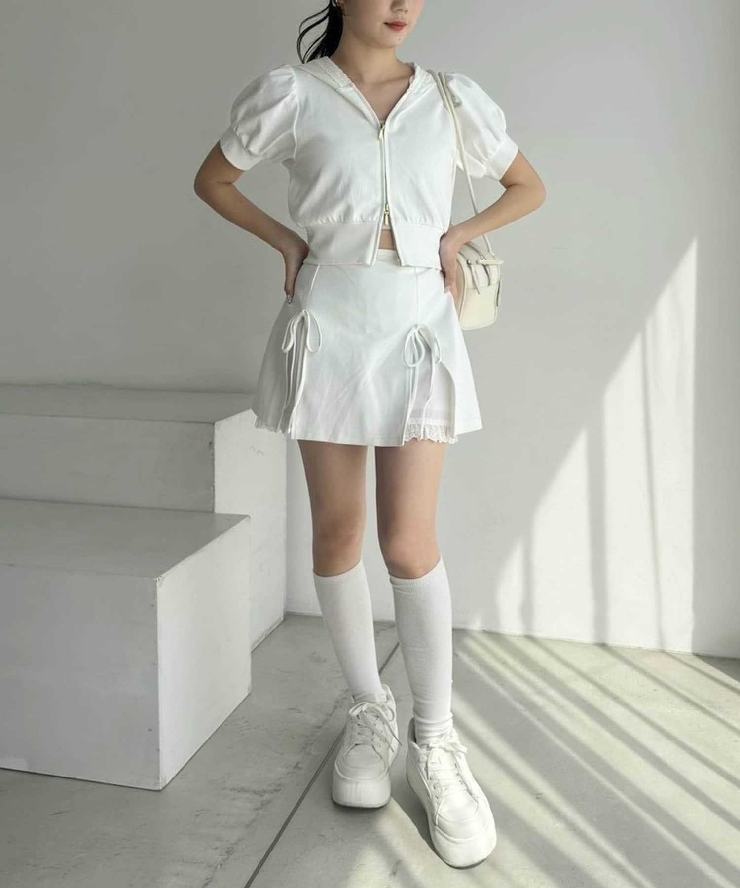ミニスカートやショートパンツと合わせて、ガーリーなスポーティースタイルに