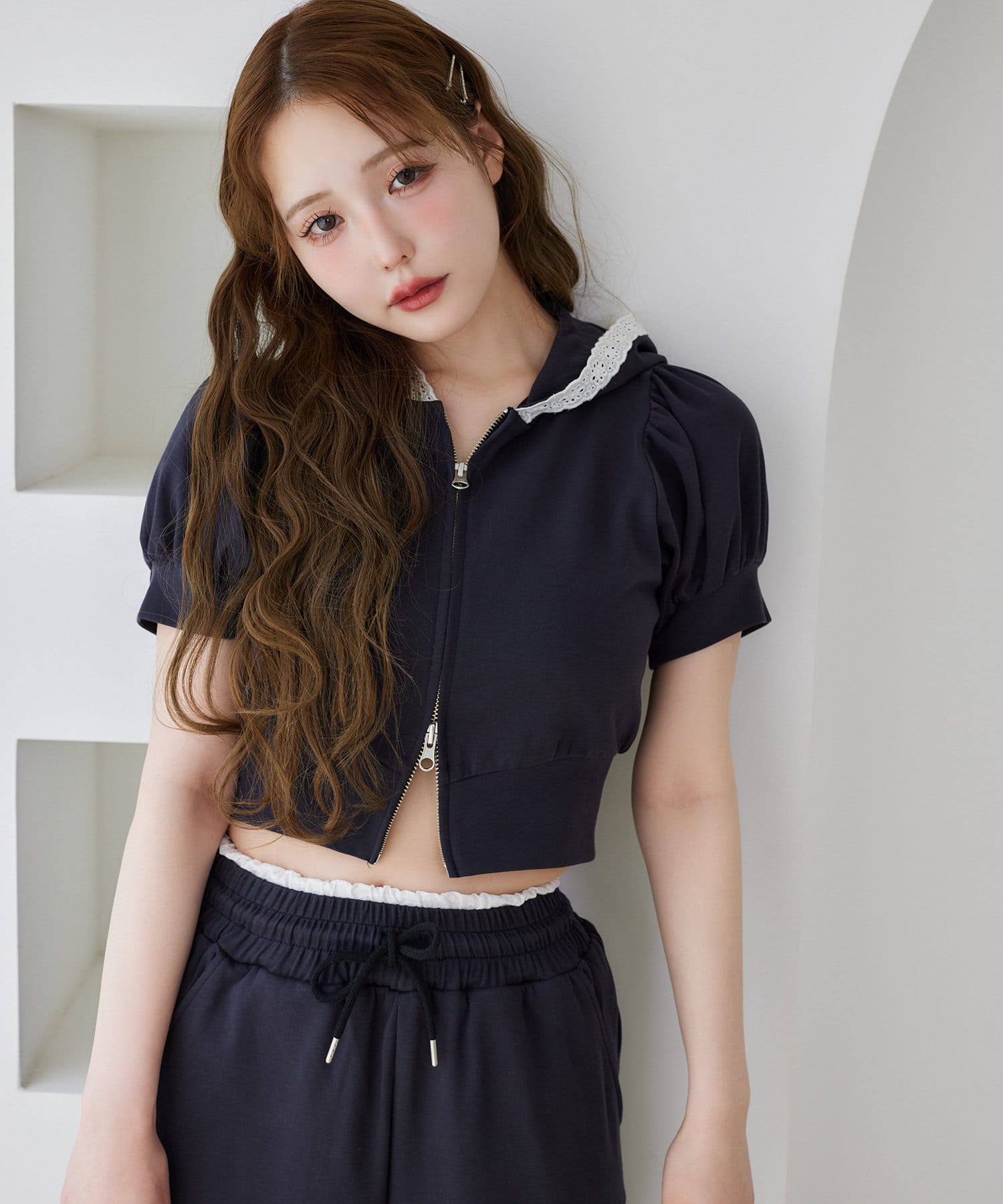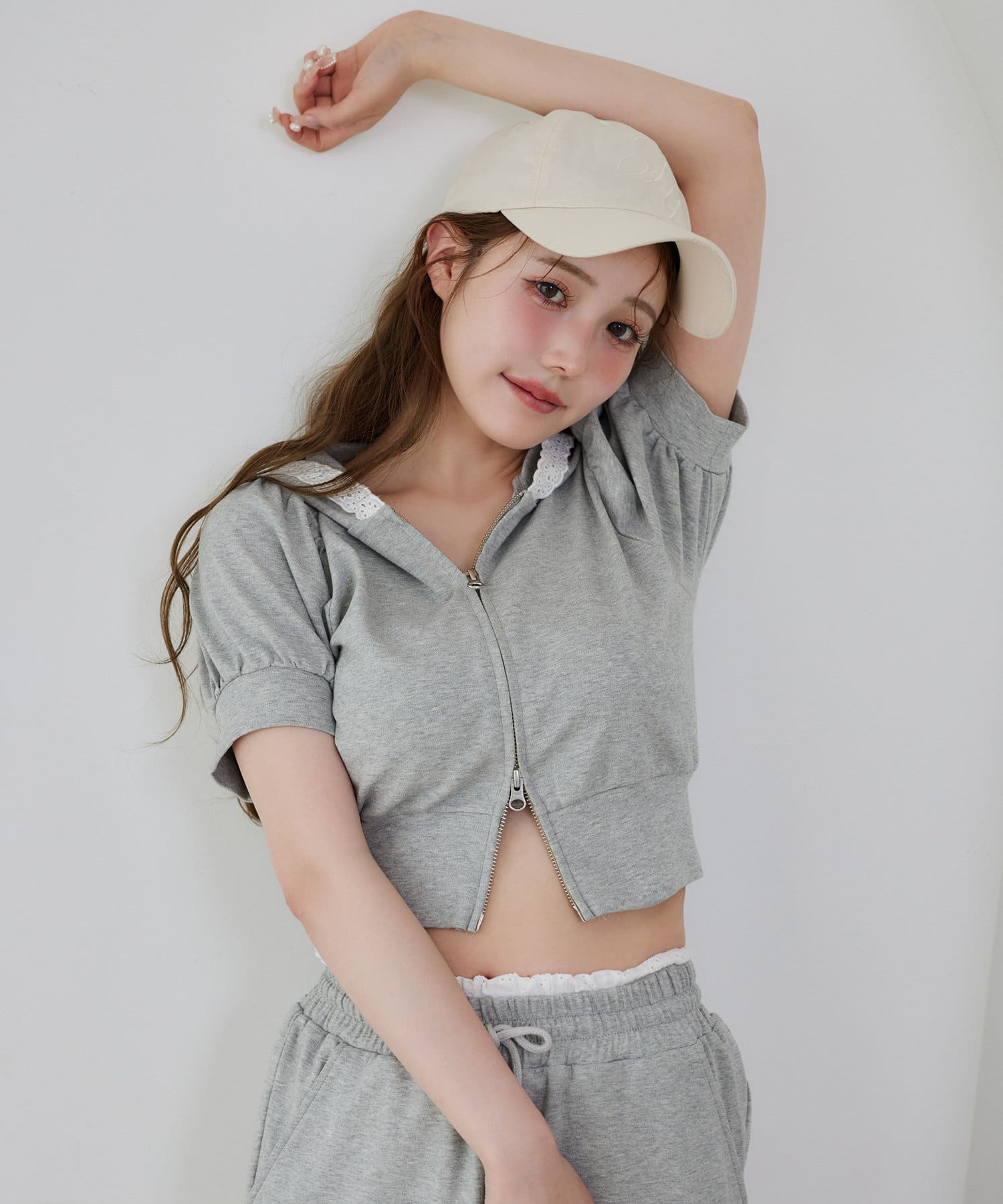 カジュアルながらもガーリーな雰囲気を演出できる、ショート丈の半袖パーカーが登場!