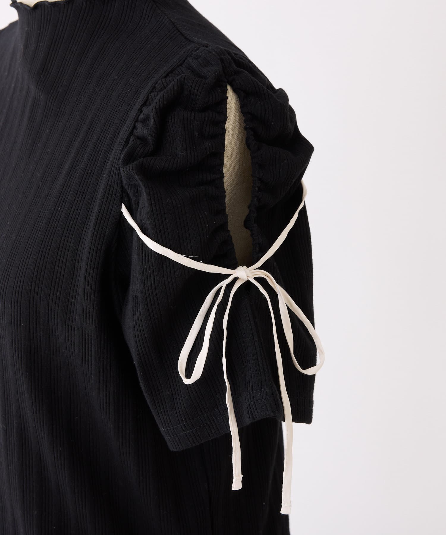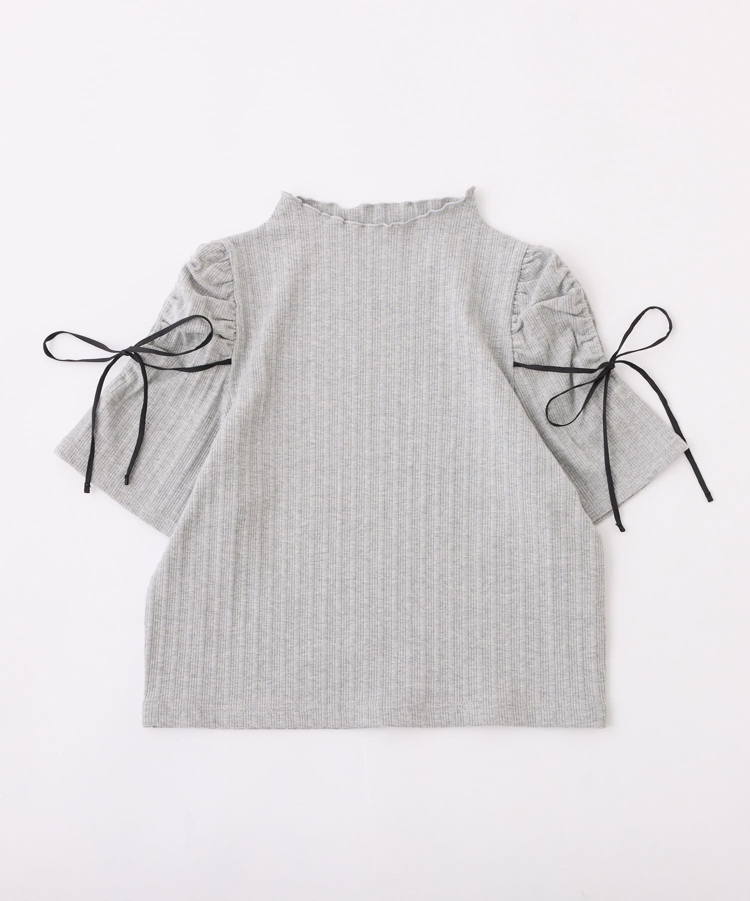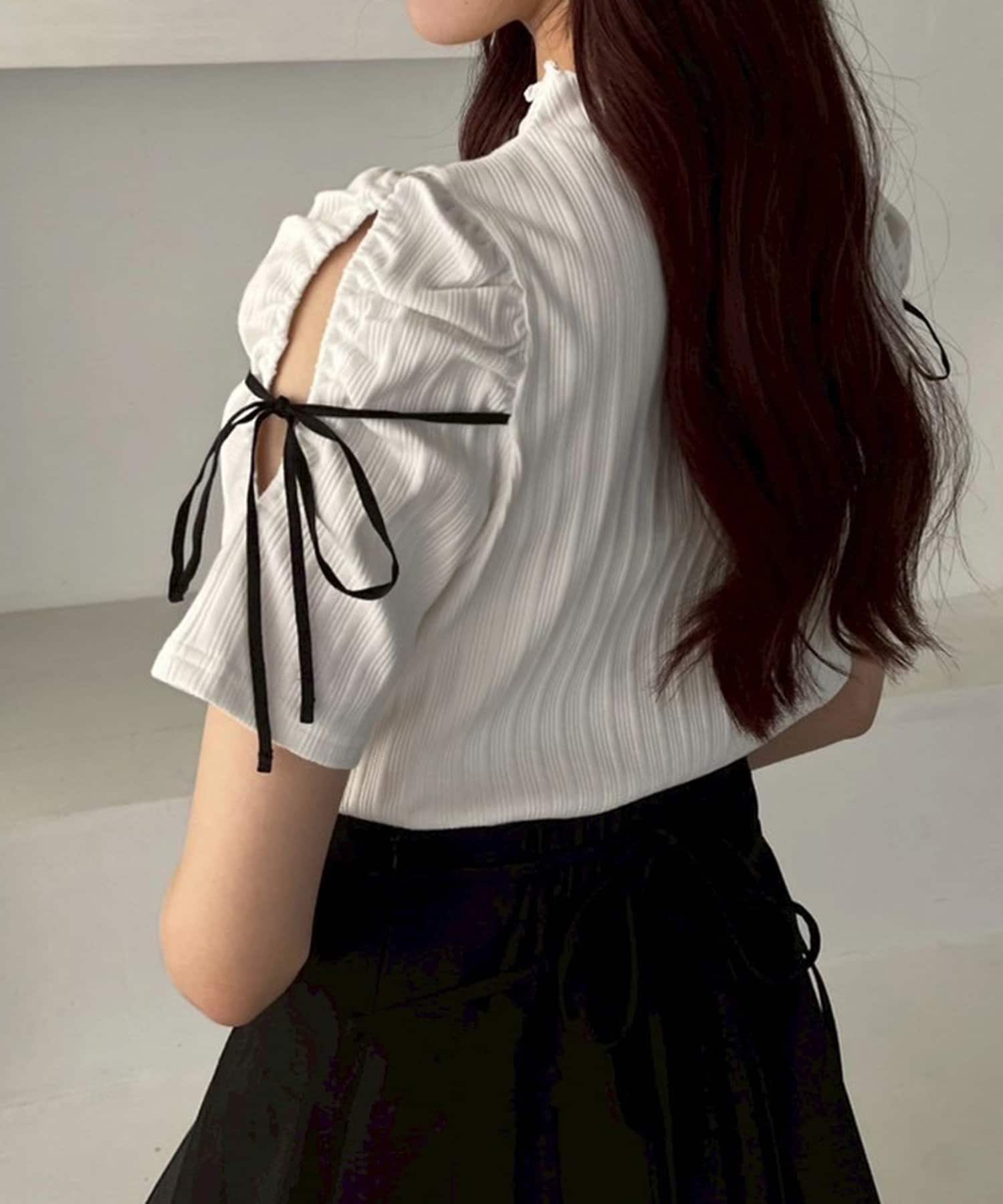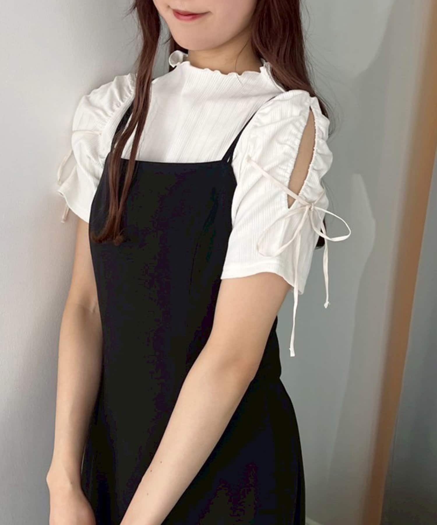 袖にスリットとリボンをあしらったプチハイネックインナー