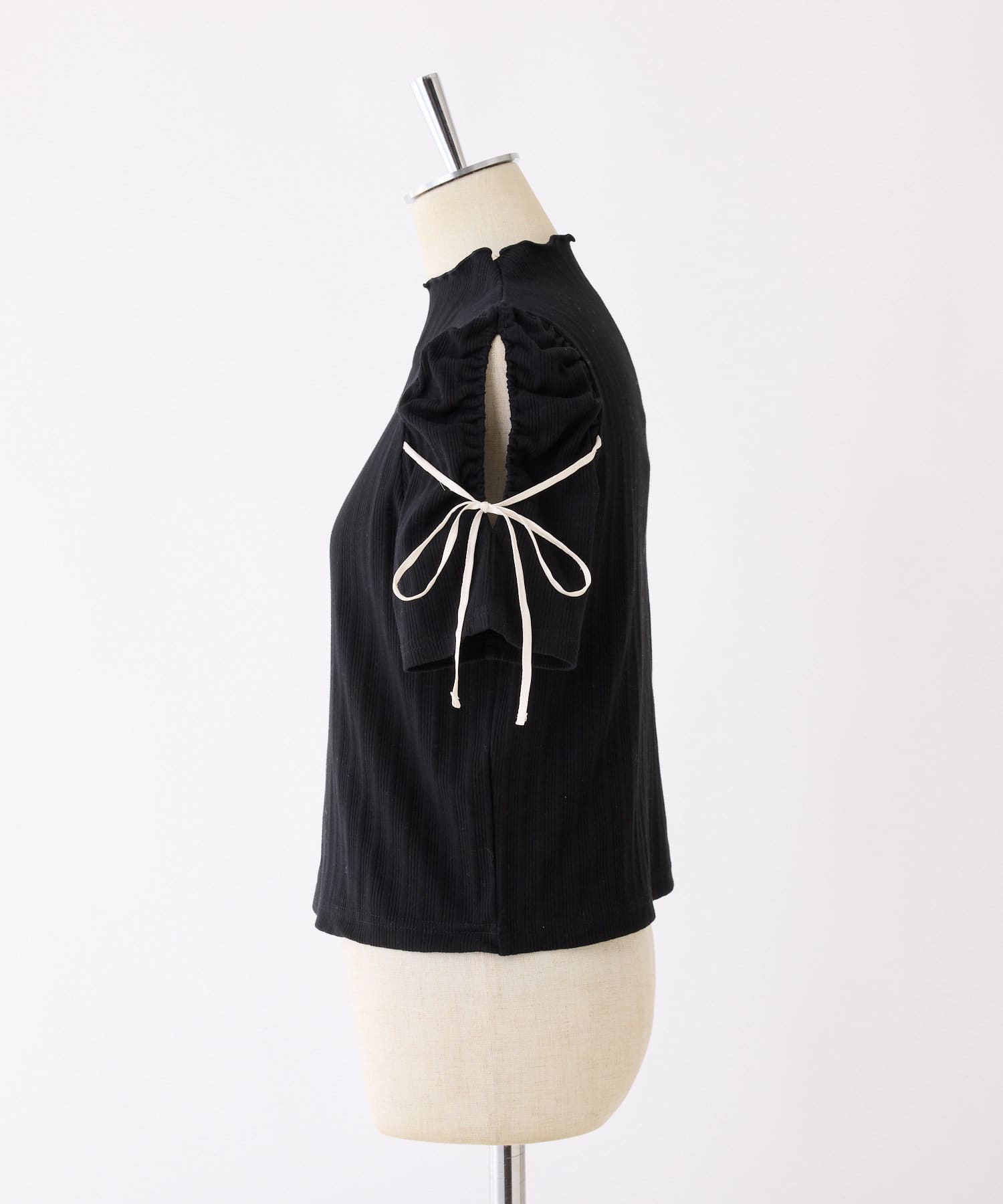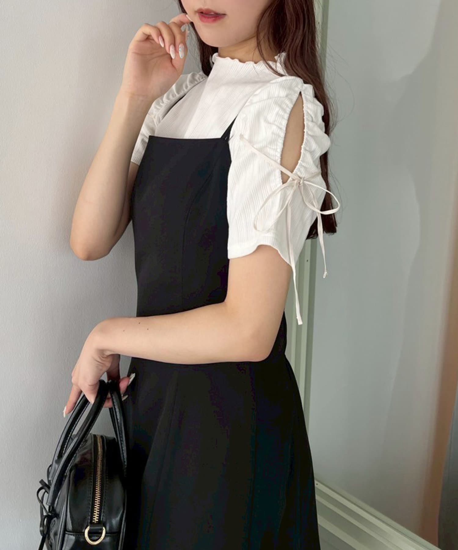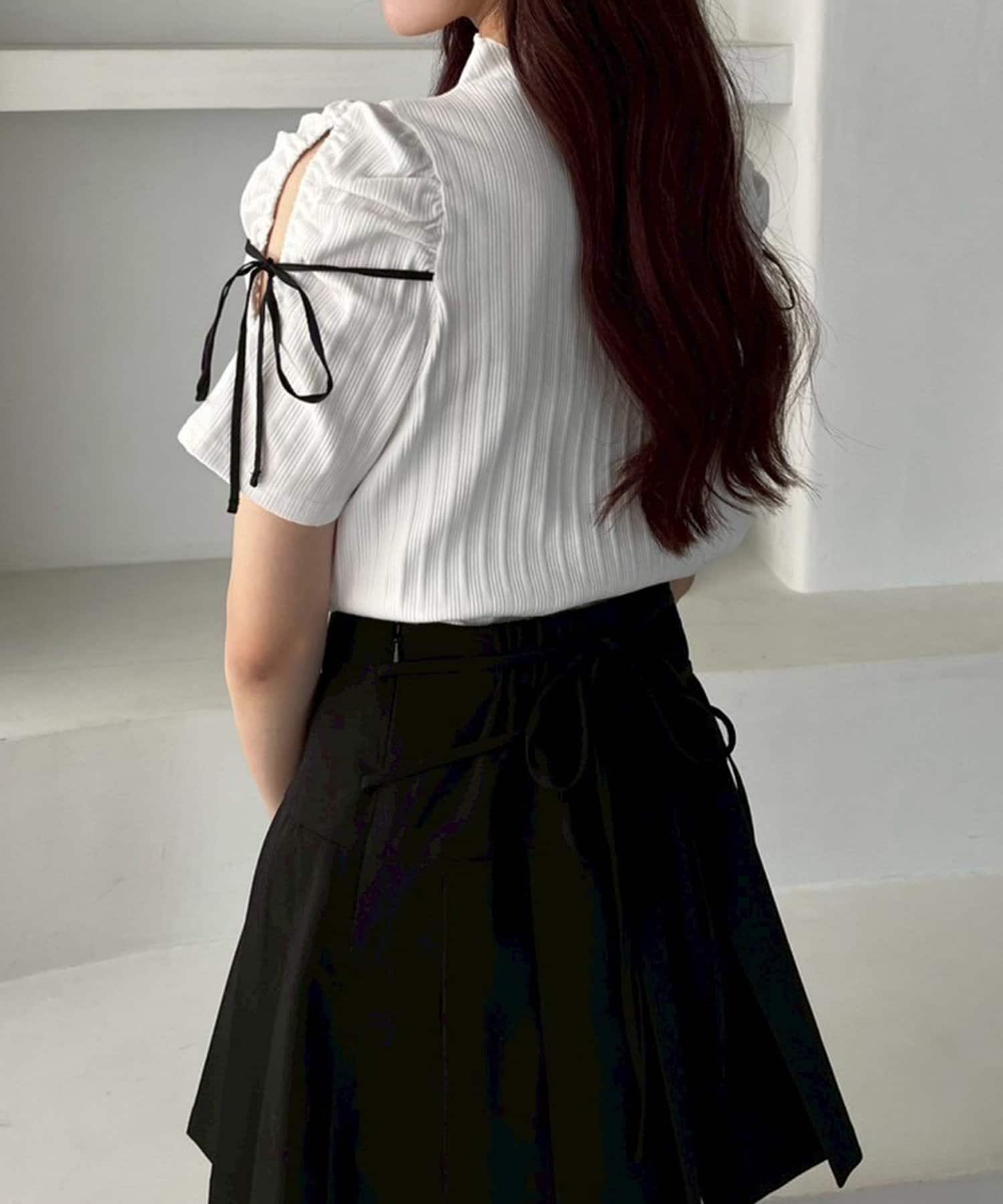袖にスリットとリボンをあしらったプチハイネックインナー
