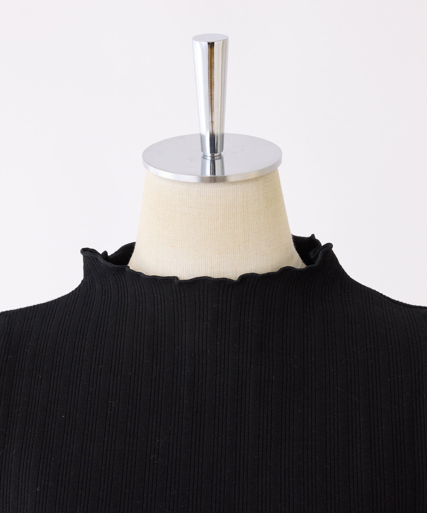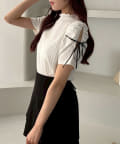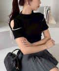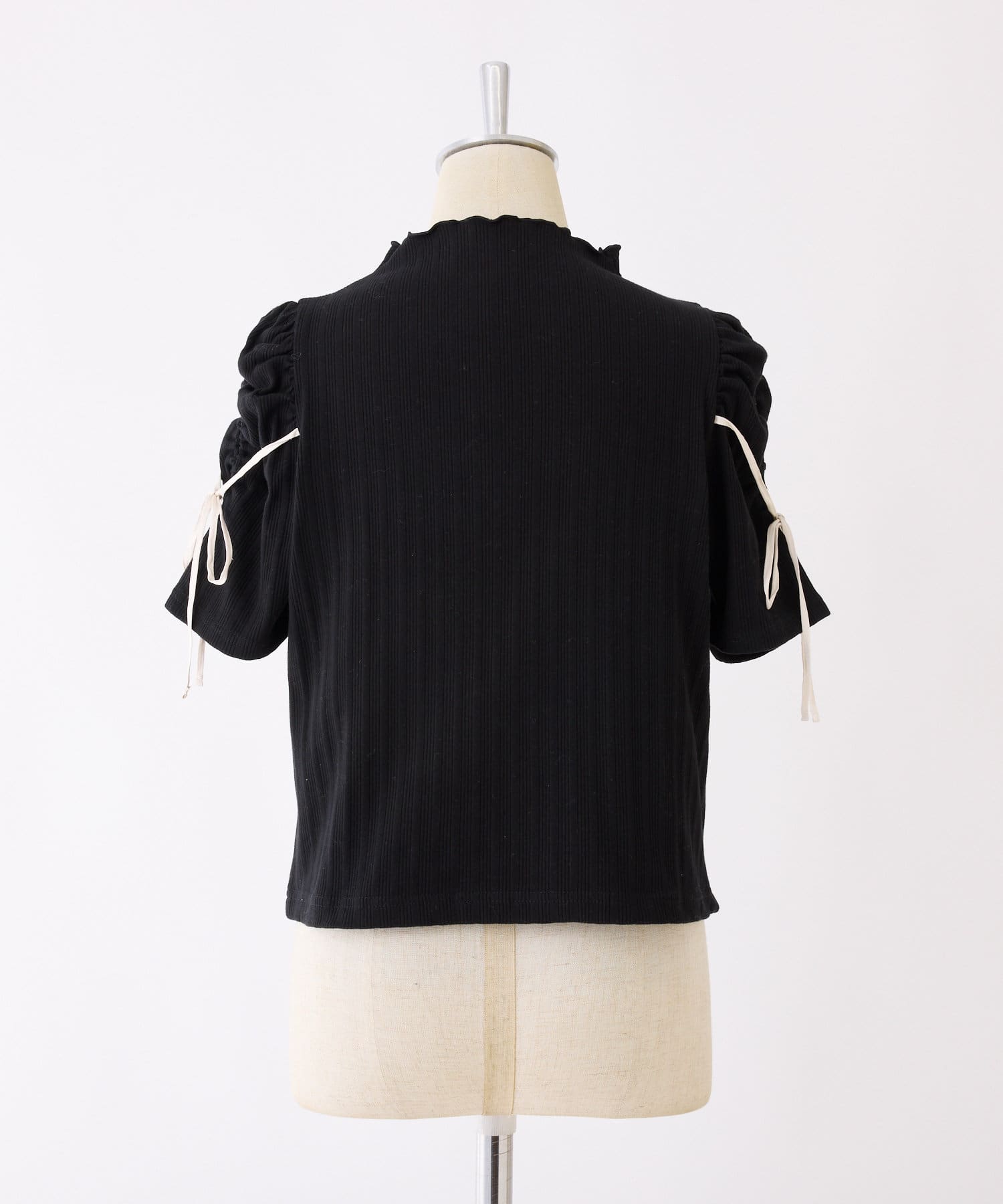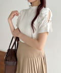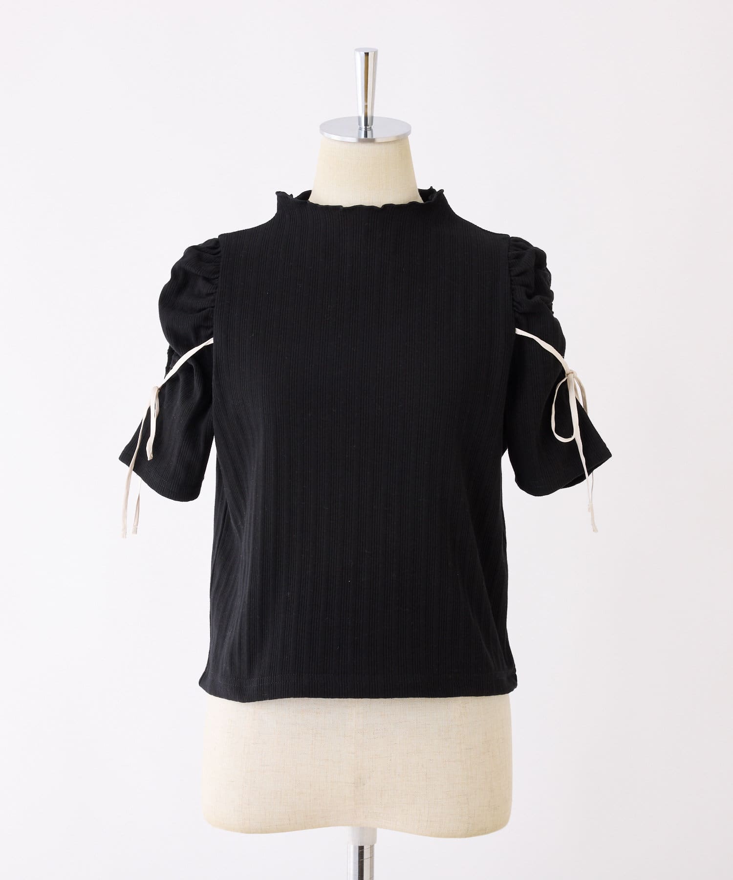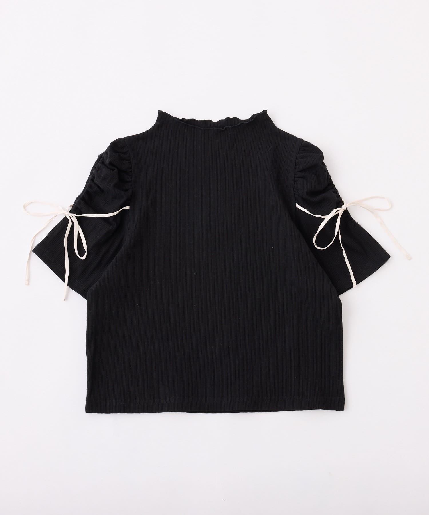 袖にスリットとリボンをあしらったプチハイネックインナー