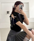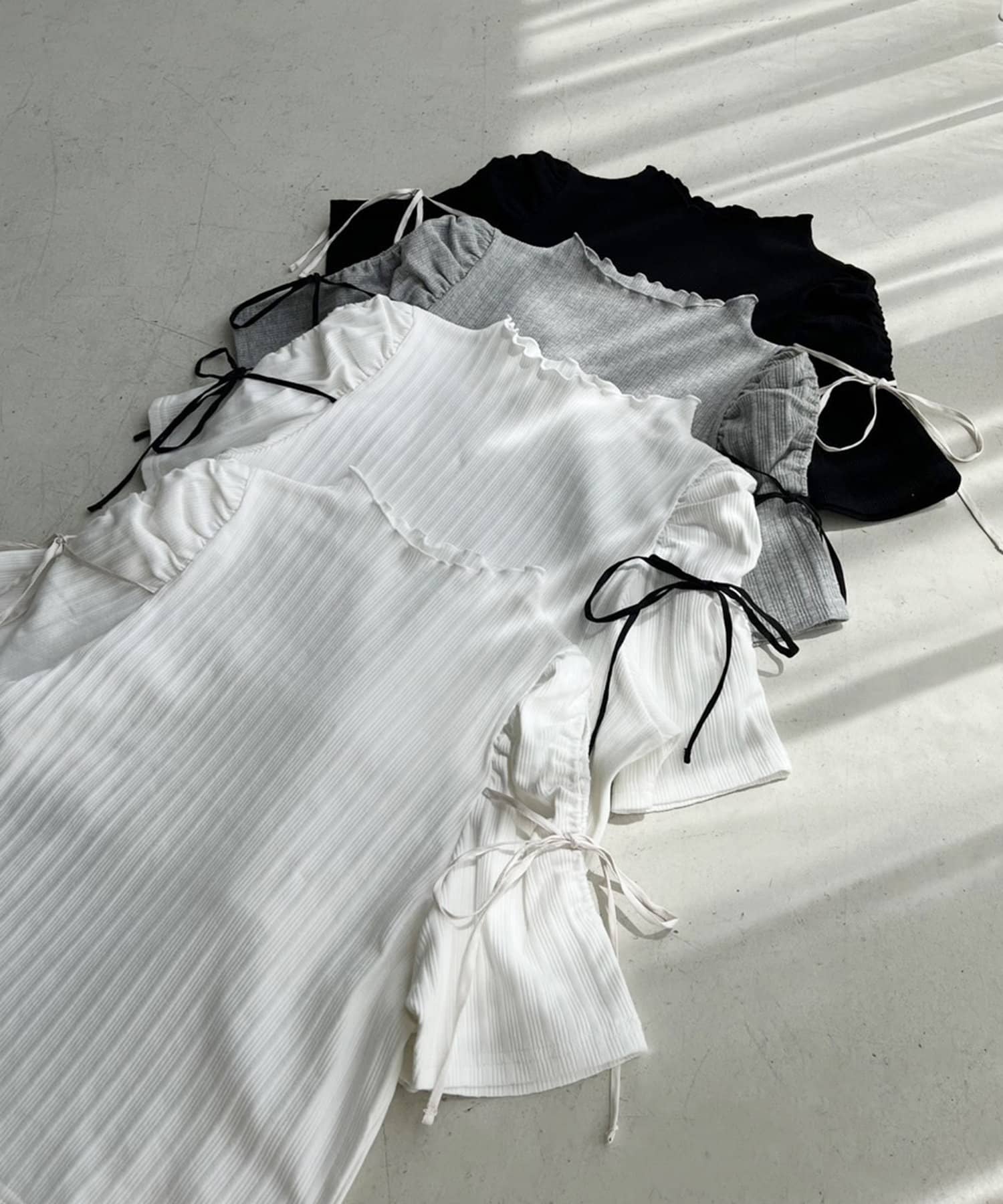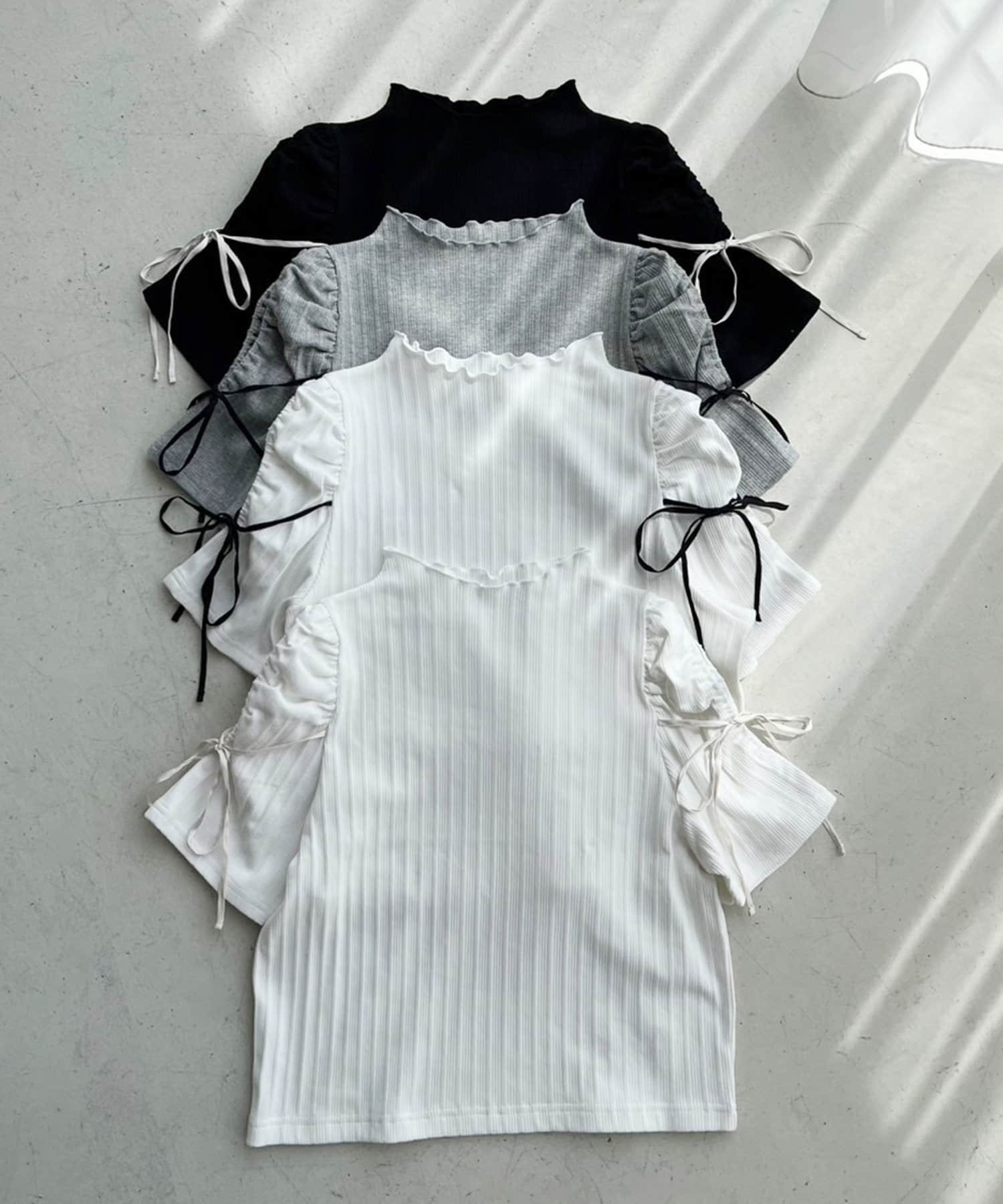 肩あきリボンテレコトップス