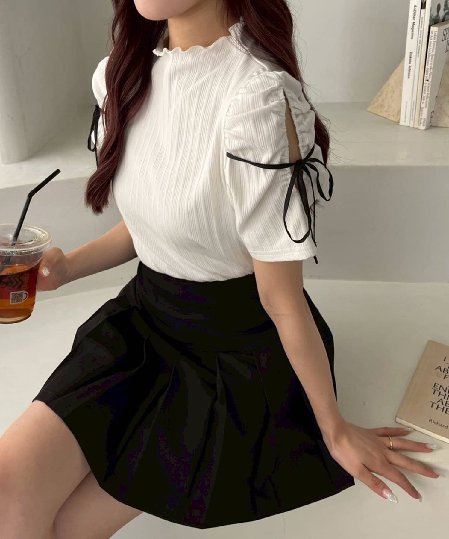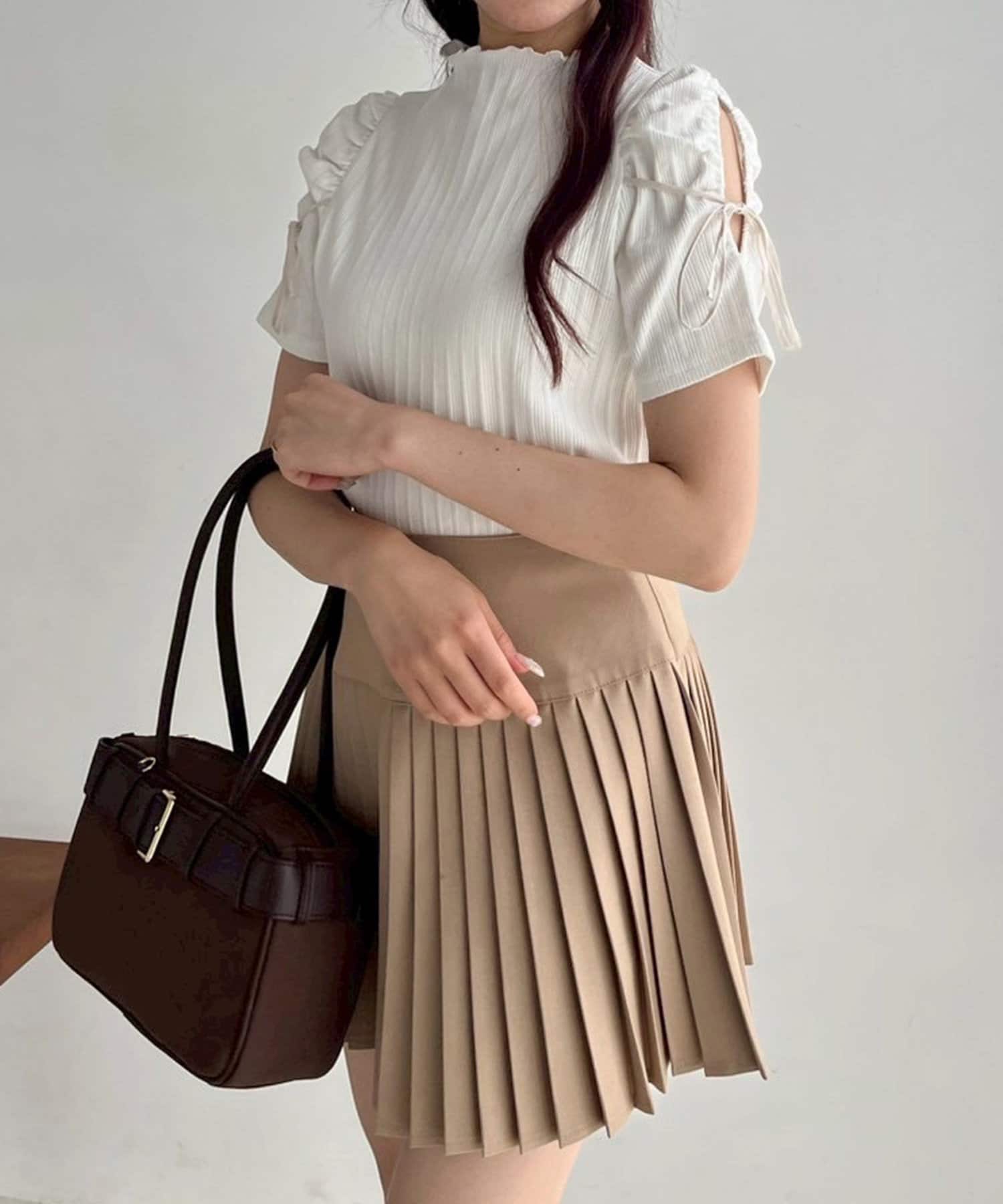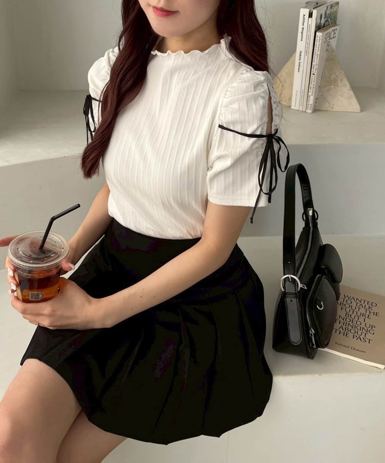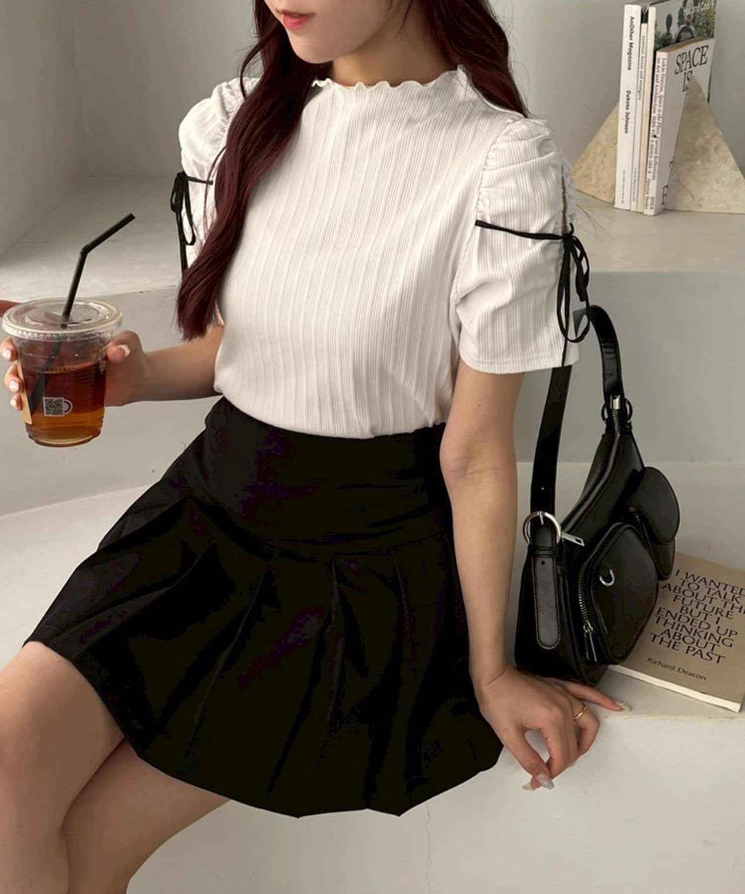 リボンが可愛らしいアイテムなので、ミニボトムとの合わせがオススメ!