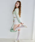 フレアスカートと合わせて甘めに仕上げれば、フェミニンムードたっぷりのコーデに。