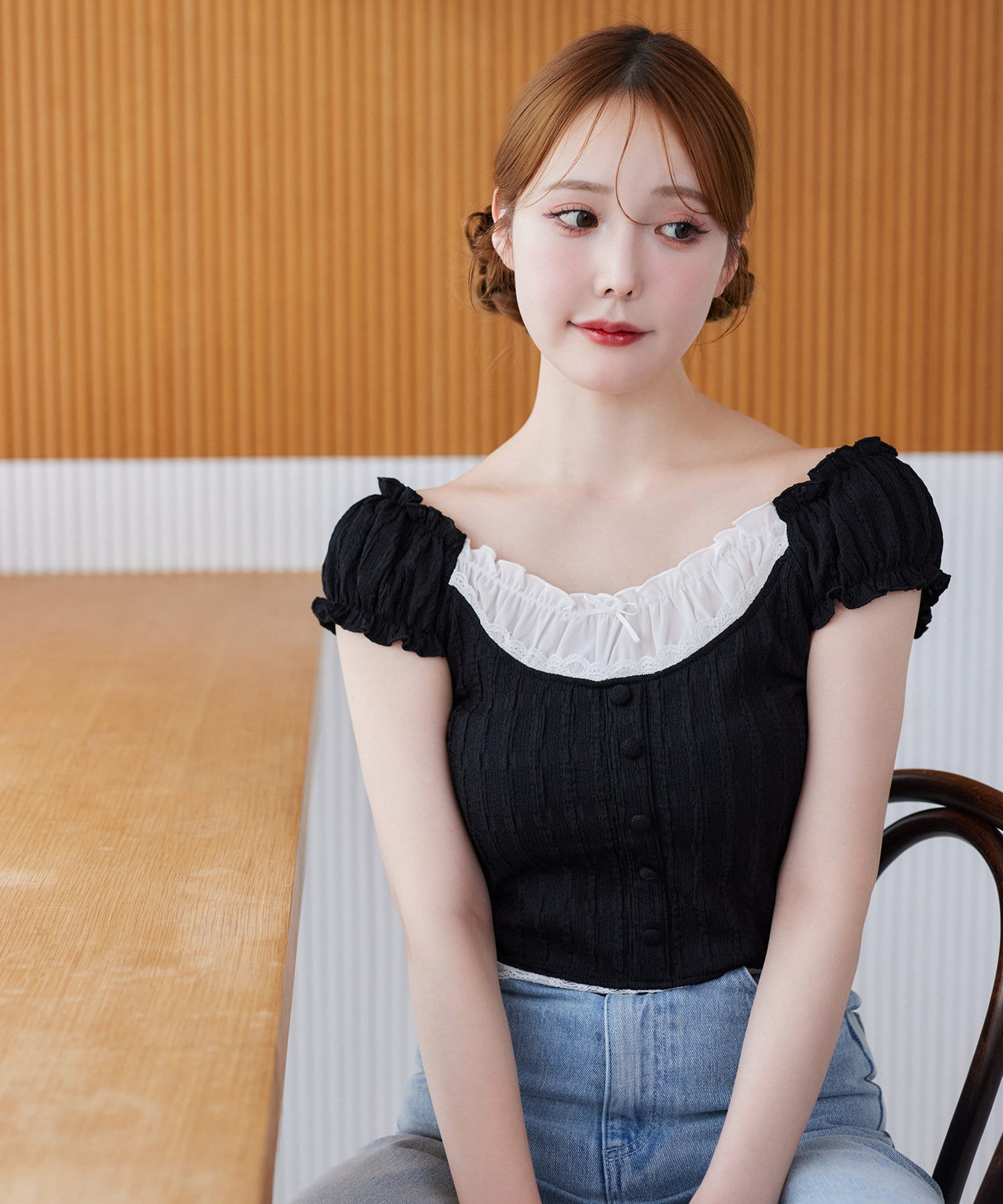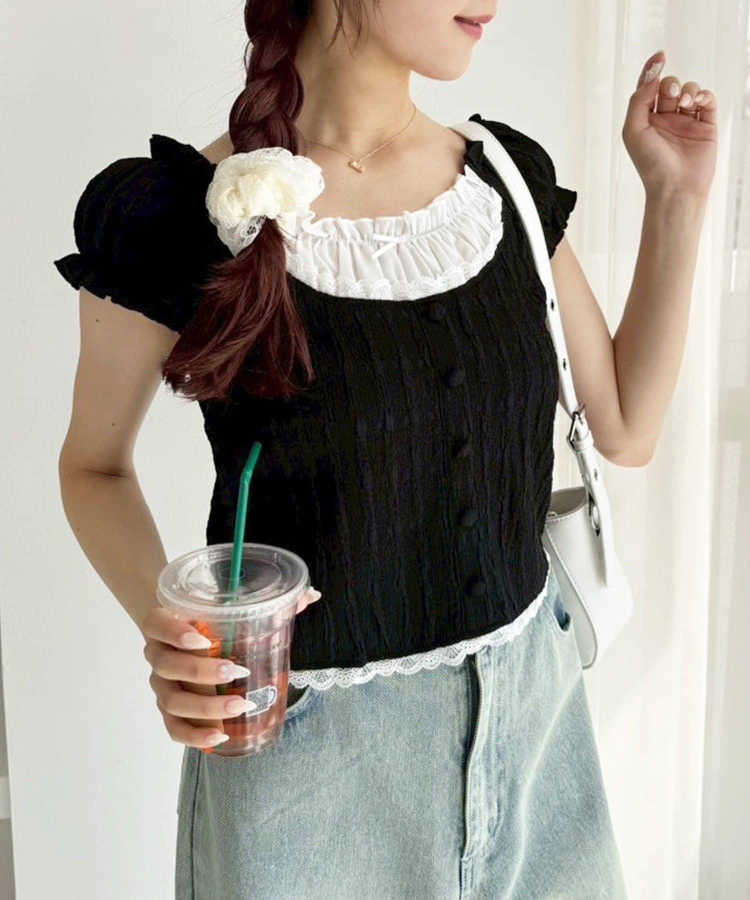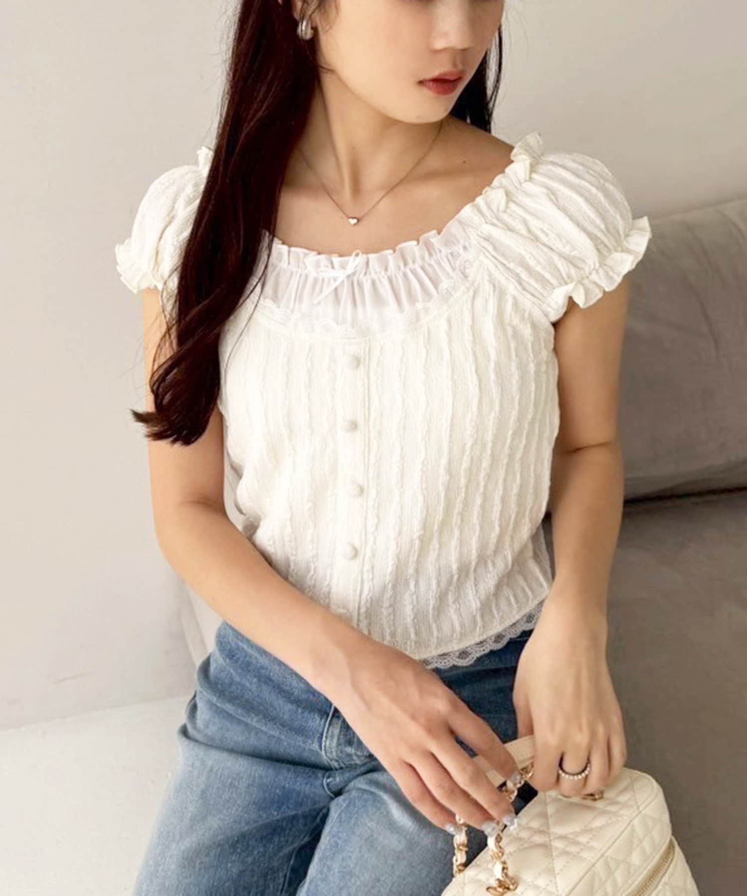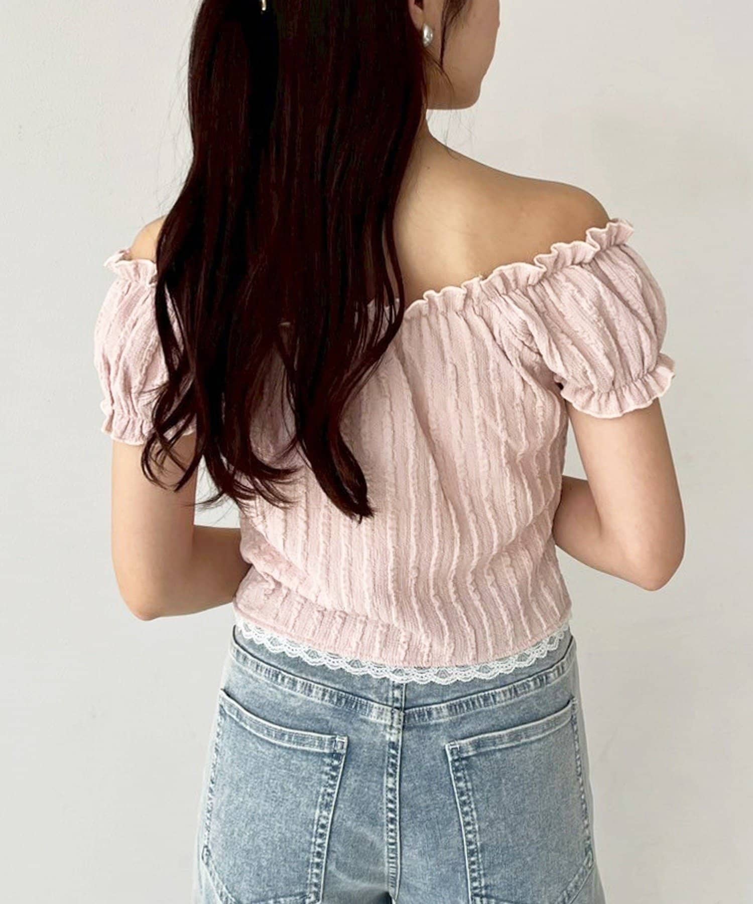 ショルダー部分はゴム仕様で、オフショルとしても着られる2WAYデザイン。
