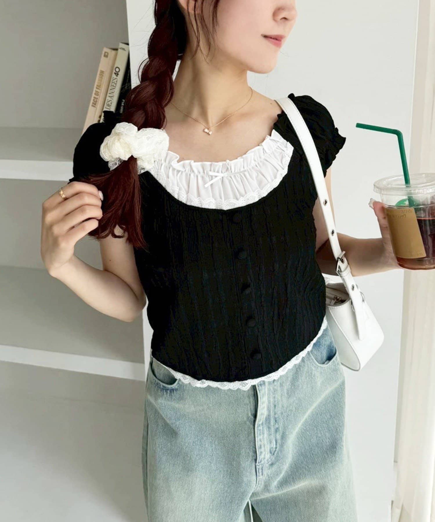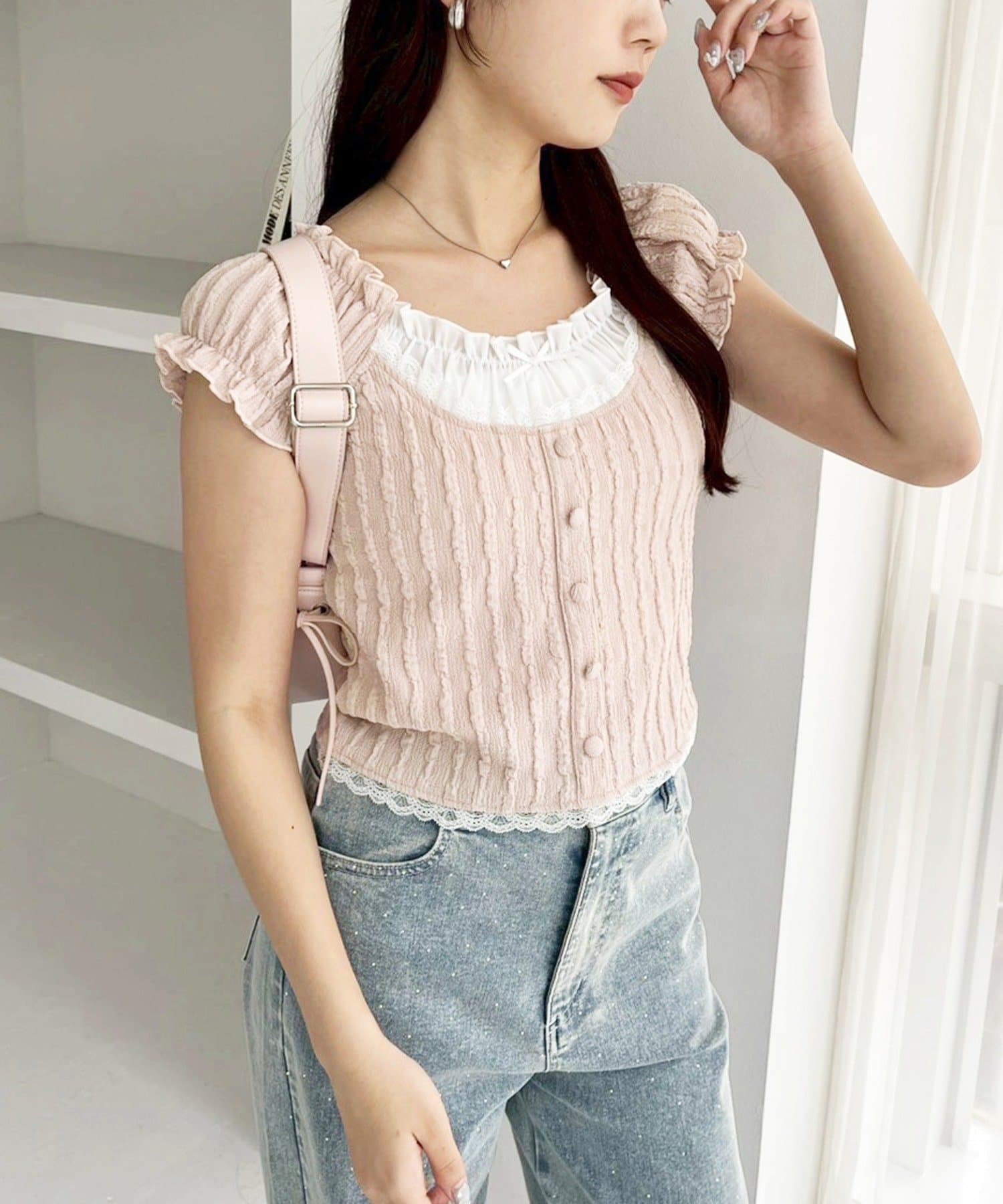 レイヤード風裾レーストップス