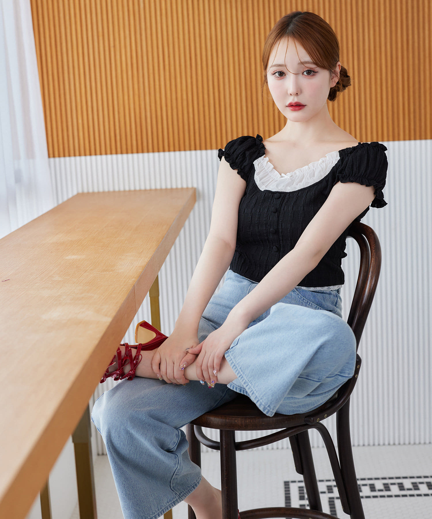 ふんわりとした袖がフェミニンな印象をプラスし、トレンド感のある着こなしが叶います。