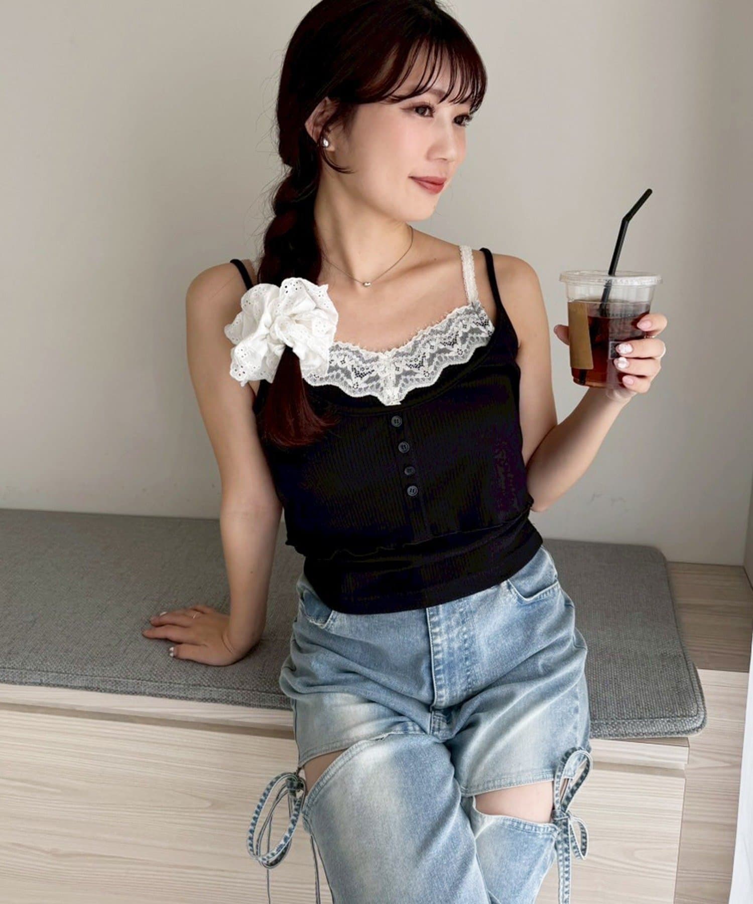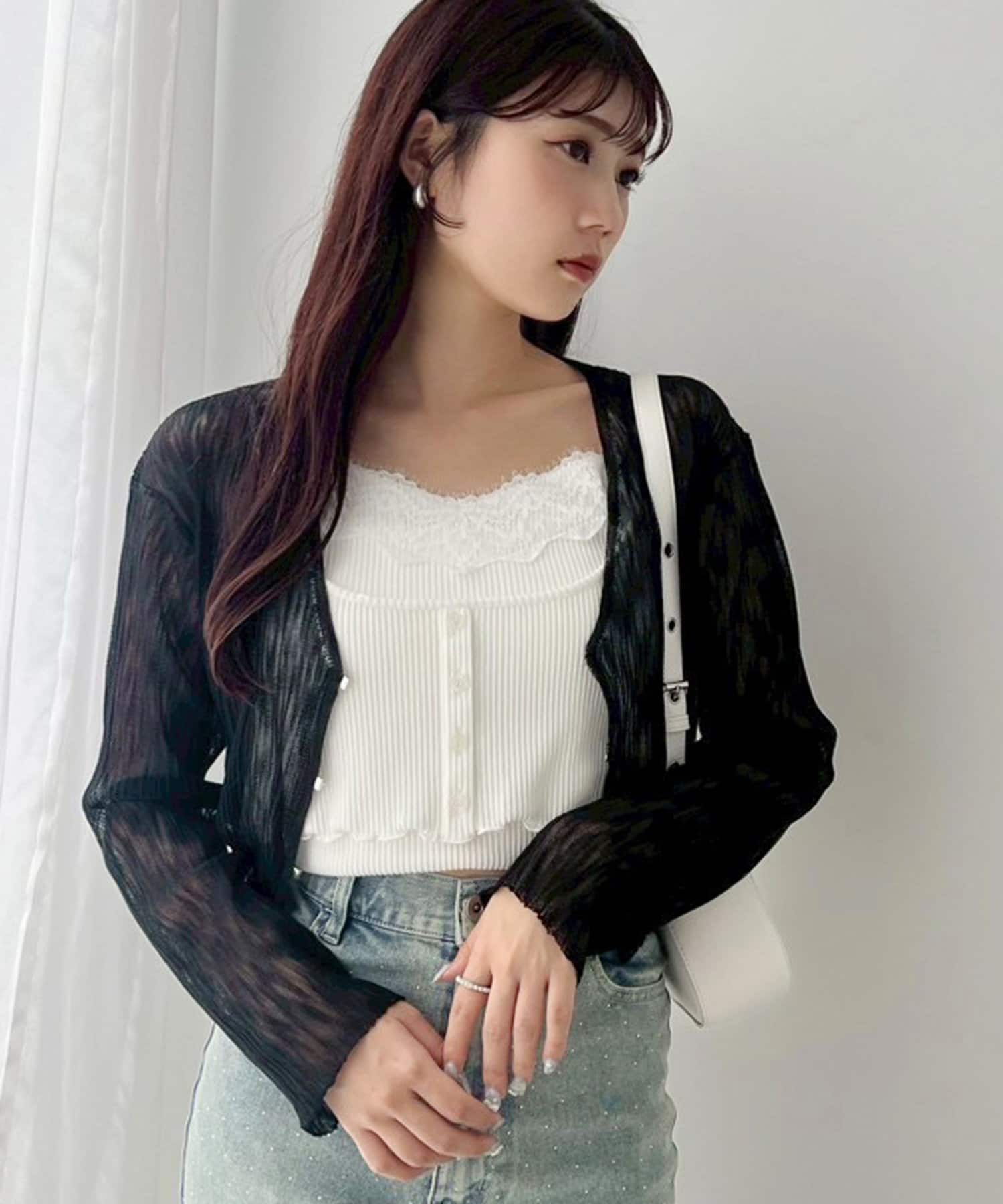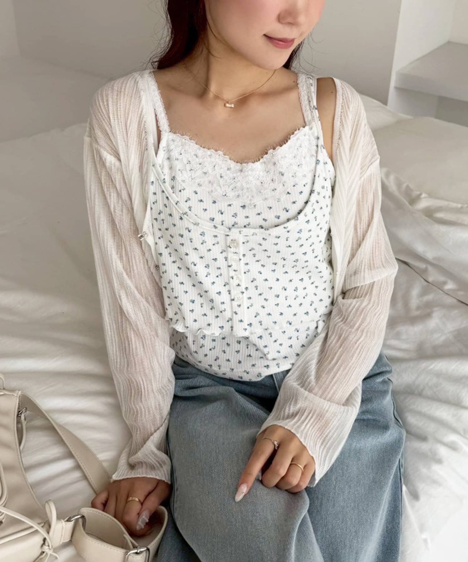 シアートップスに合わせて見せインナーとしてもオススメです。