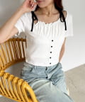 伸縮性の良いリブトップスで着心地も抜群。