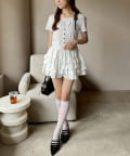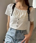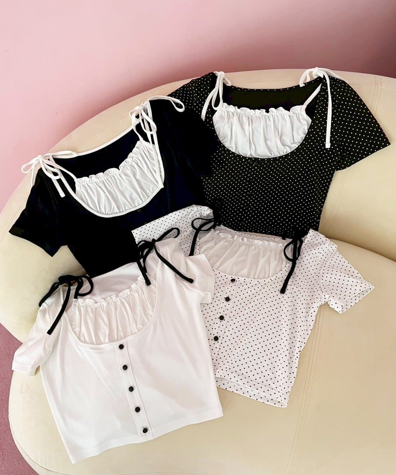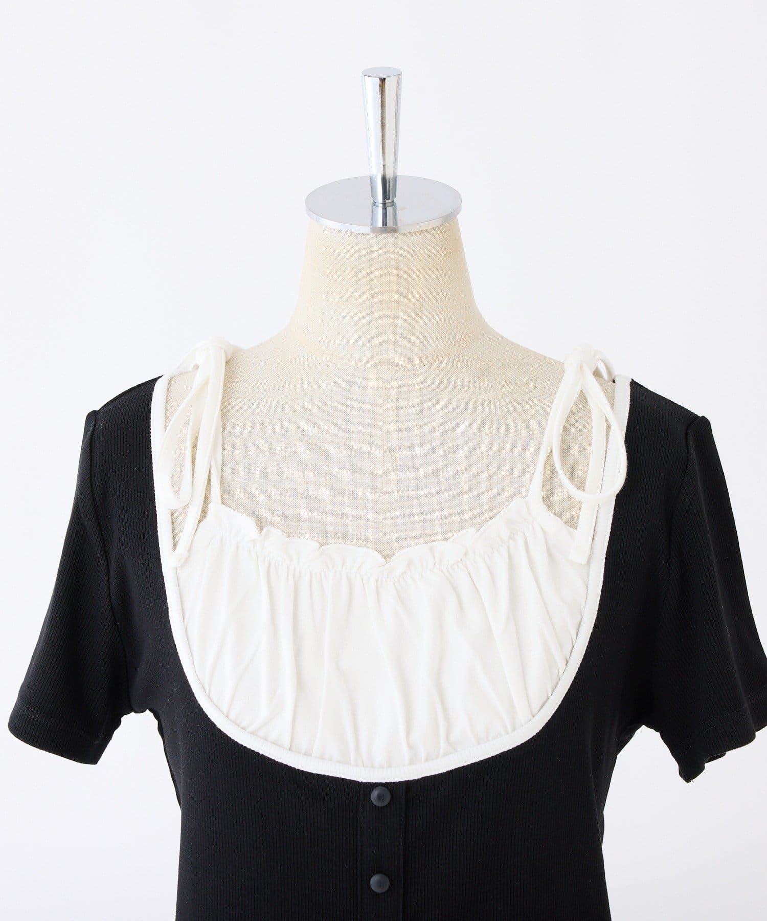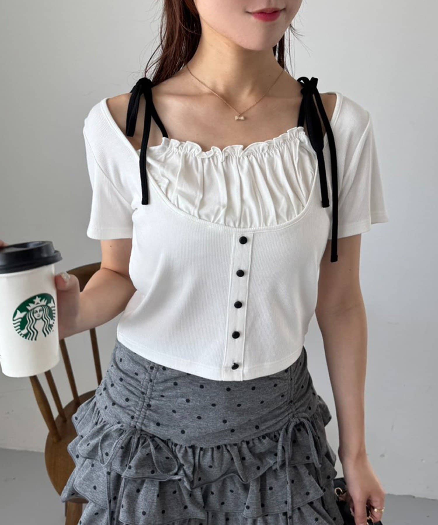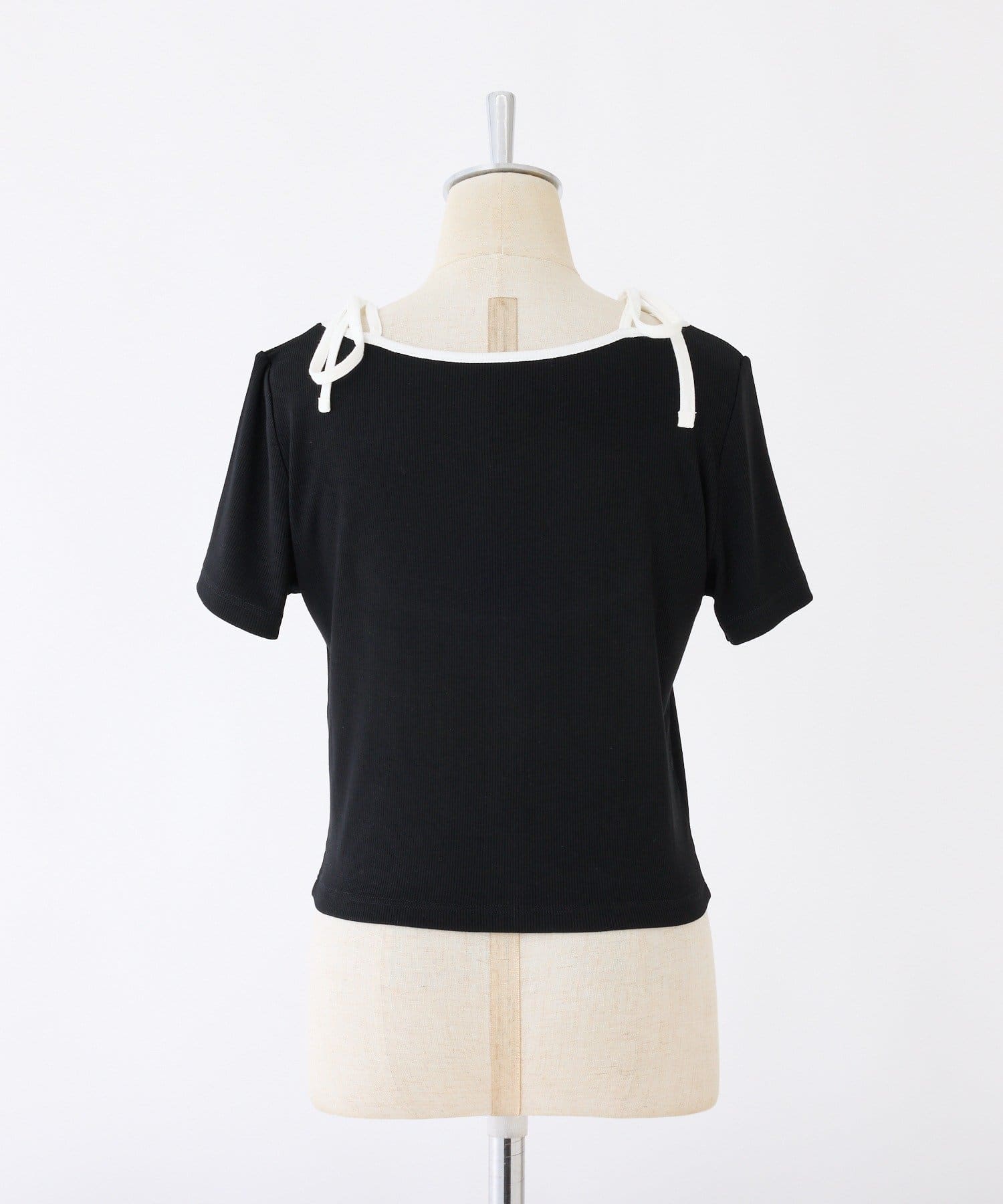 肩のリボンがシンプルなデザインの中に甘さをプラスしてくれます。
