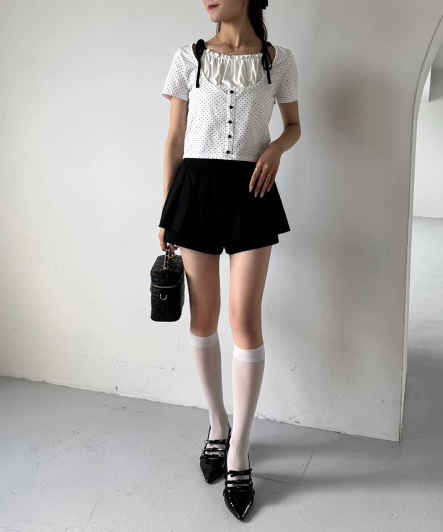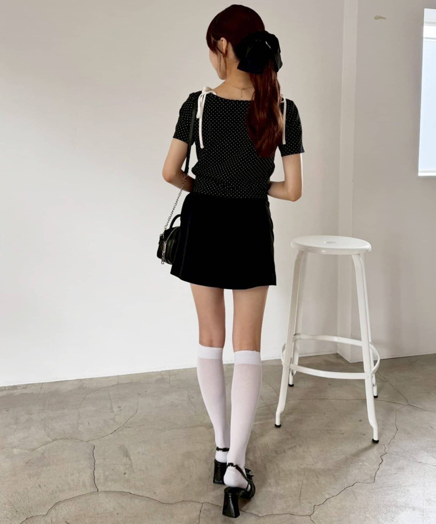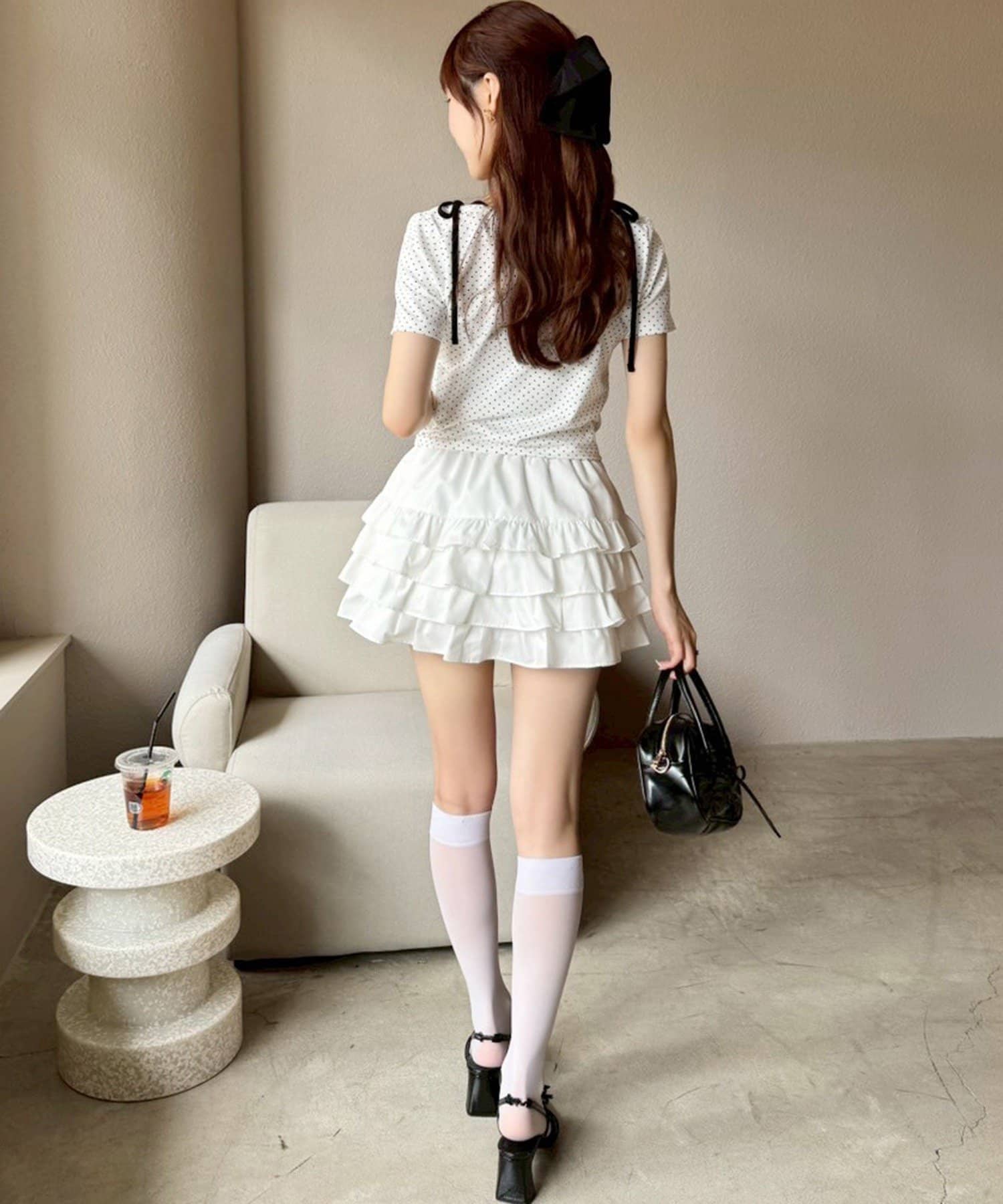ミニ丈のスカートと合わせてトレンドのバレエコアスタイルもオススメです。