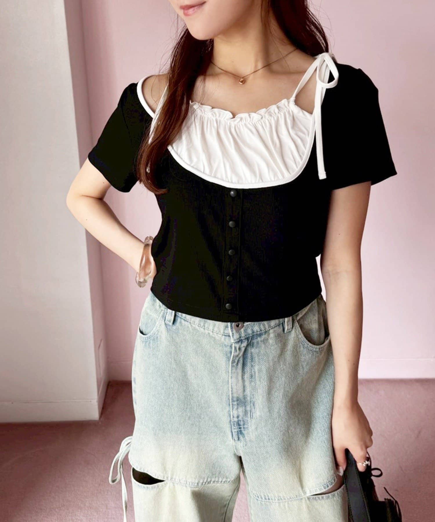 ハイウエストボトムに合わせてスタイルアップ効果抜群に◎